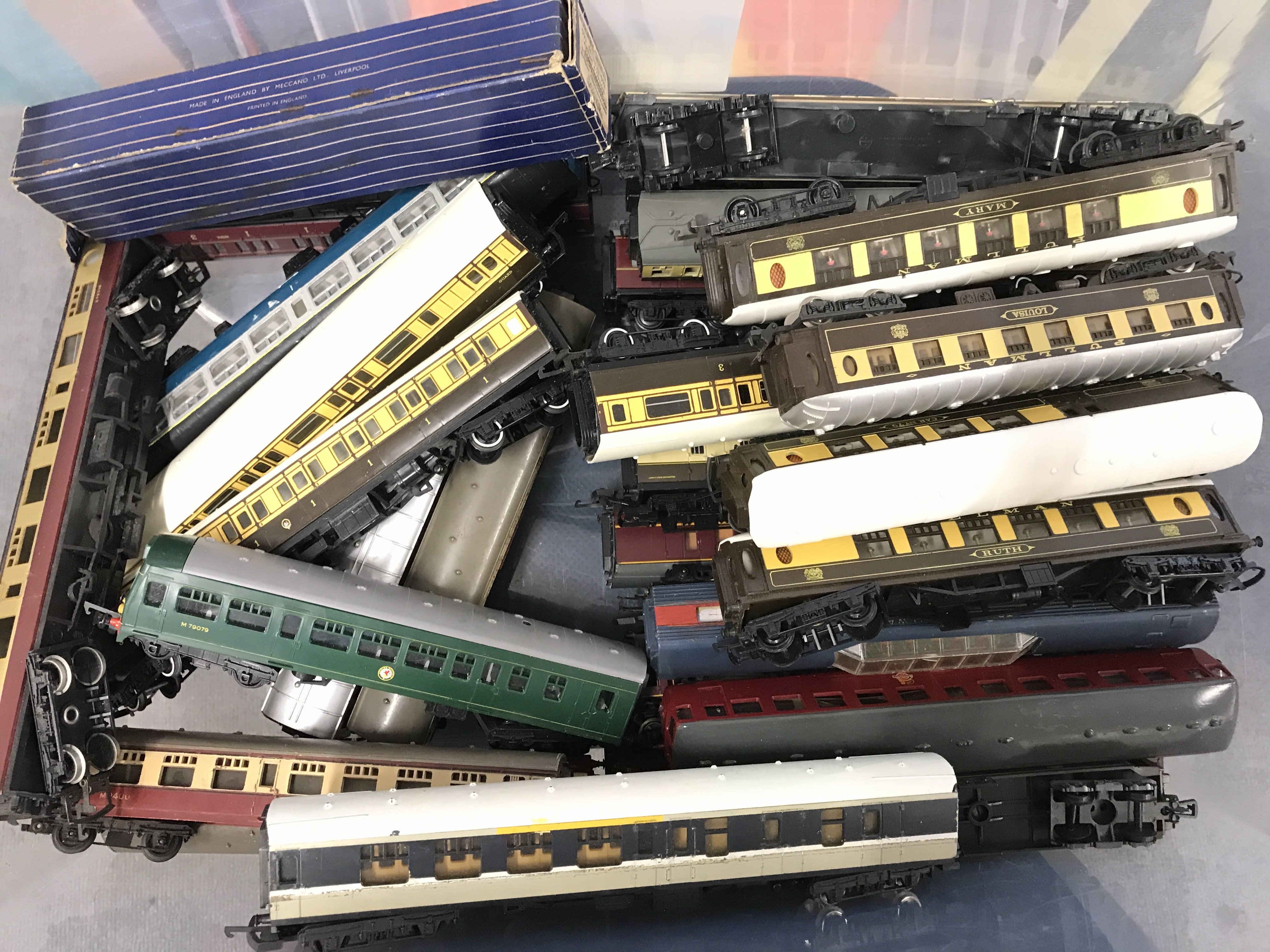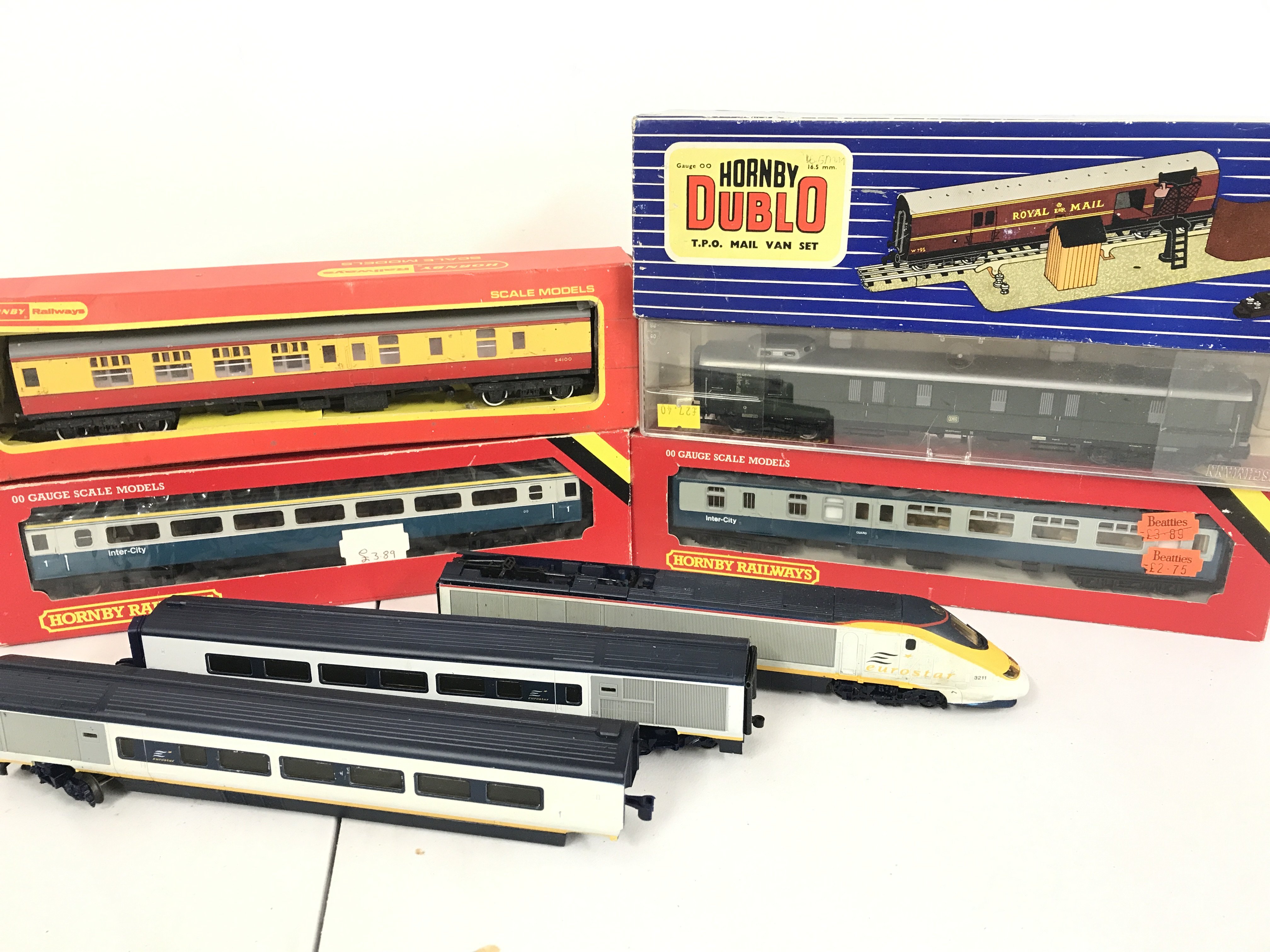 A Box Containing Boxed And Loose 00 Gauge Coaches And A Euro Star Locomotive. No Reserve.