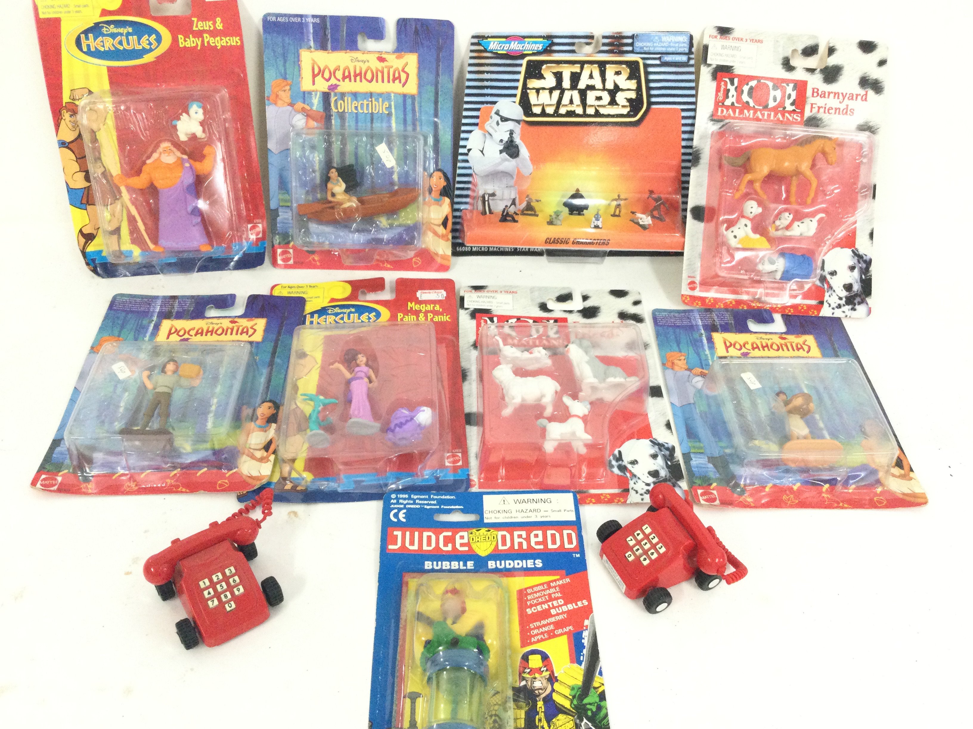 A Collection of Carded Figures including Disney And Star Wars Micro Machines.