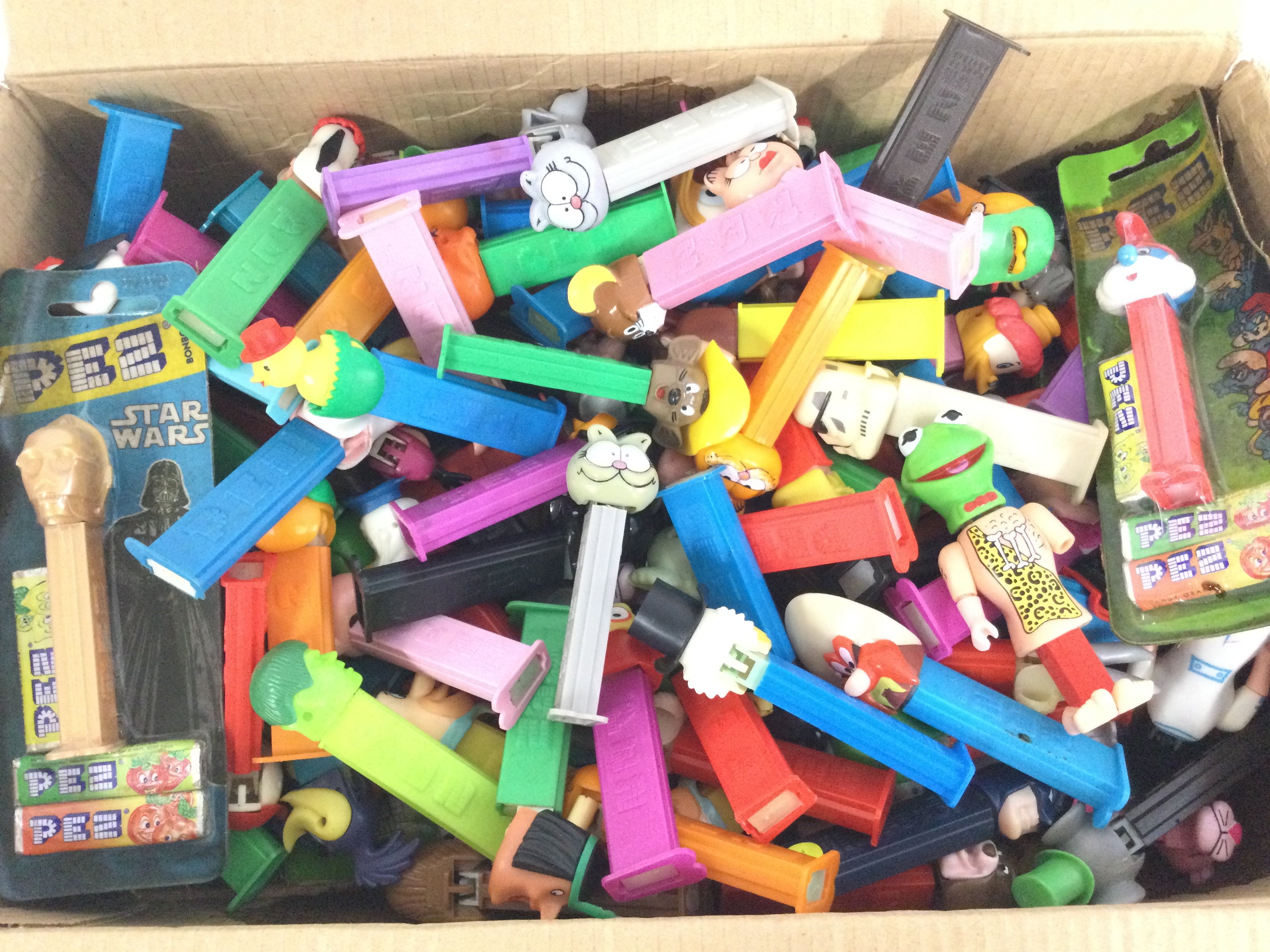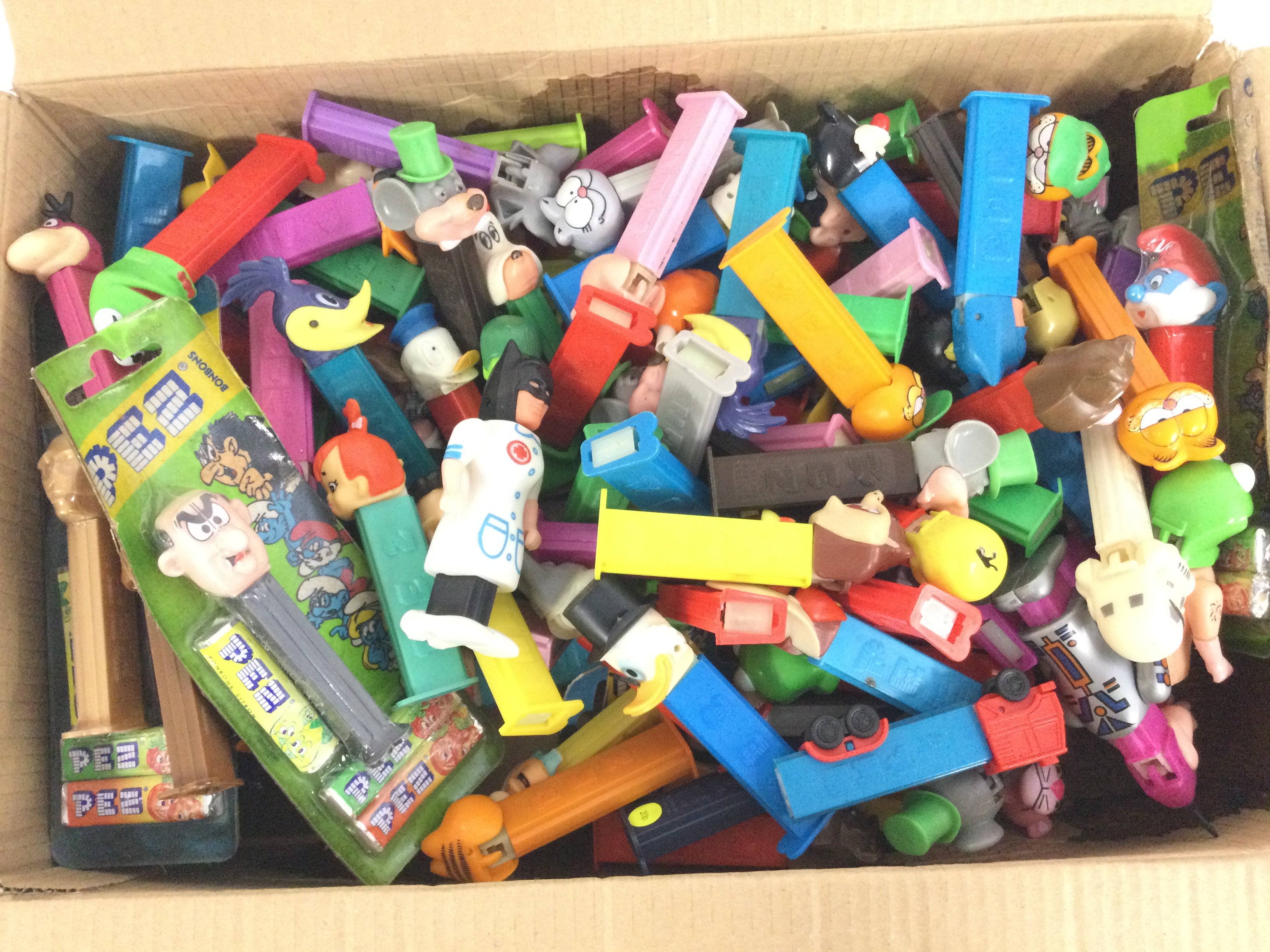 A Box Containing a Collection of Pez Dispensers.