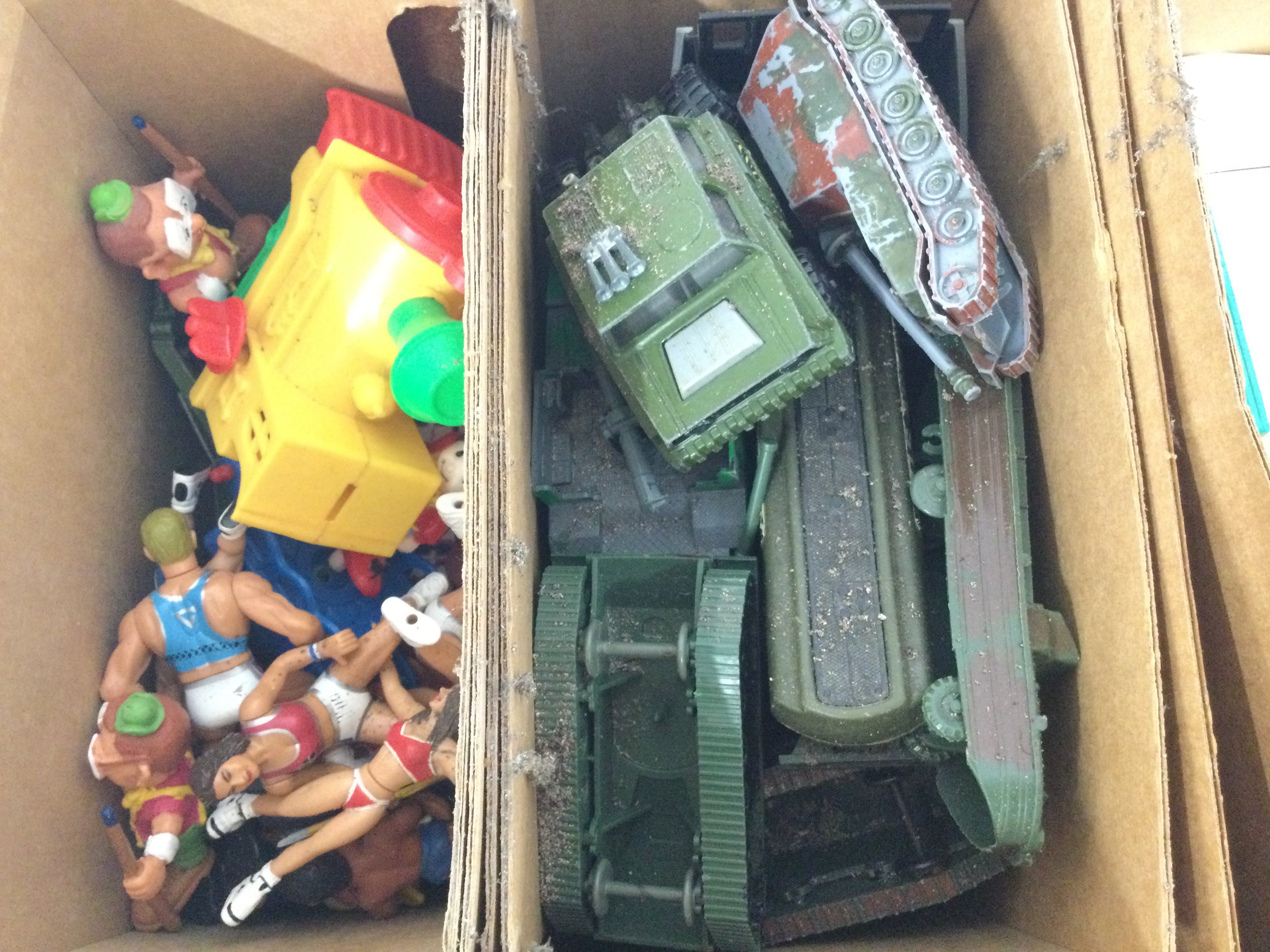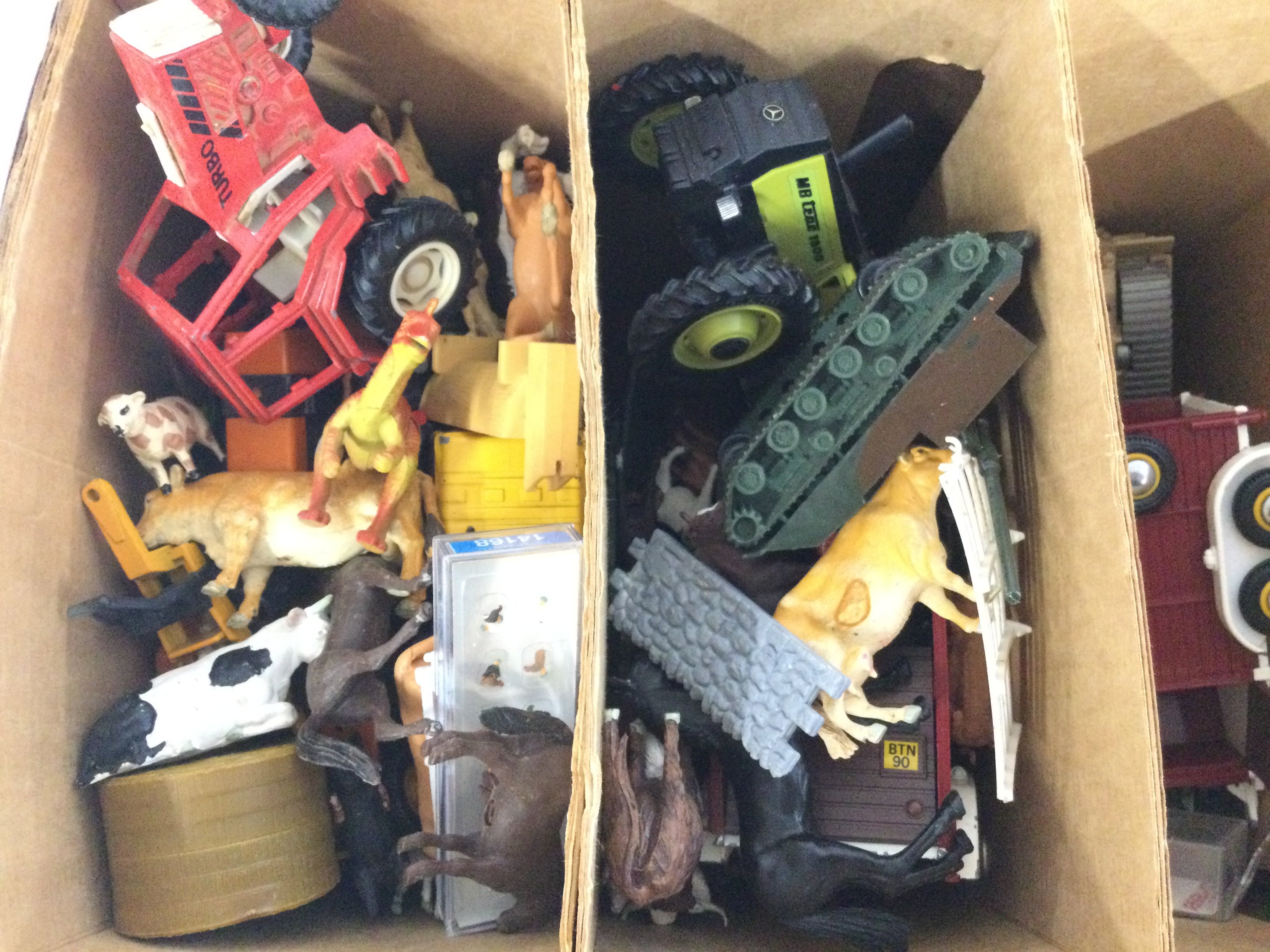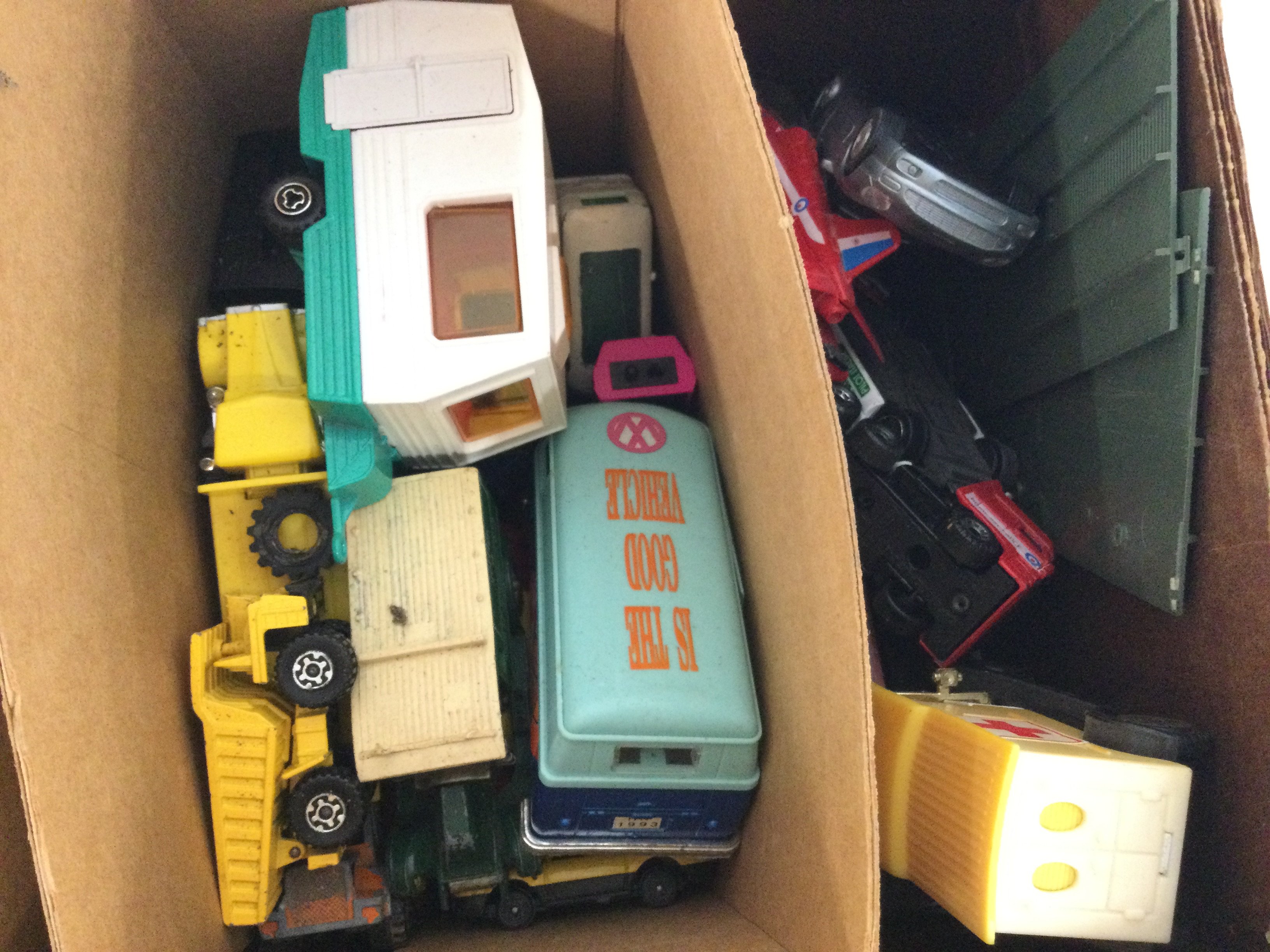 2 X Boxes Containing Playworn Diecast. Plastic Figures Etc.(2).