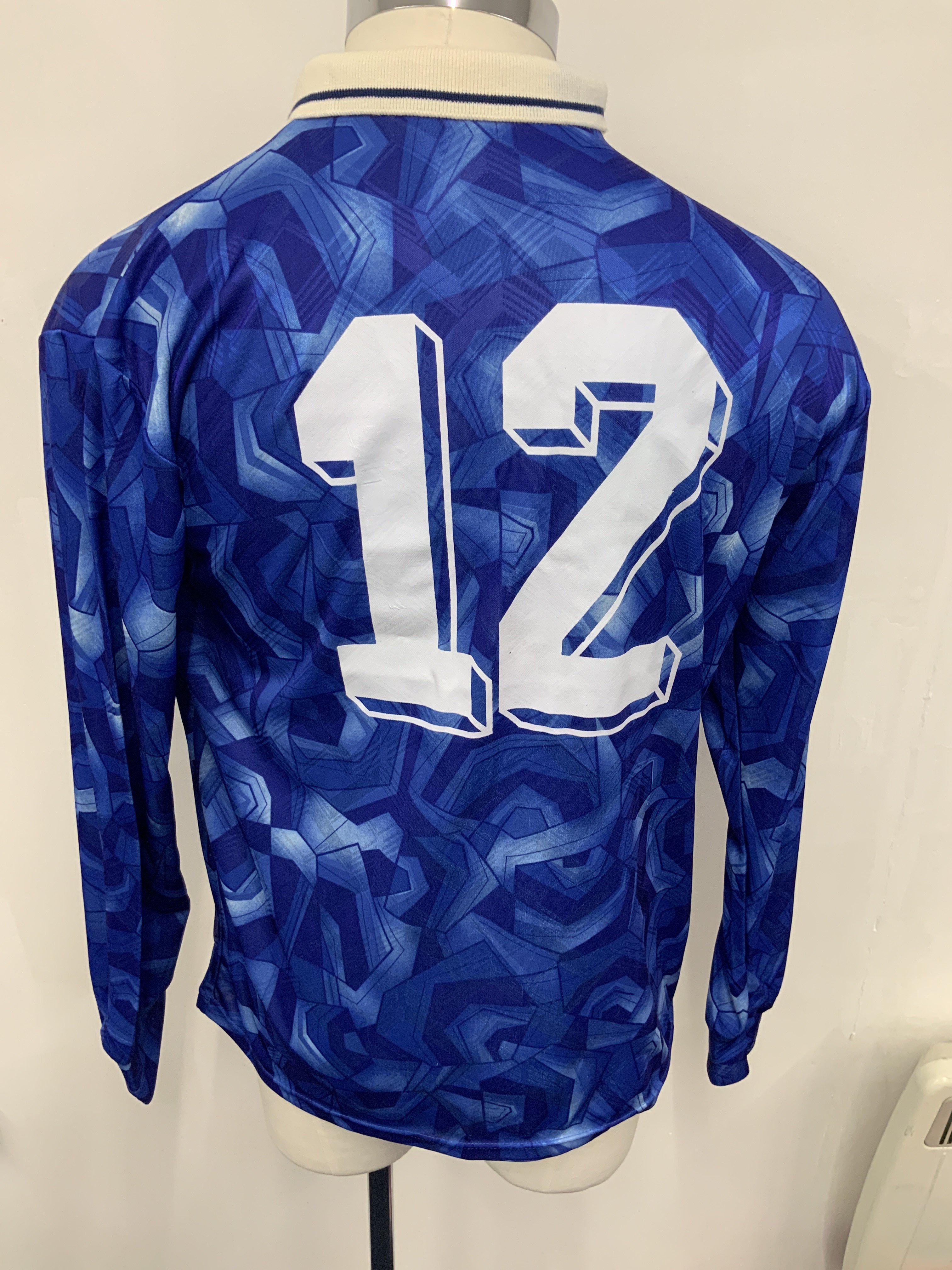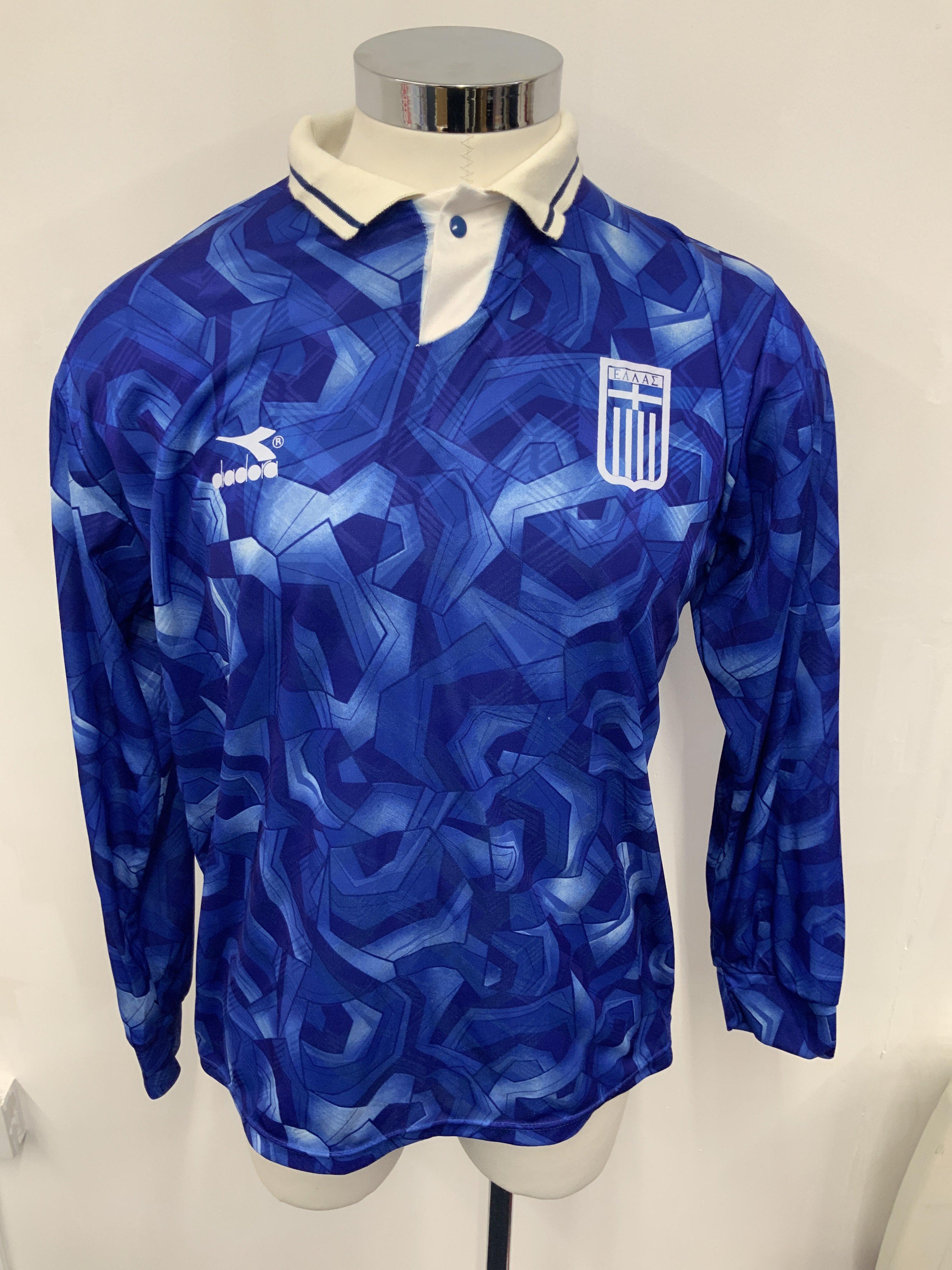 Greece 1994 Match Worn Football Shirt: Number 12 long sleeve blue Diadora shirt with number 12 to rear. Worn by Olympiakos player Koulis Karataidis who swapped with Paul Merson.