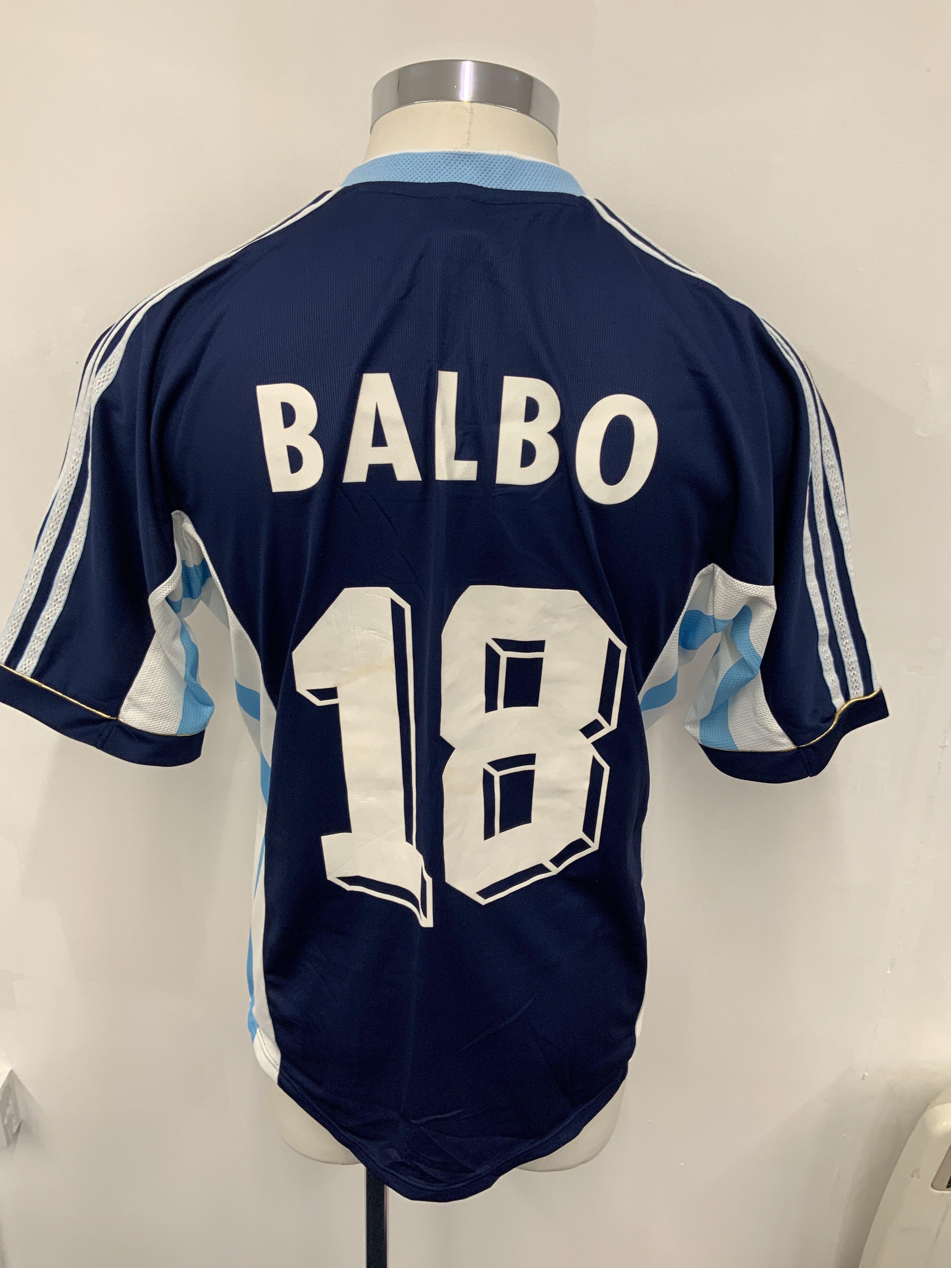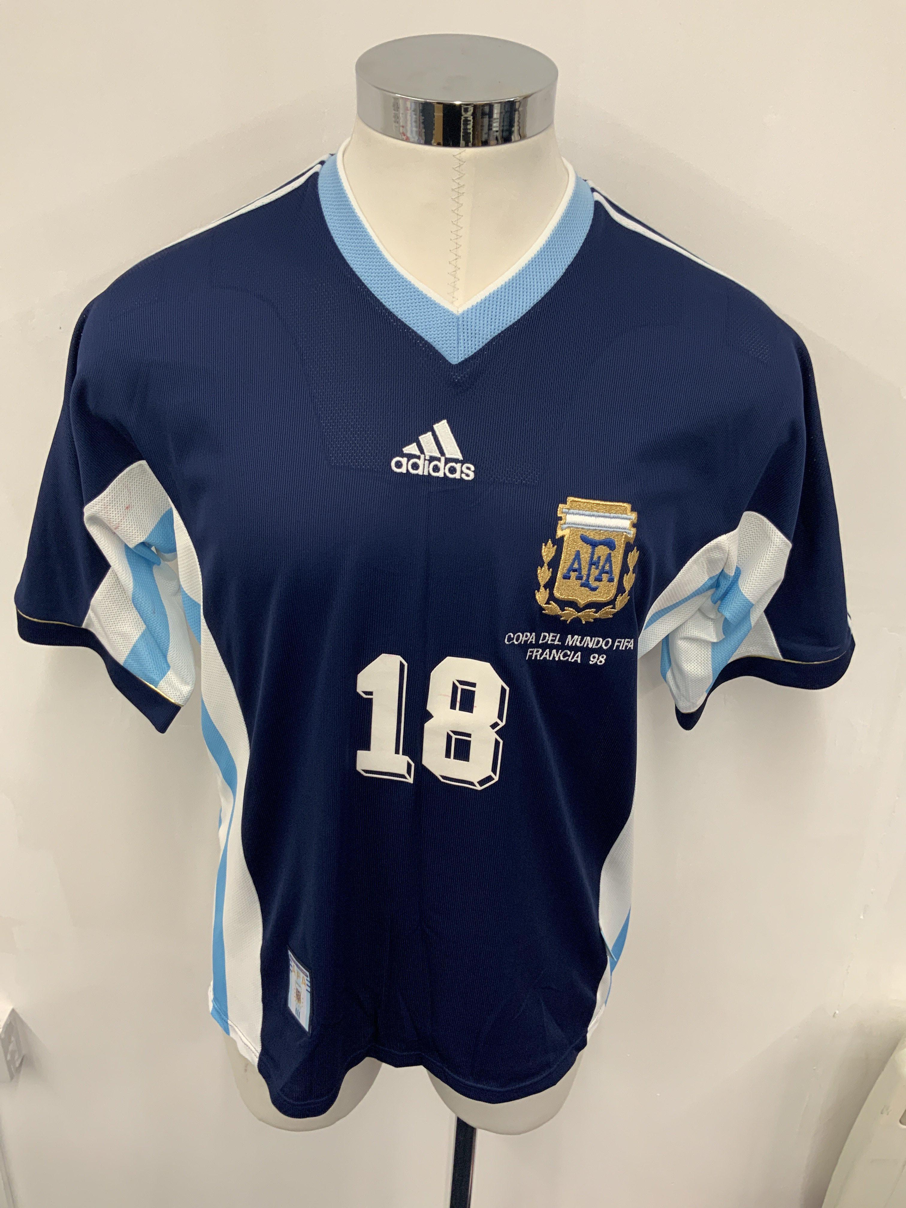 Argentina 1998 Match Issued World Cup Football Shirt: Blue short sleeve Adidas shirt with COPA Del Mundo FIFA Francis 98 embroidered under AFA badge. Number 18 Balbo to rear who was an unused sub in famous match v England. Swapped with Paul Merson.