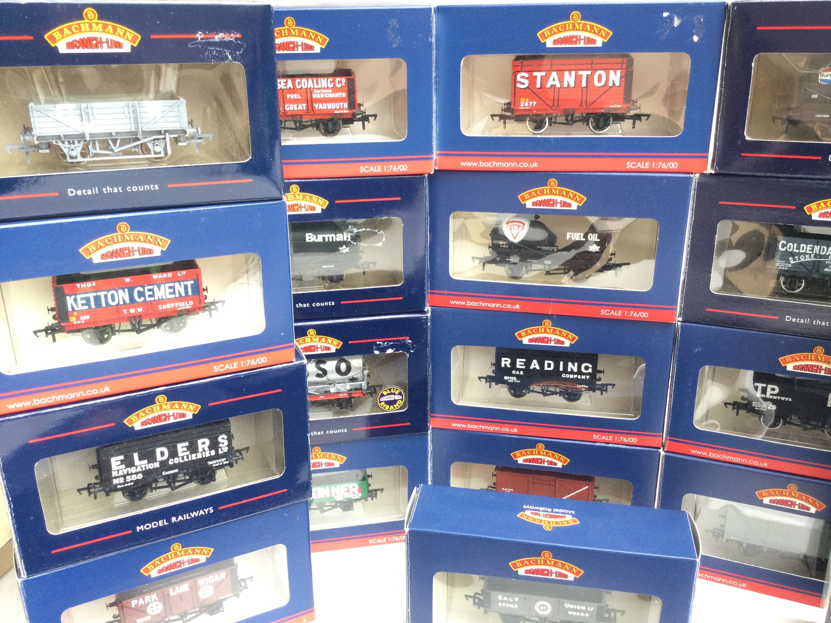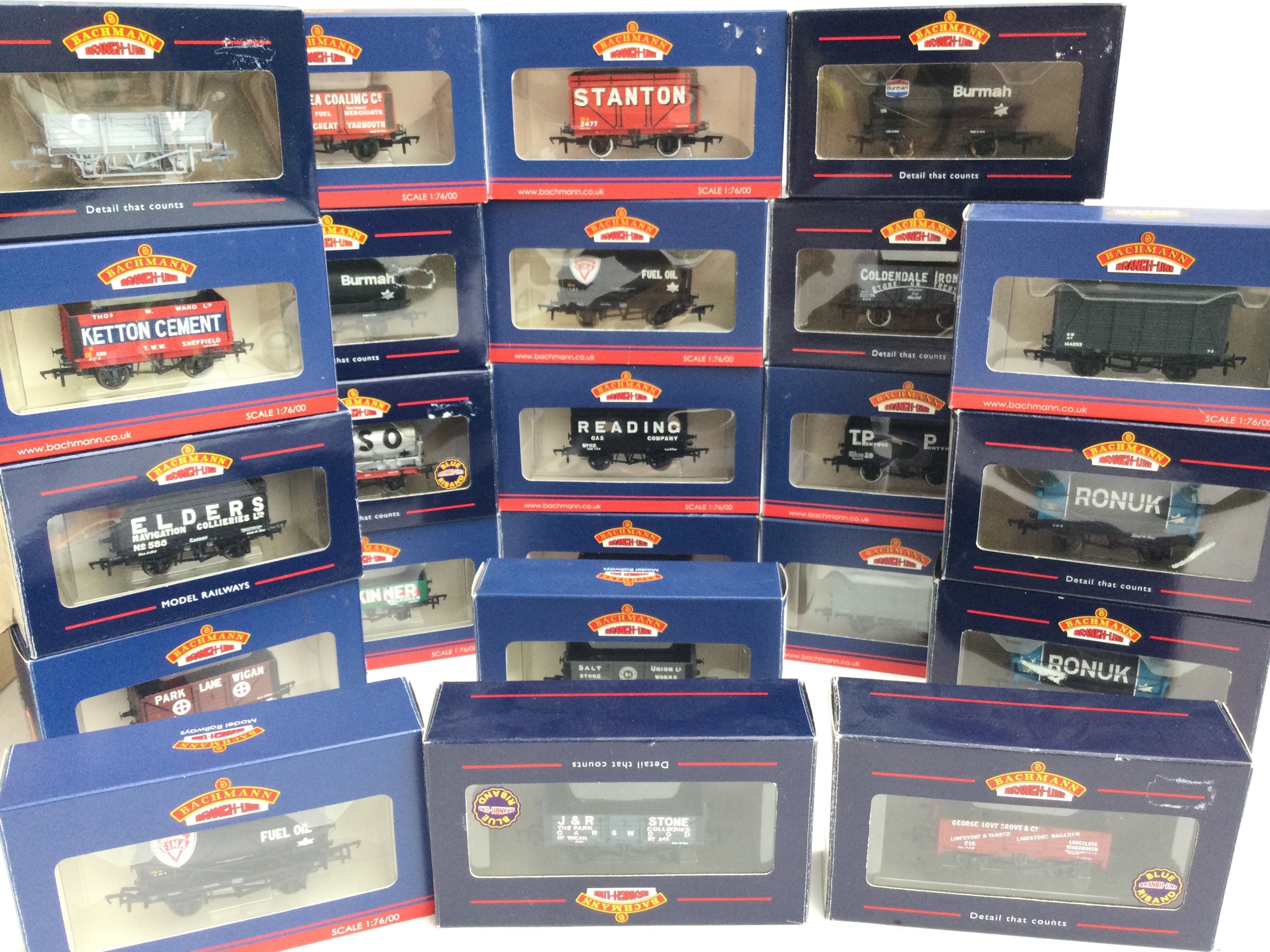 A Case Containing Boxed 00 Gauge Bachmann Wagons. Track and transformers.