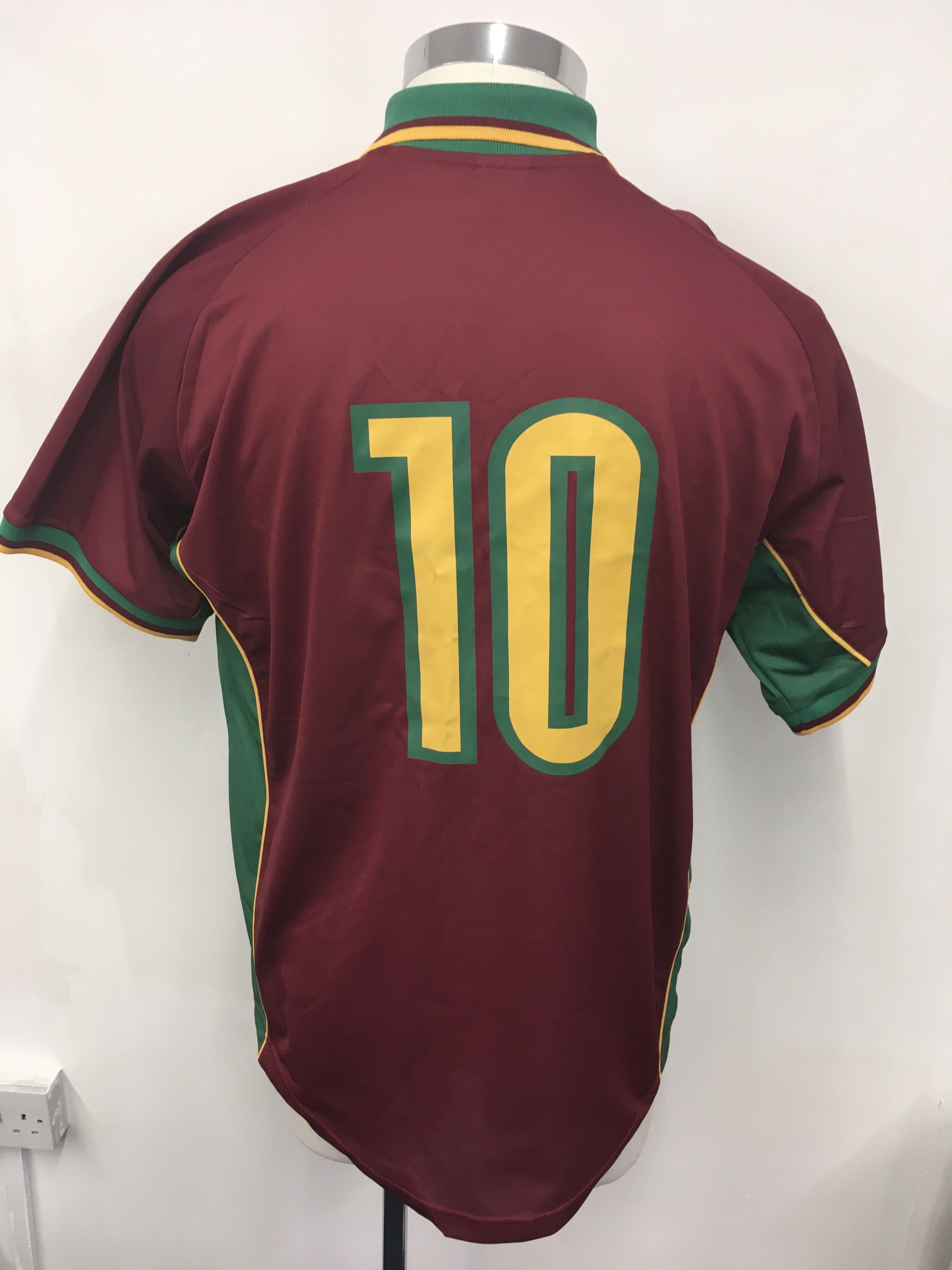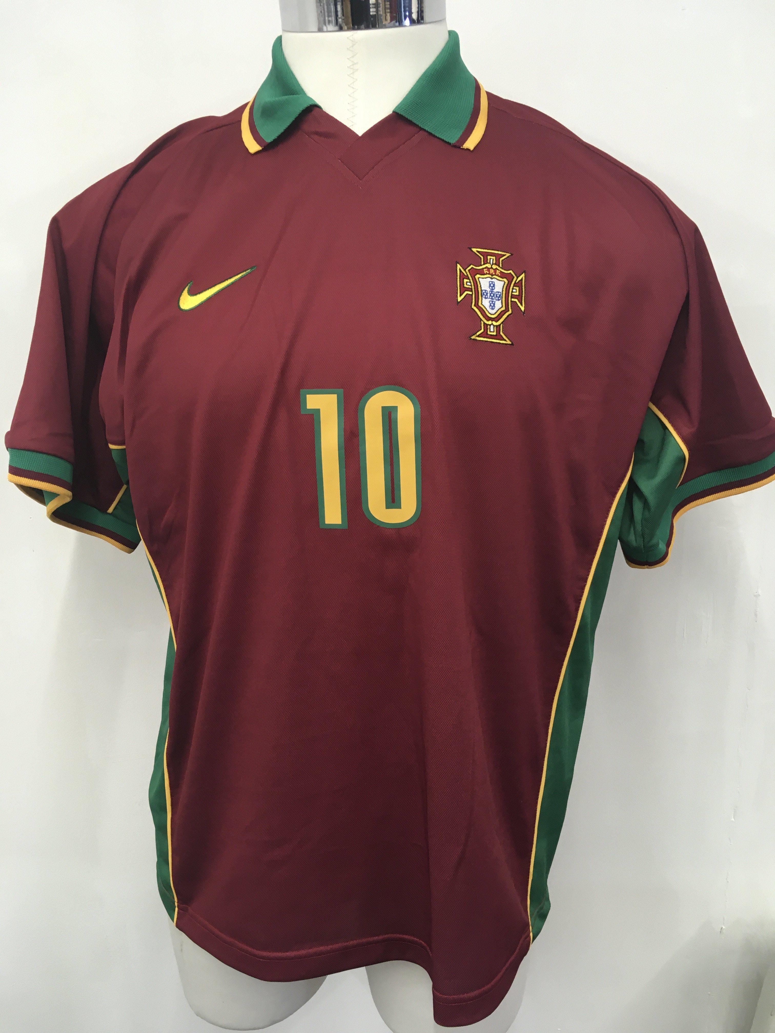 Portugal 1998 Match Worn Football Shirt: Burgundy short sleeve Nike shirt with number 10 to front and back. Worn by Porto player Paulinho Santos and swapped with Englands Paul Merson on 22 4 1998. Pauls cap for match is lot 1000.