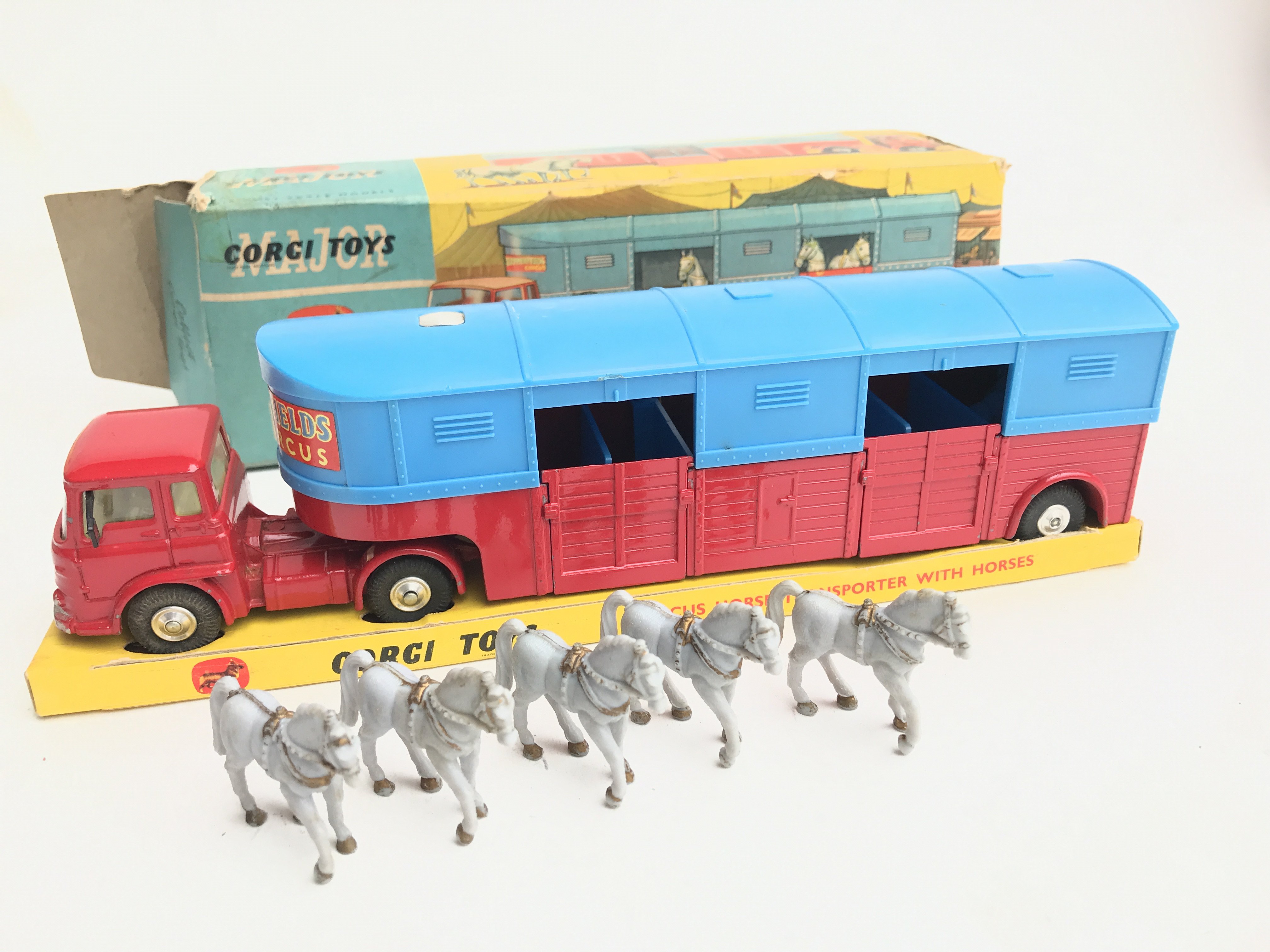 A Boxed Corgi Chipperfeilds Circus Horse Transporter With Horses. #1130. Box Is Worn.