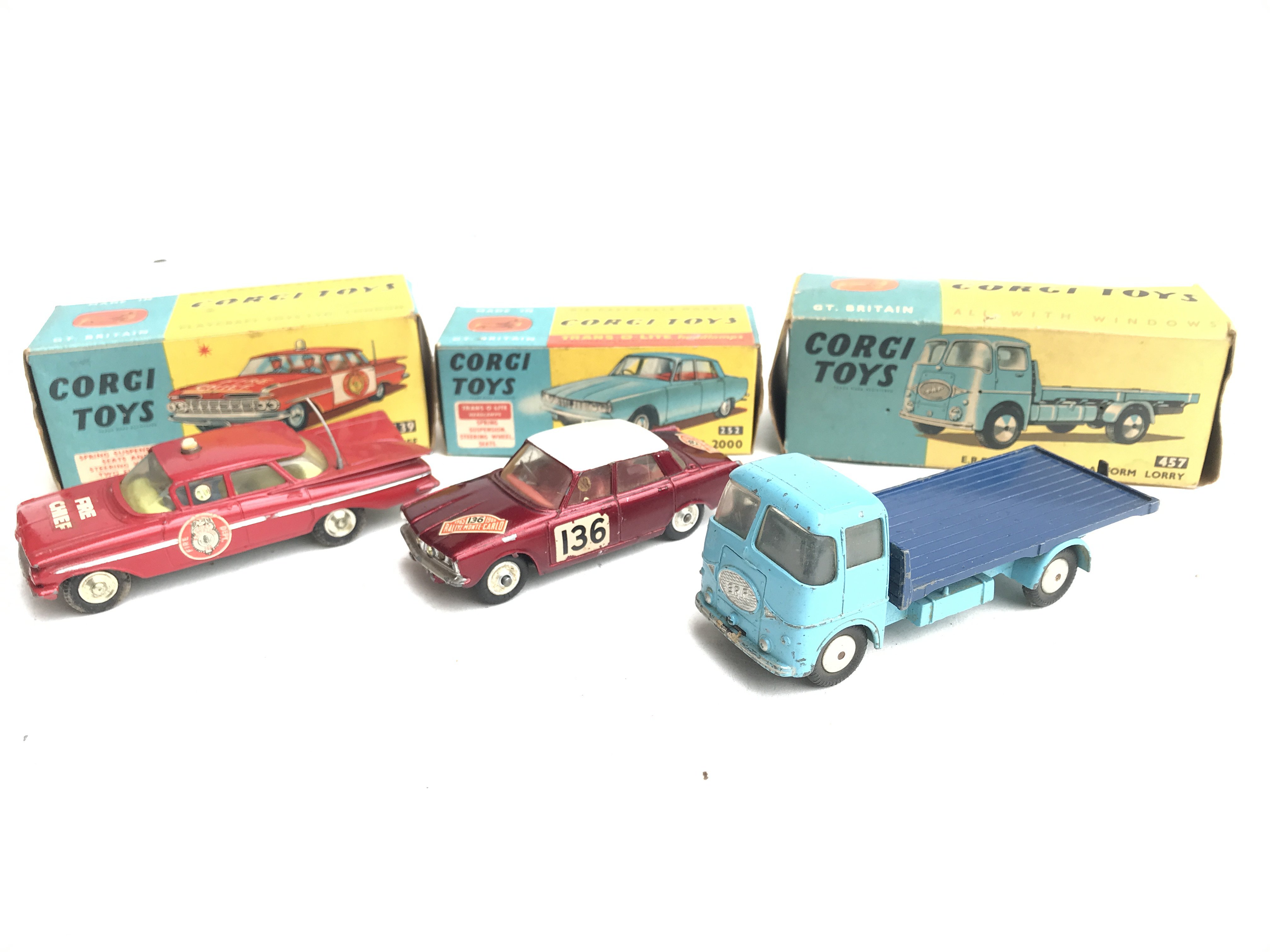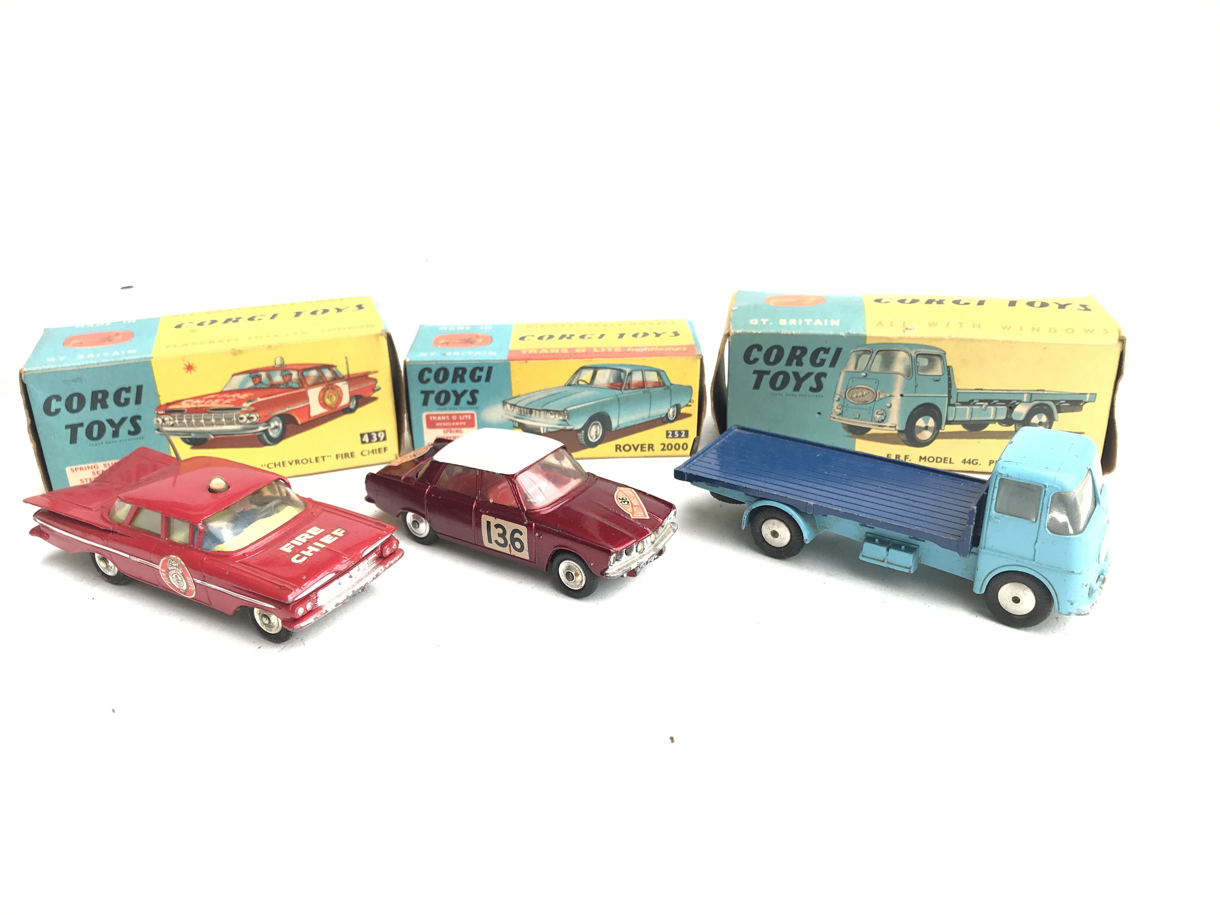 3 X Boxed Corgi Vehicles. A Chevrolet Fire Chief #439. A Rover 2000 #252 and a E.R.F. Model 44G Platform Lorry #457. No Reserve.