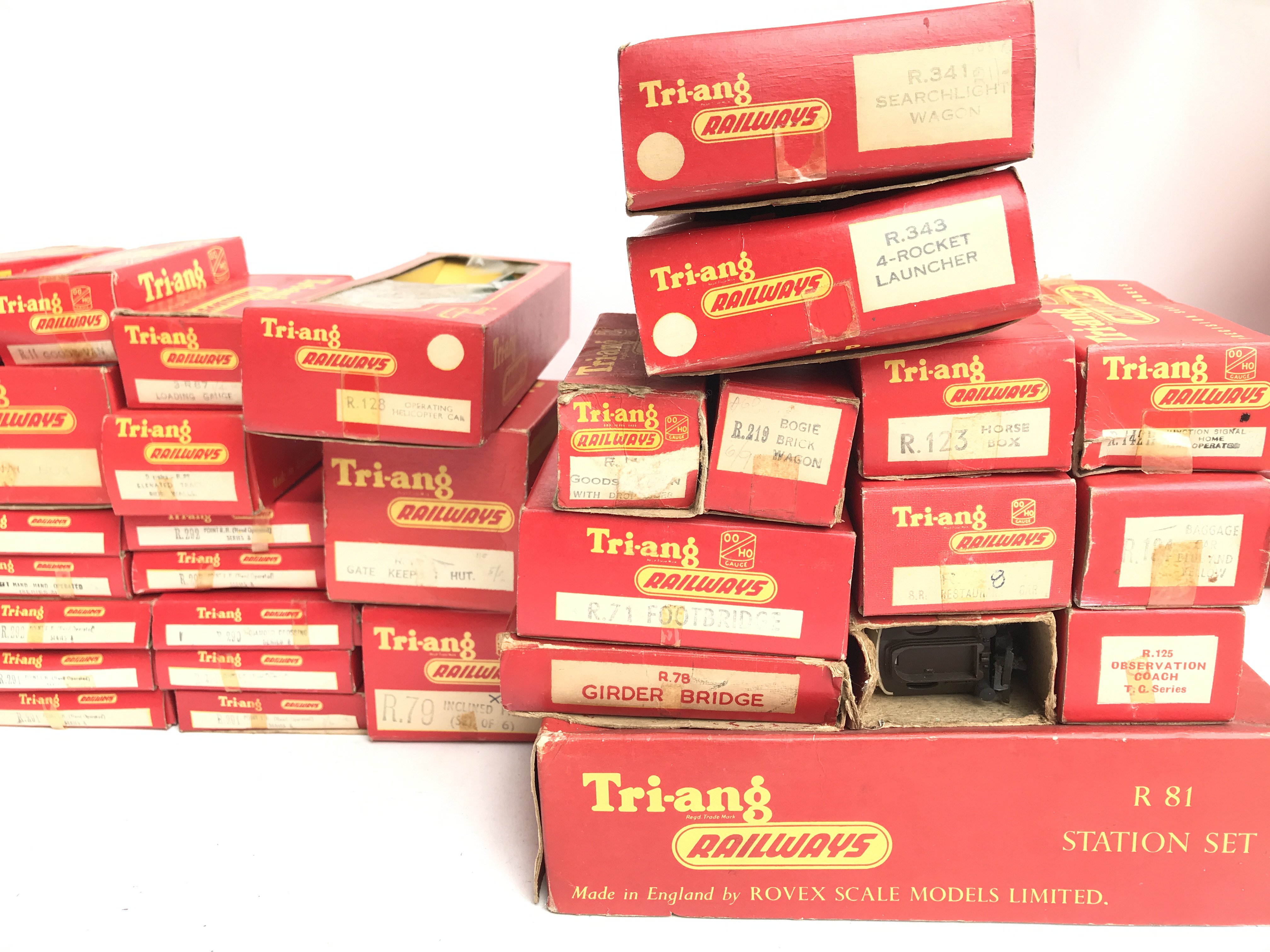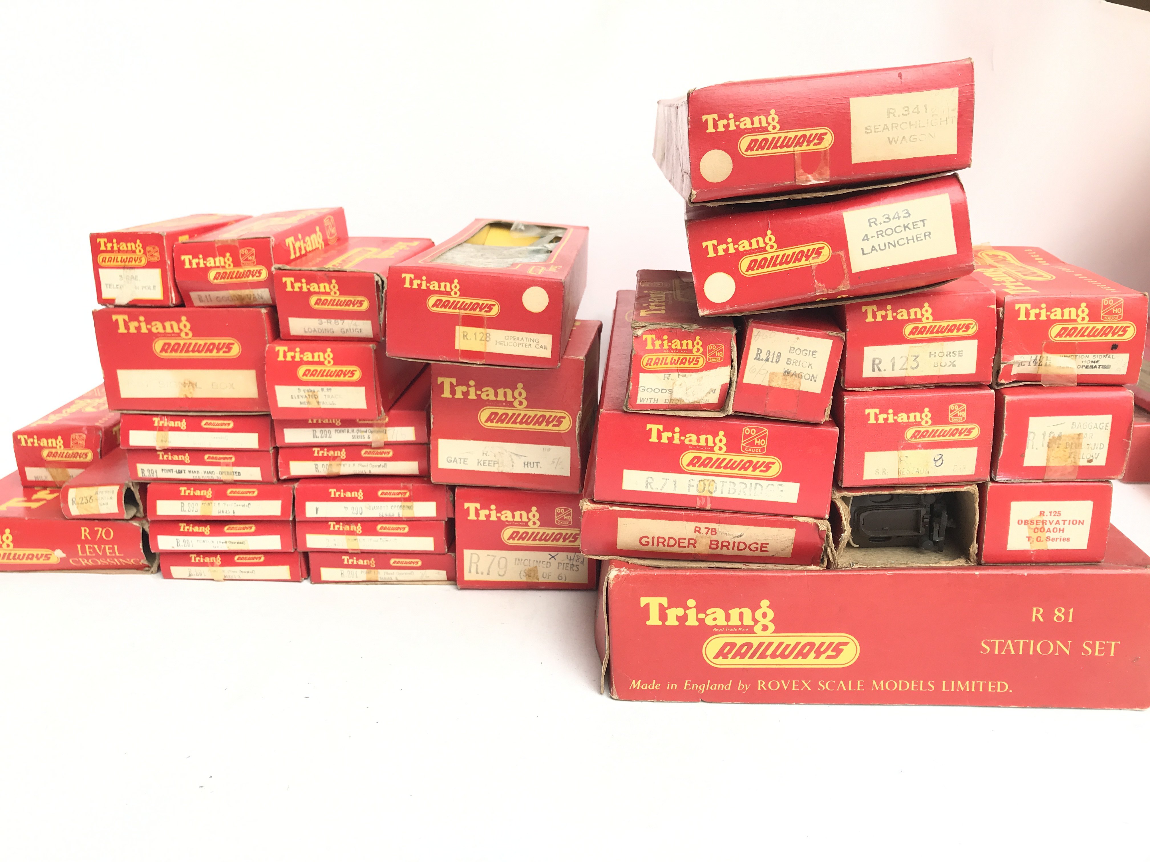 A Collection of Boxed Tri-Ang 00 Gauge. Including a Station Set. Wagons and Coaches.