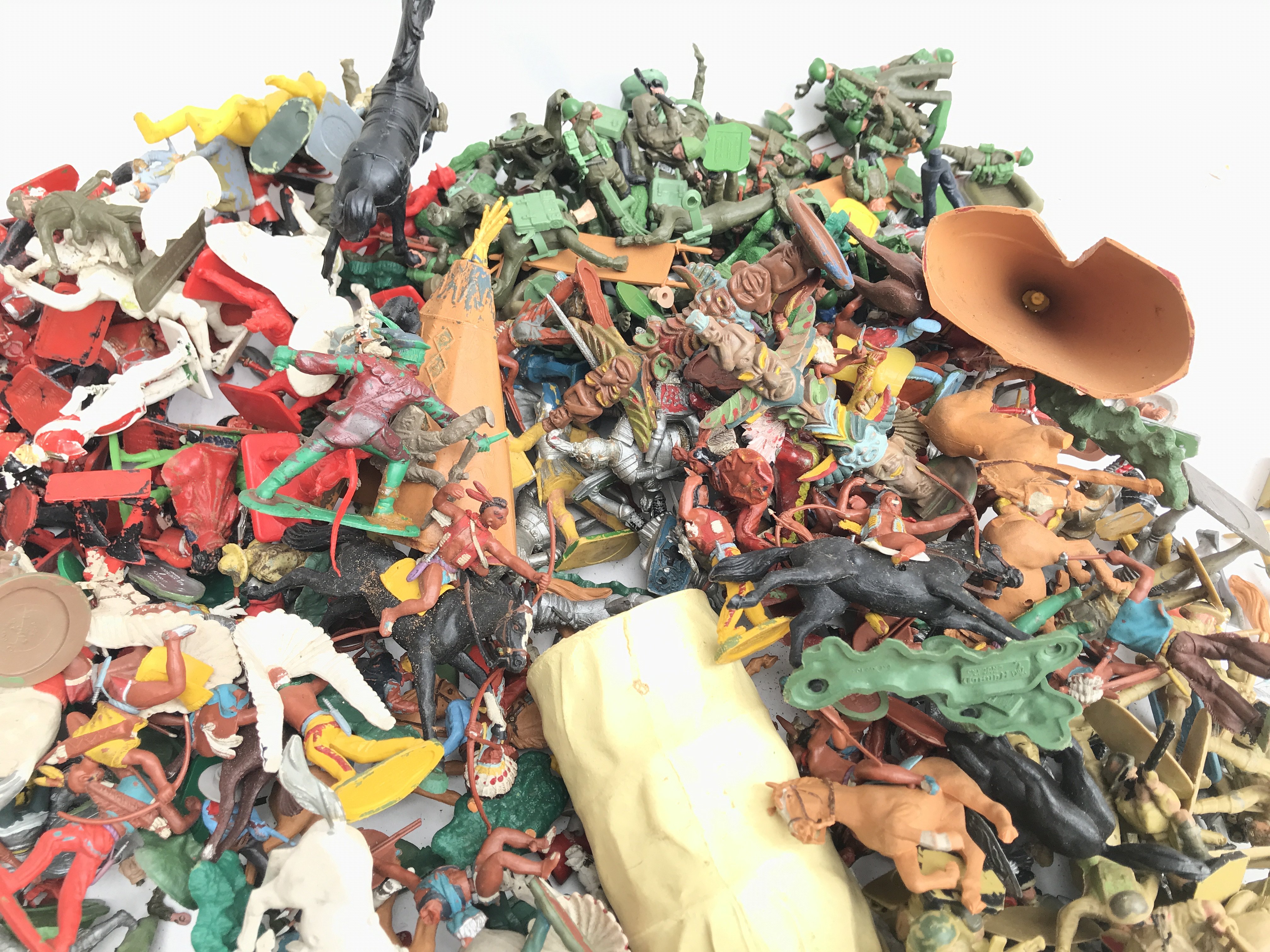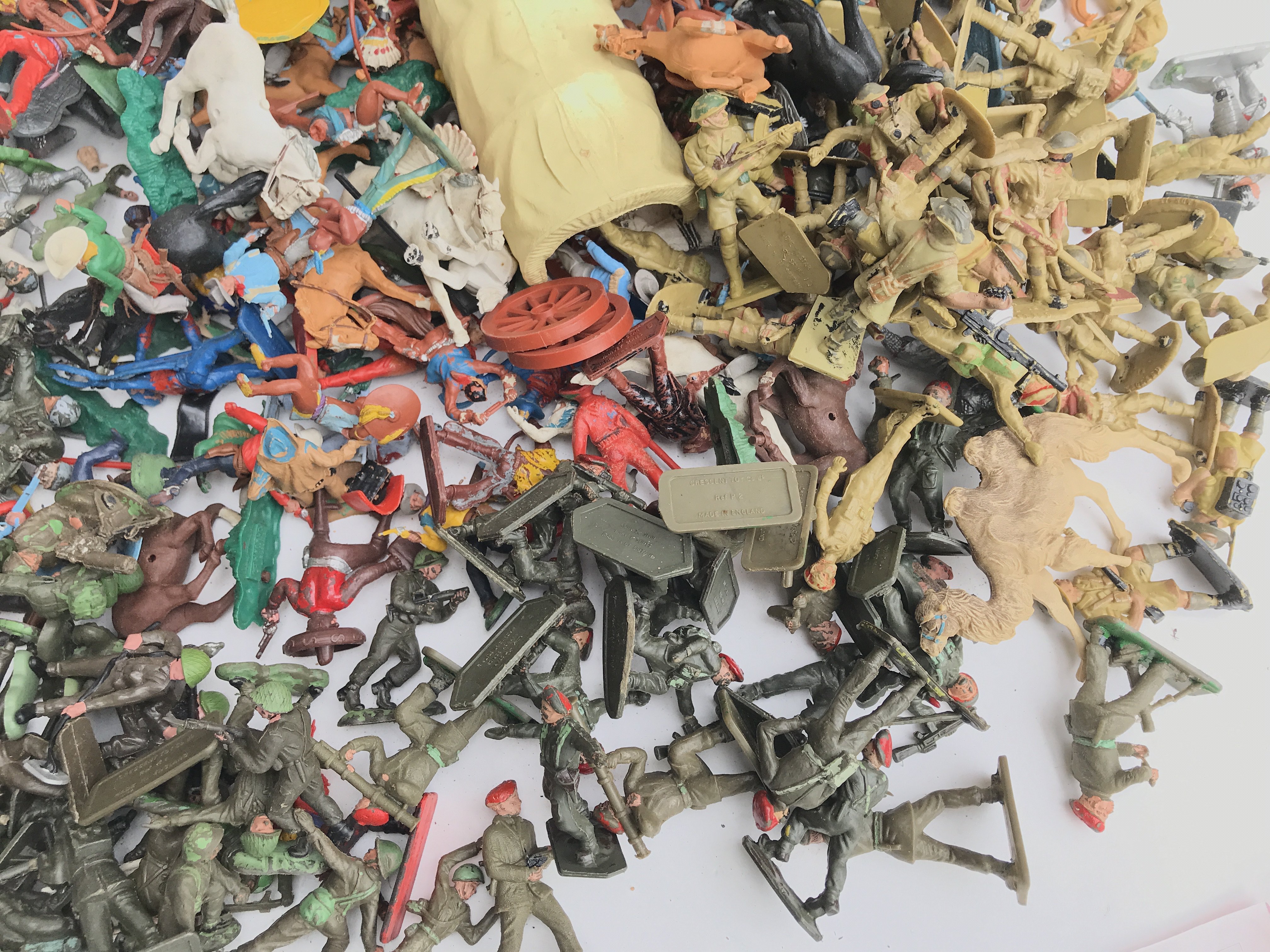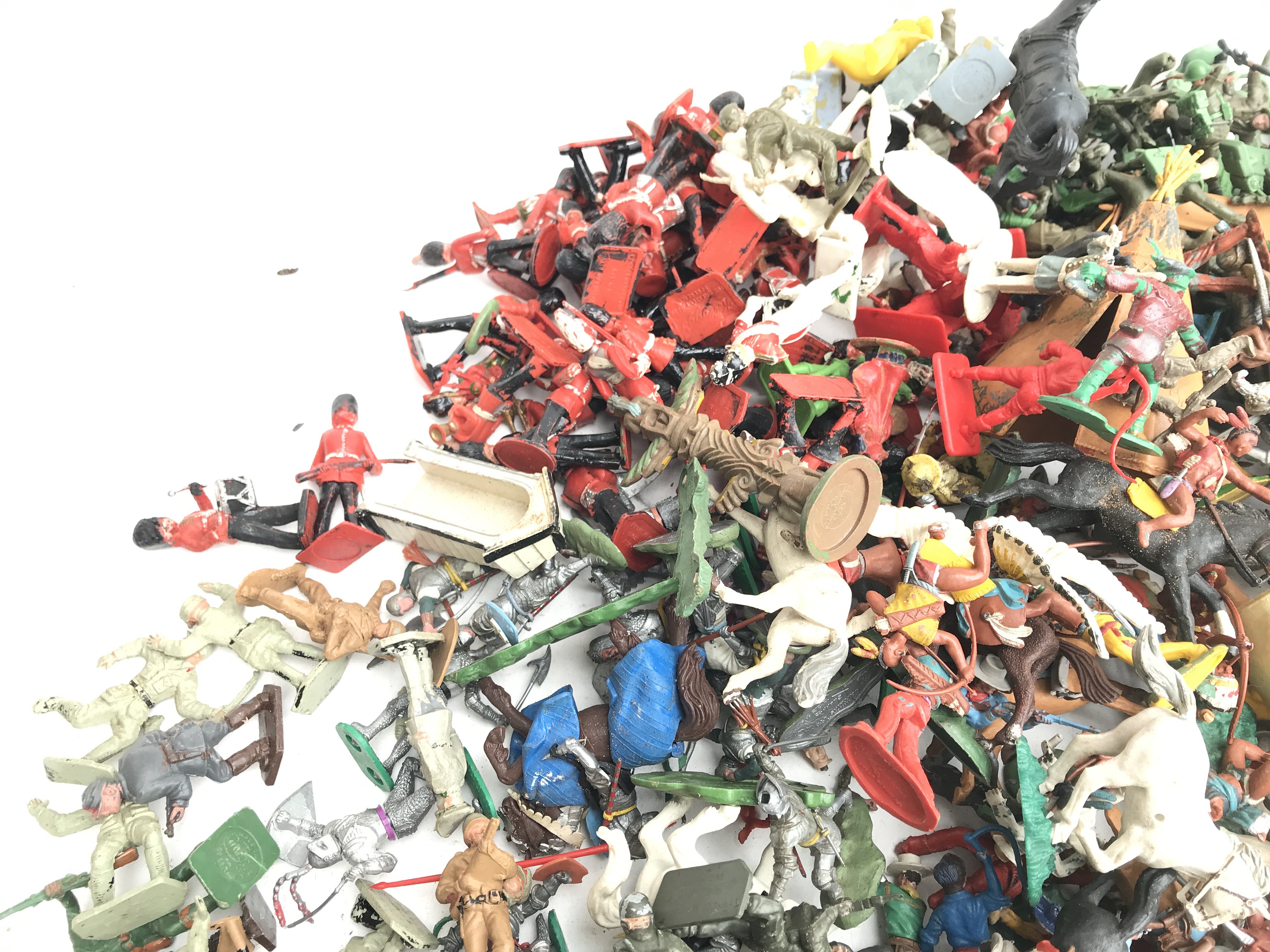 A Box Containing Various Plastic Toy Soldiers. Including Crescent Toys.Herald. Britains etc. No Reserve.