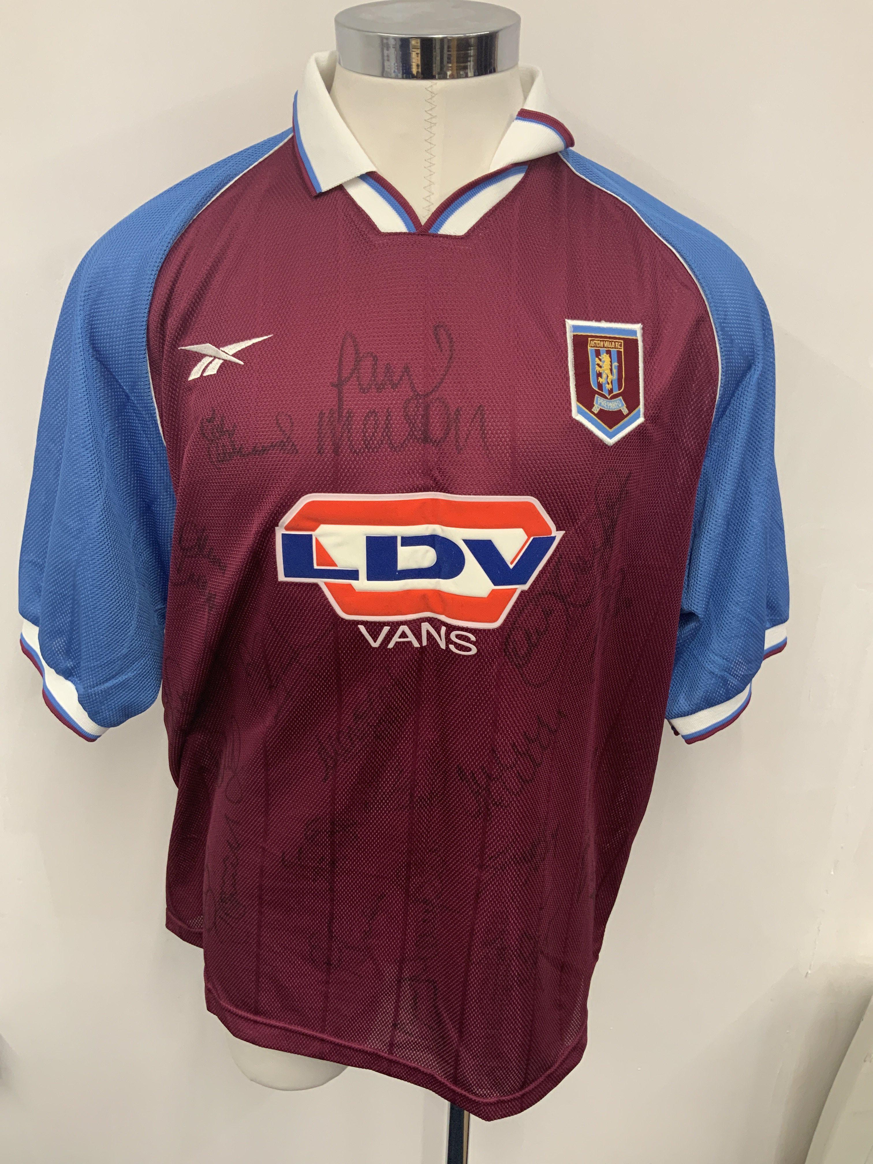 Aston Villa 98/99 Squad Signed Football Shirt: Home short sleeve shirt with LDV sponsorship. Size 50/52 signed by lots of Villa players. Obtained by Paul Merson in his first season there.