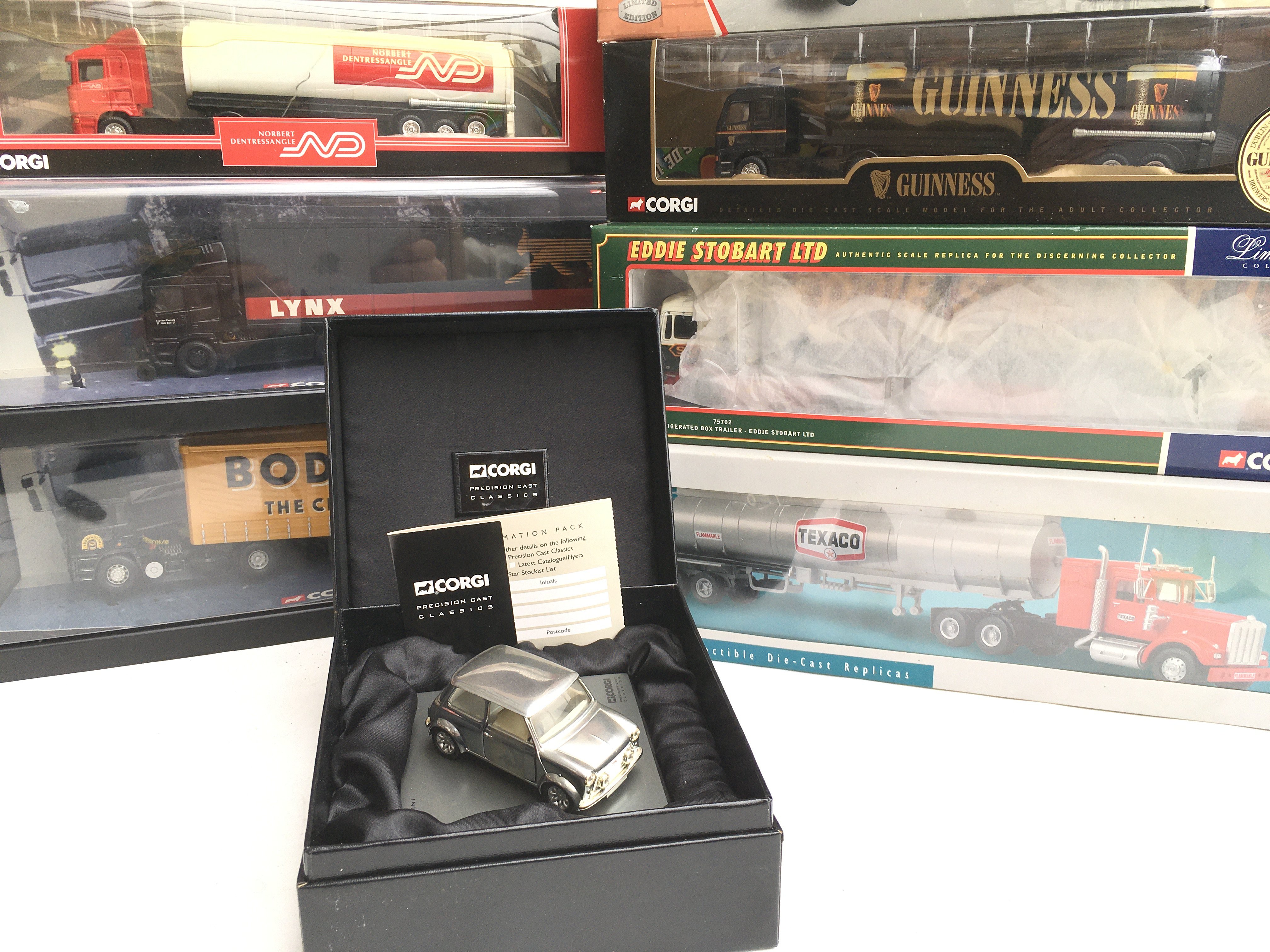 A Collection of Corgi Modern Trucks and a Precision Cast Mini in Display Box. No Reserve.