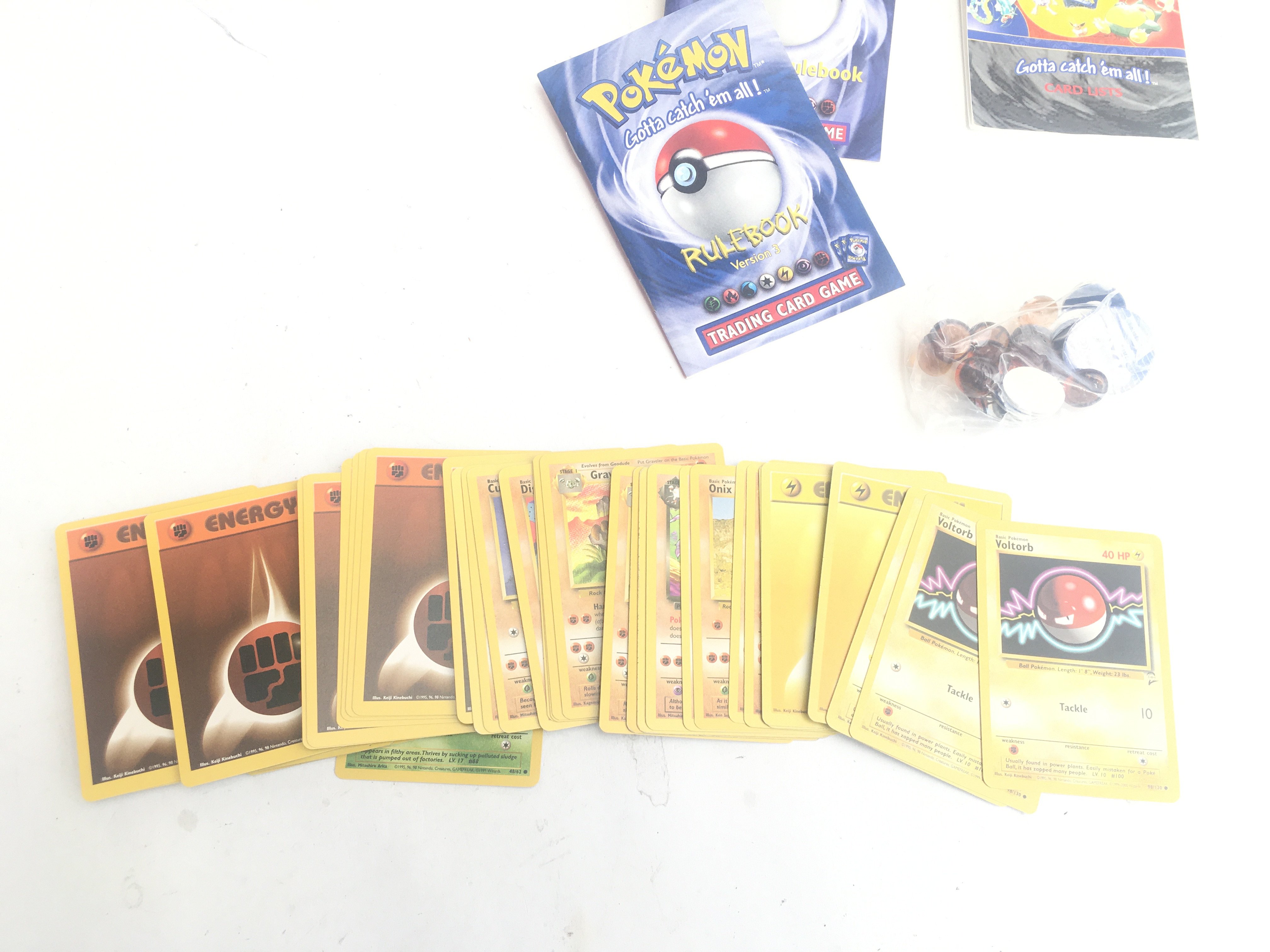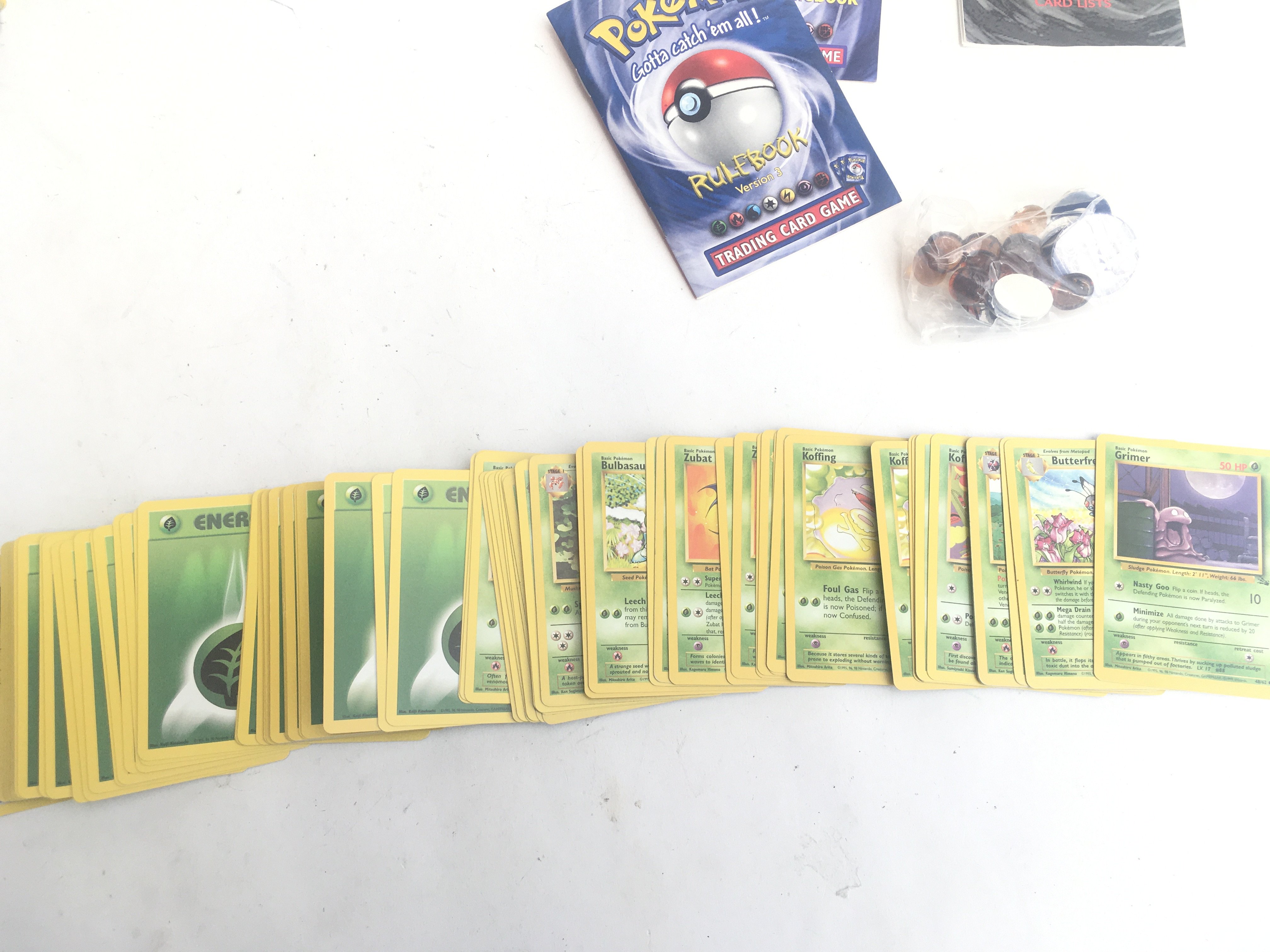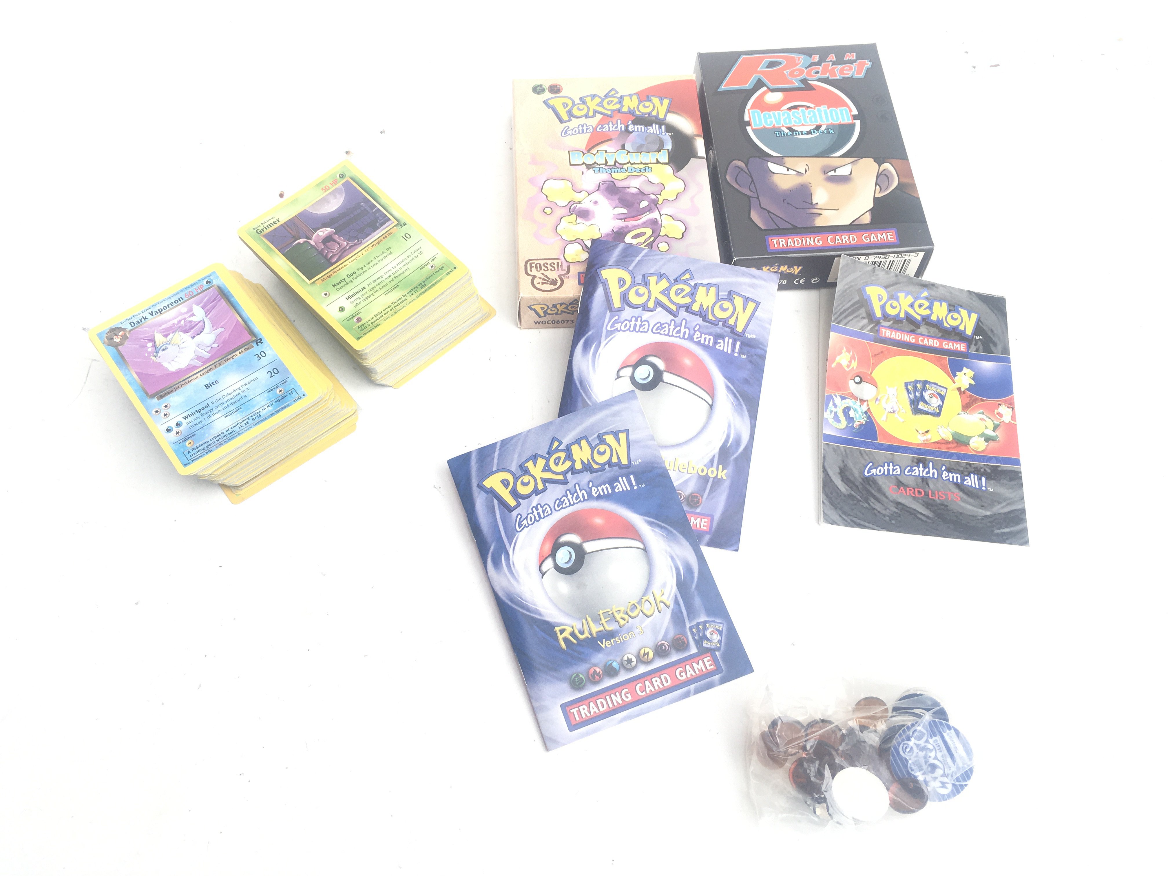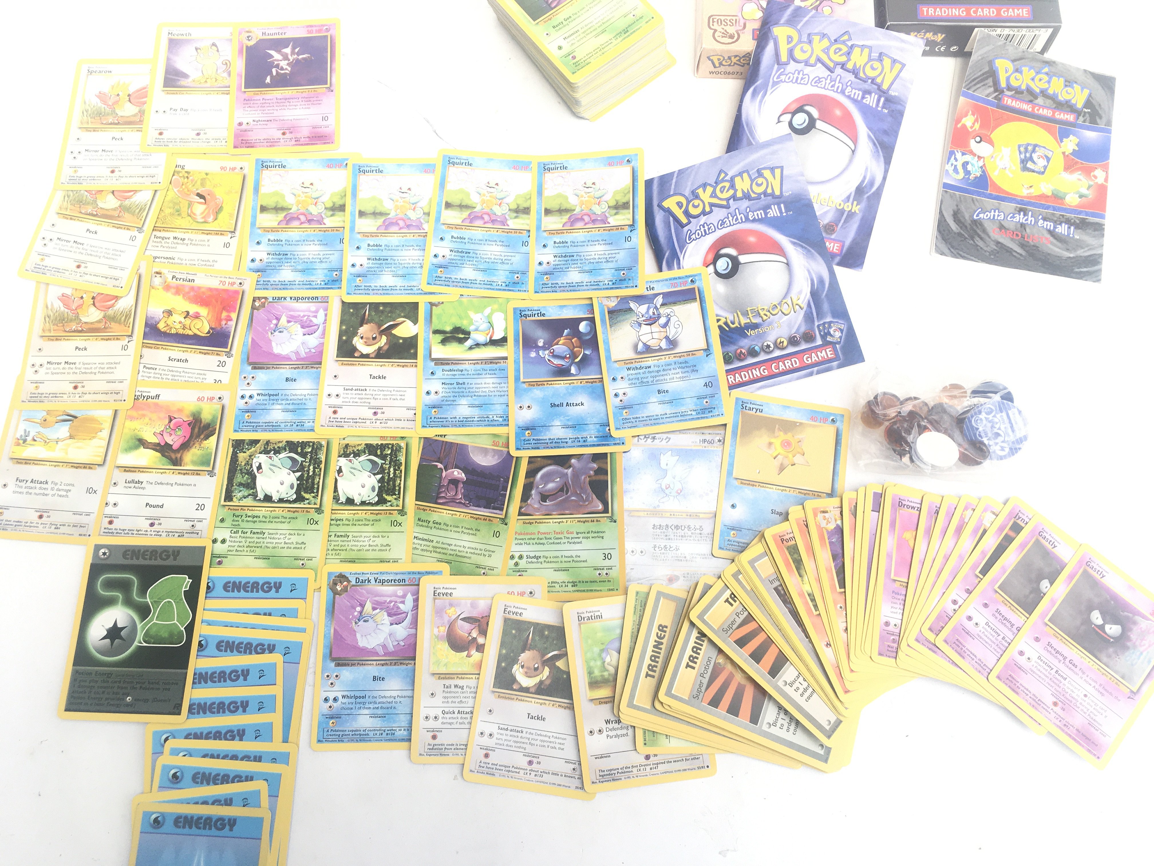 A Collection of Pokemon Cards and 2 Empty Boxes.