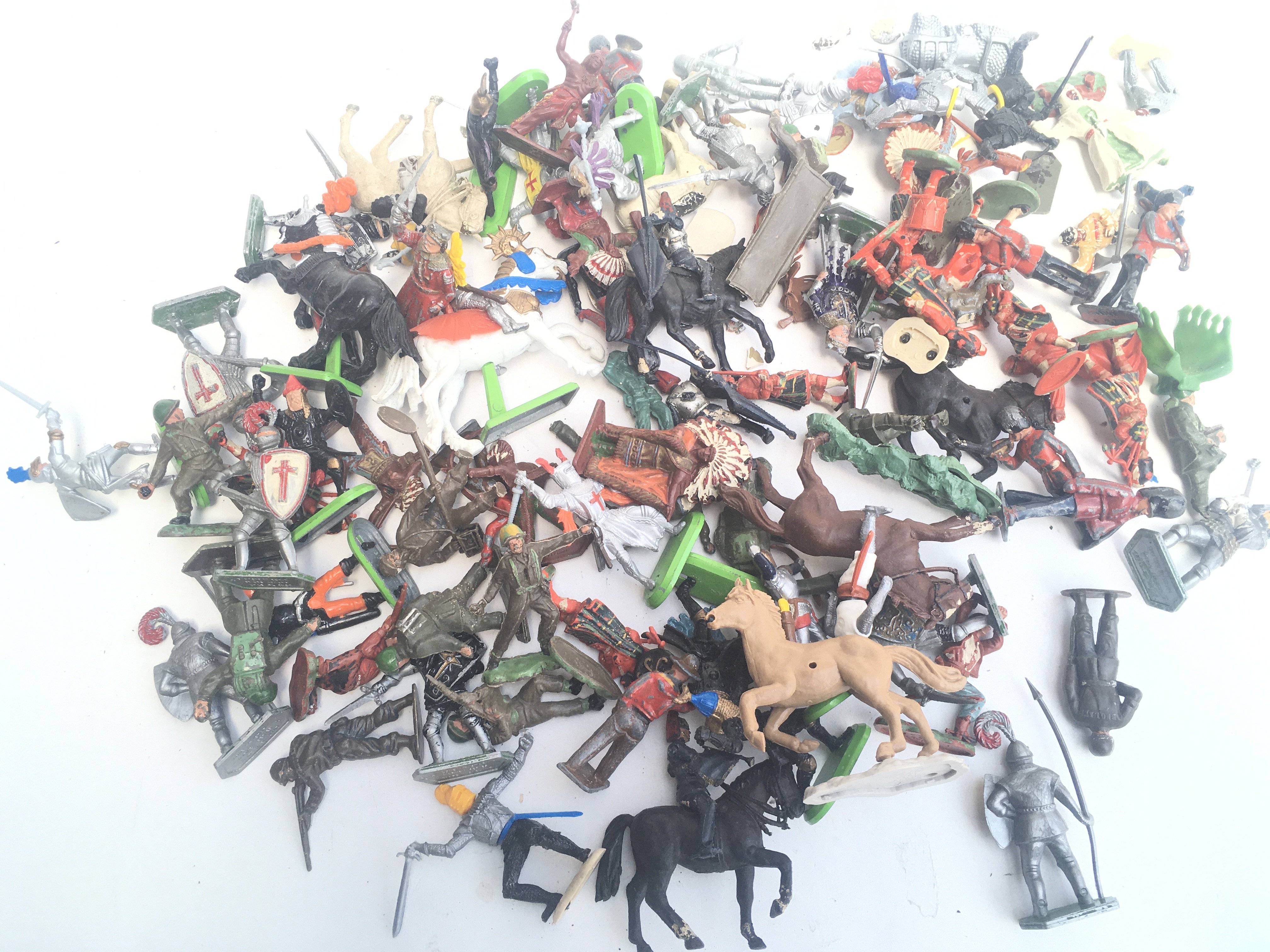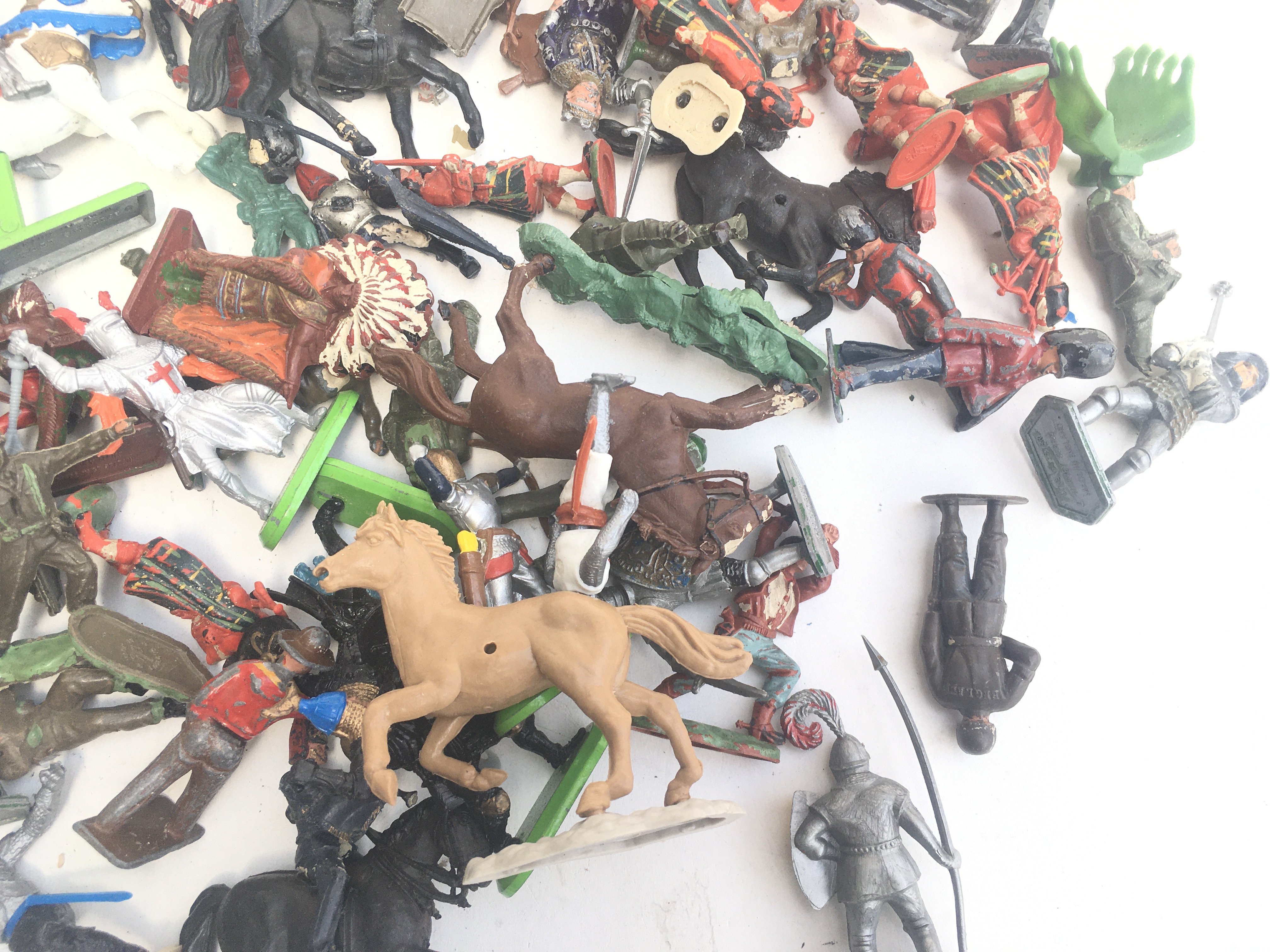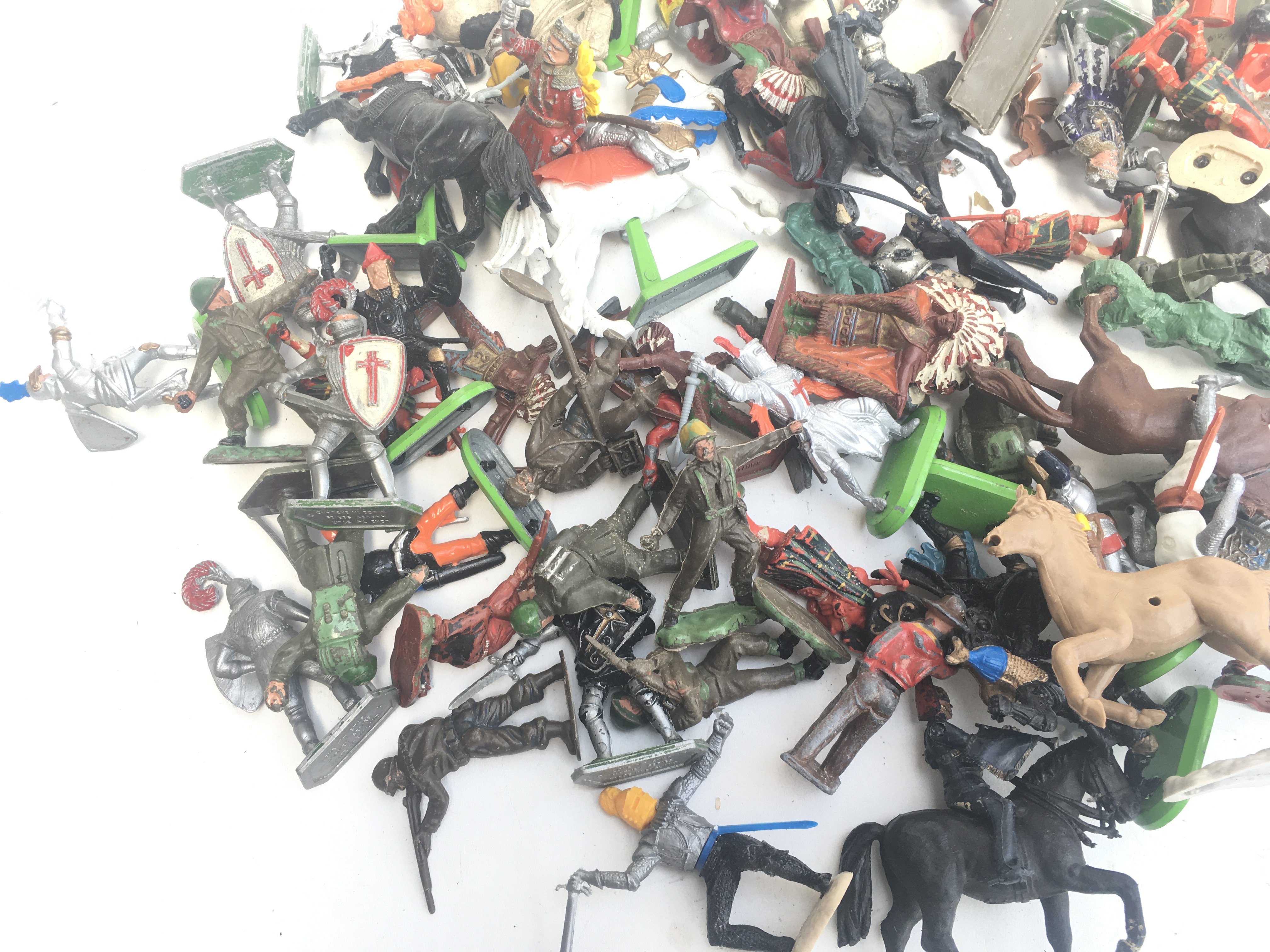 A Collection of Playworn Plastic Toy Soldiers. Including Britains.Timpo. Lone Star. Etc.