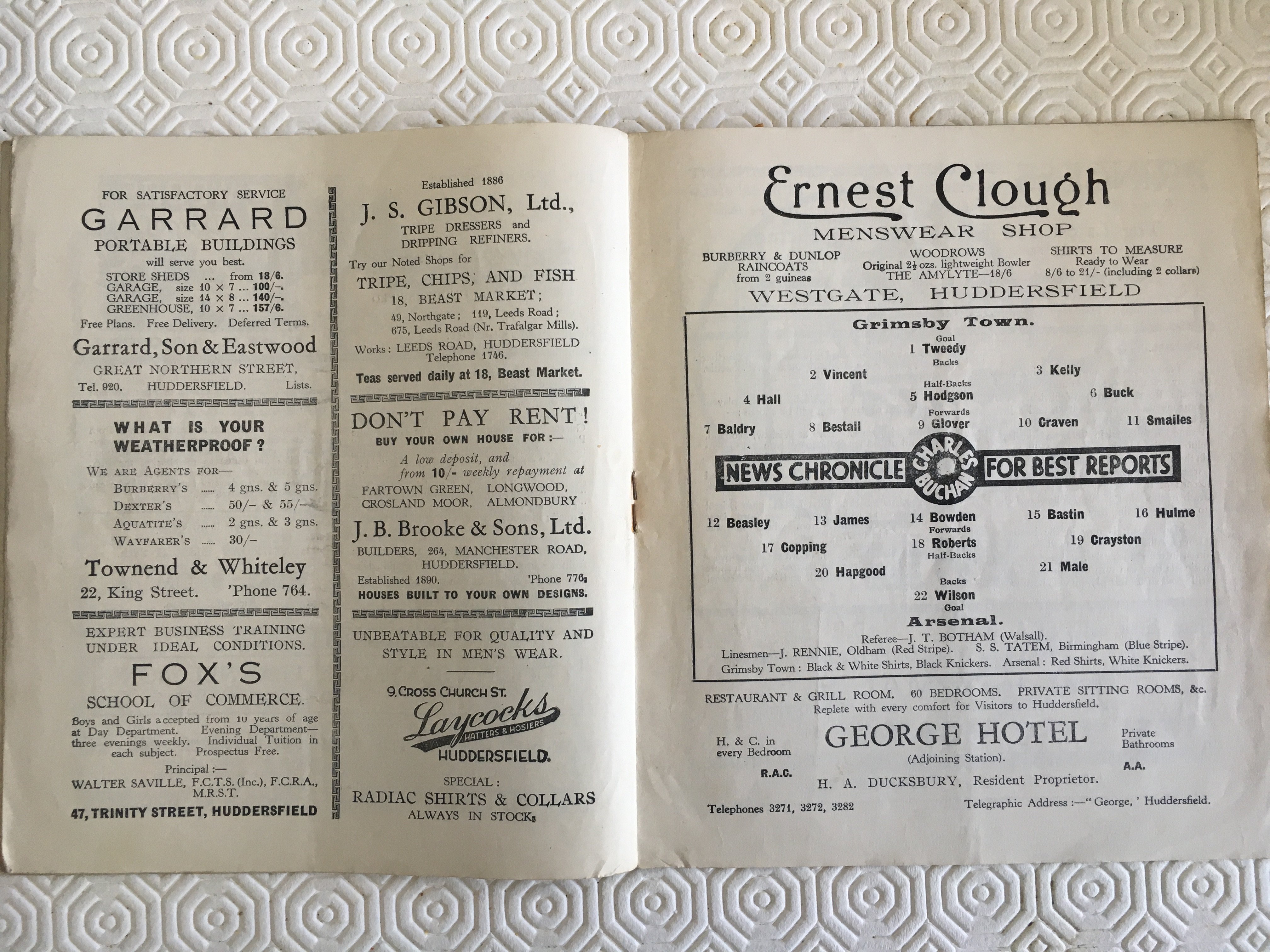 1936 Grimsby v Arsenal FA Cup Semi Final Football Programme: Fair condition played at Huddersfield. No team changes but only staple holding cover on after spine split.