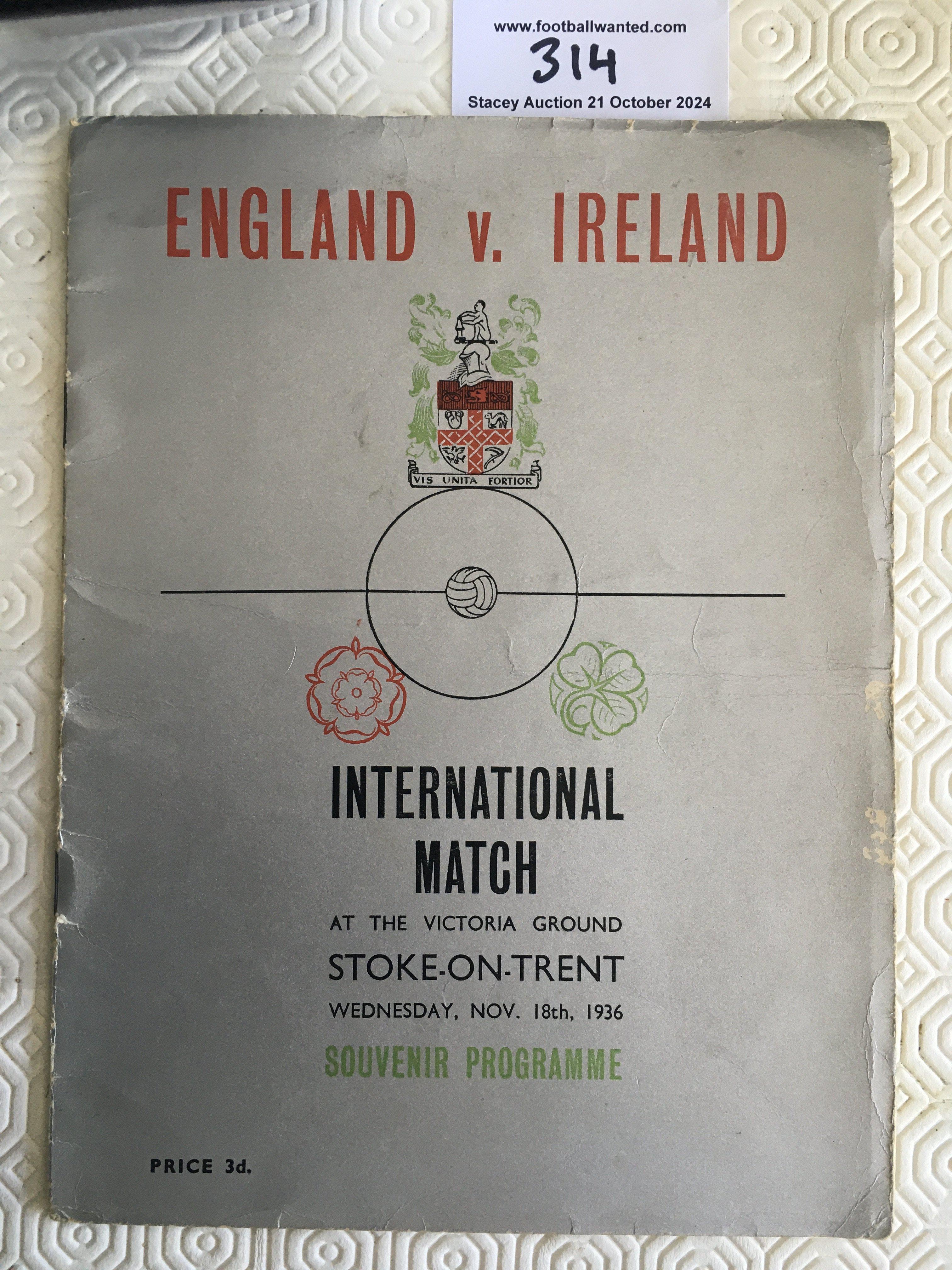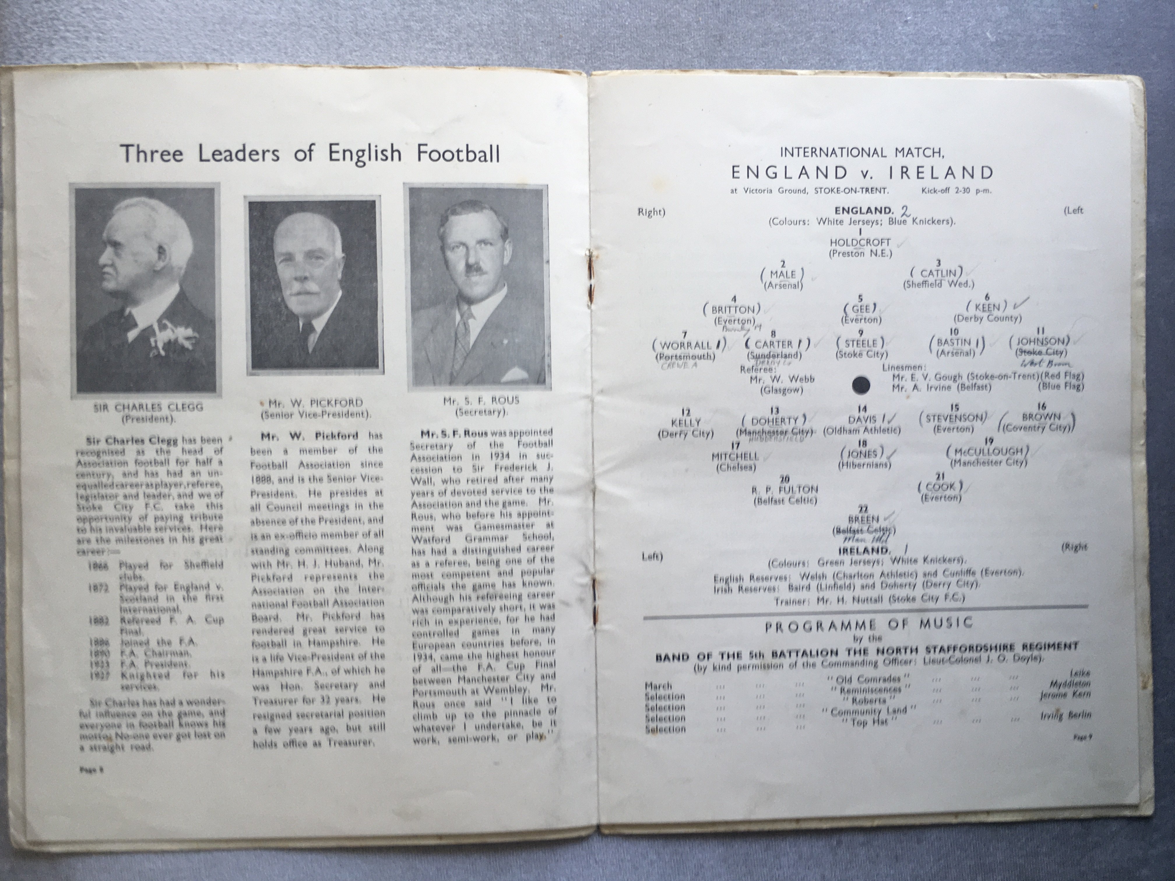 1936 England v Ireland Football Programme: Good condition played at Stoke. Team changes etc inside. Unusually without fold.