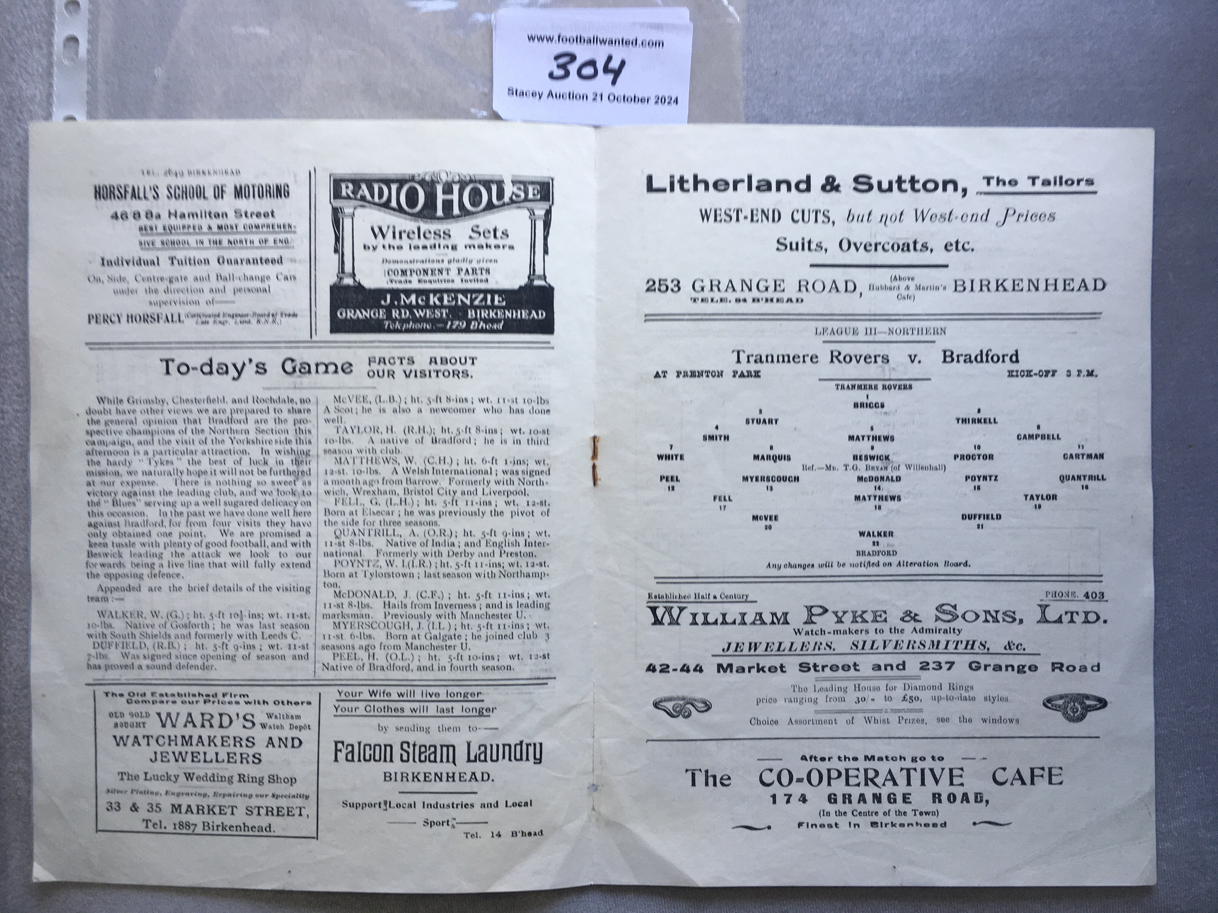 25/26 Tranmere Rovers v Bradford Park Avenue Football Programme: Excellent condition with no team changes.