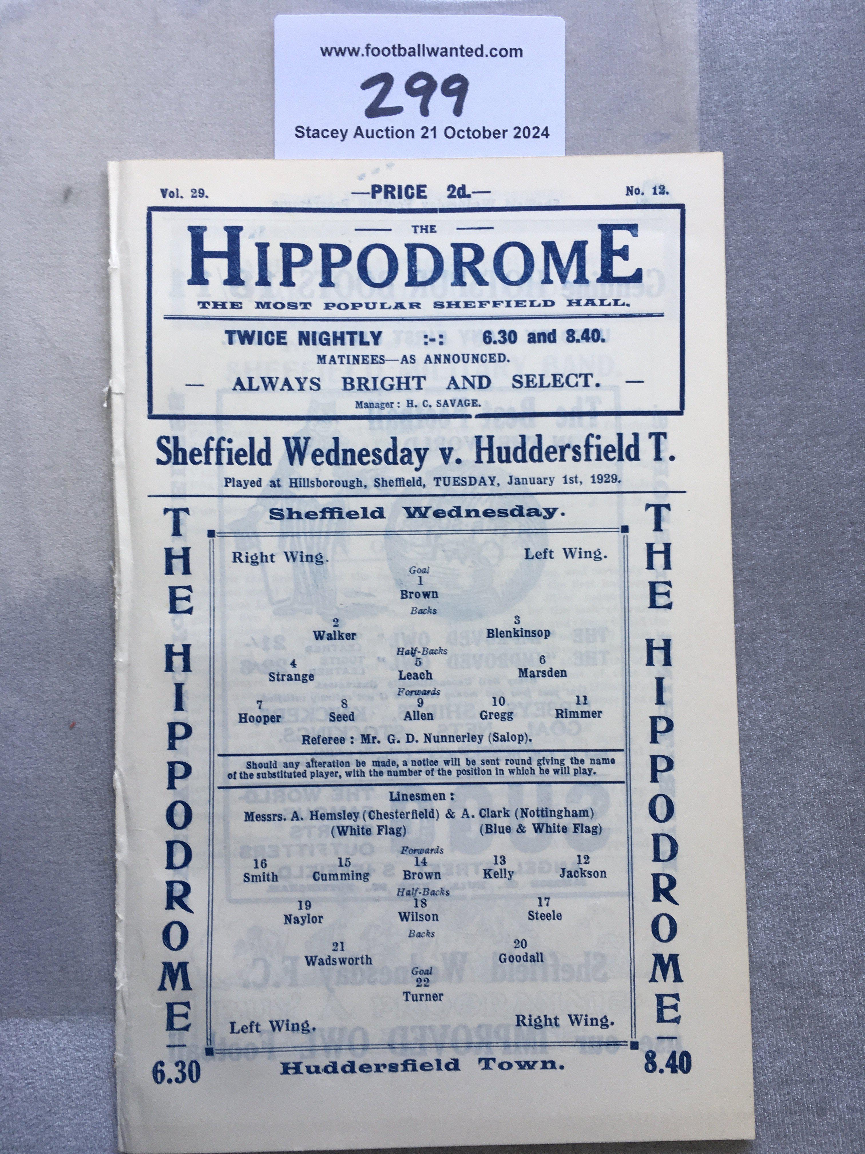 28/29 Sheffield Wednesday v Huddersfield Football Programme: Excellent condition ex bound with no team changes. Covers intact.