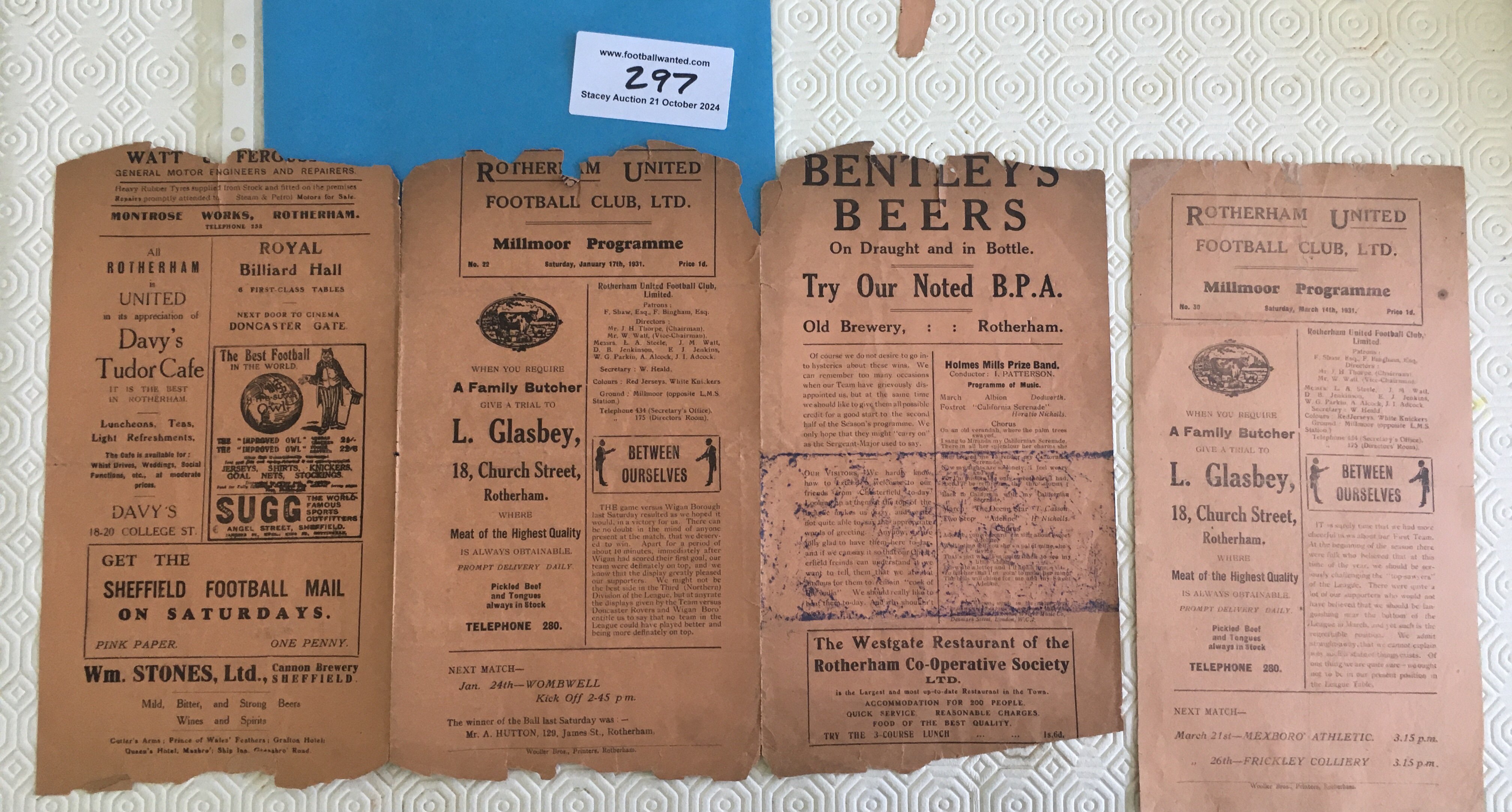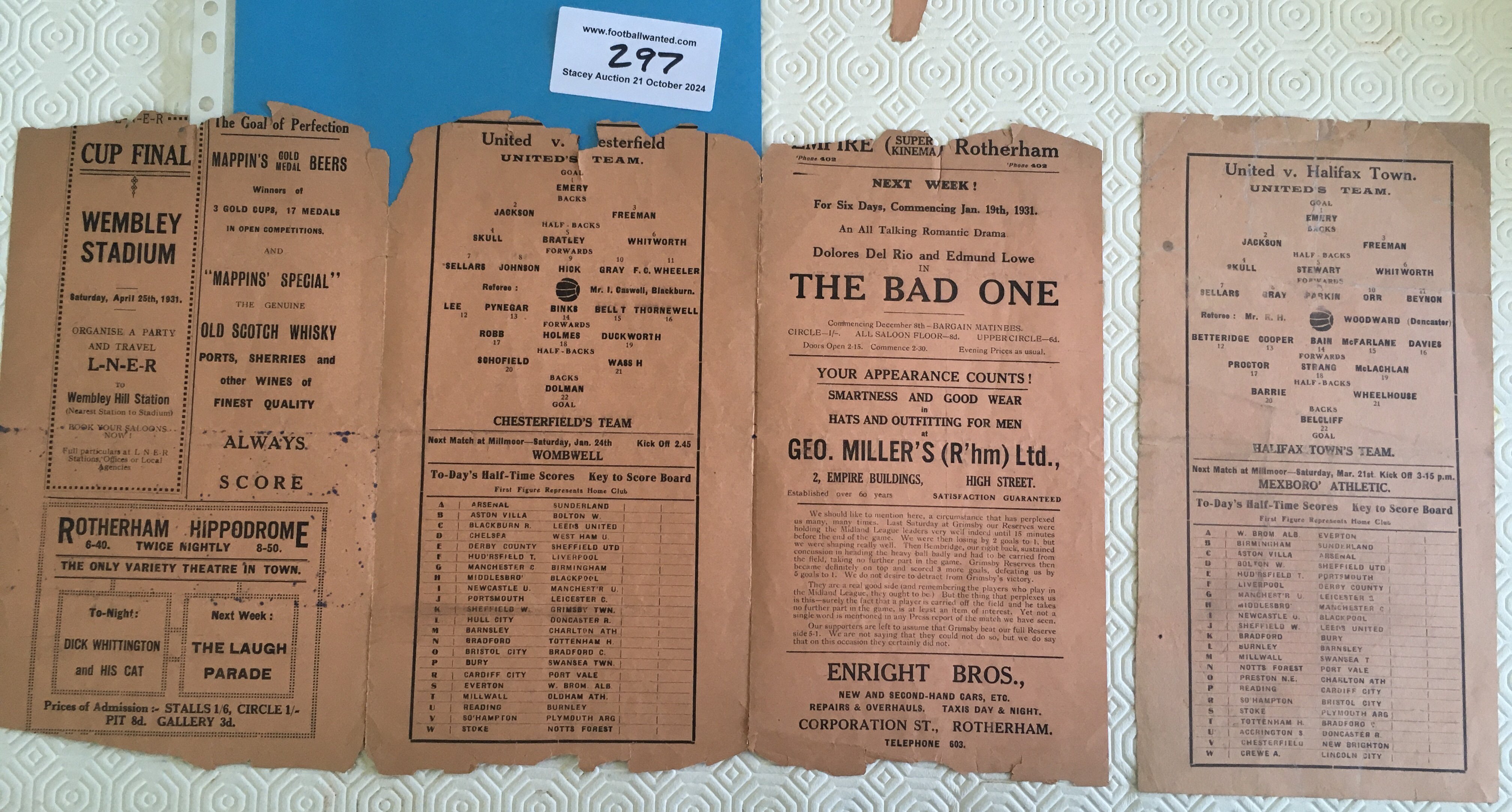 30/31 Rotherham v Chesterfield + Halifax Football Programmes: Firstly a 6 page gatefold v Chesterfield that is poor with a lot of paper loss mainly to borders and a tear. The 2nd programme v Halifax appears to be a well repaired single sheet but this should also be a gatefold programme. (2)