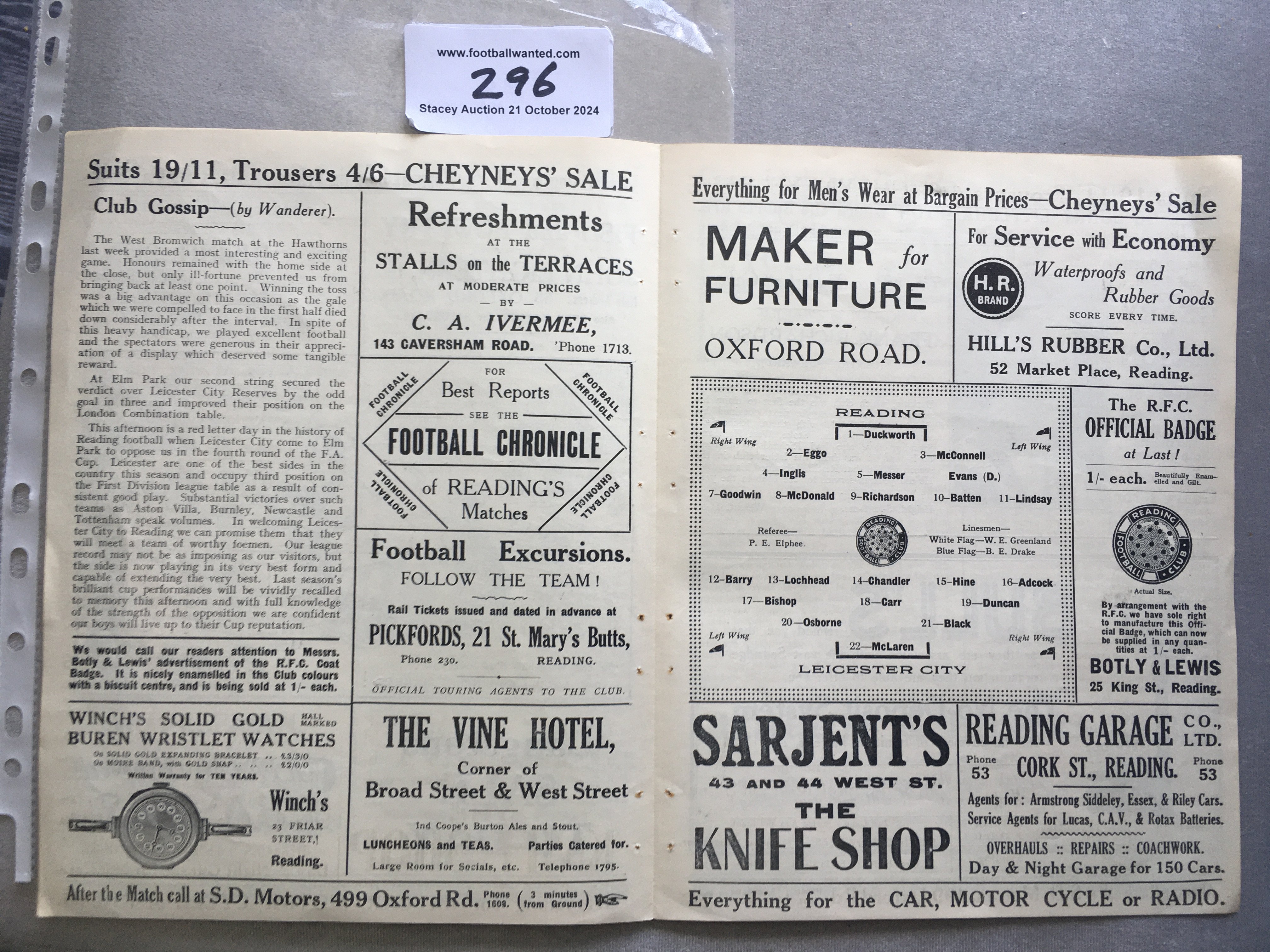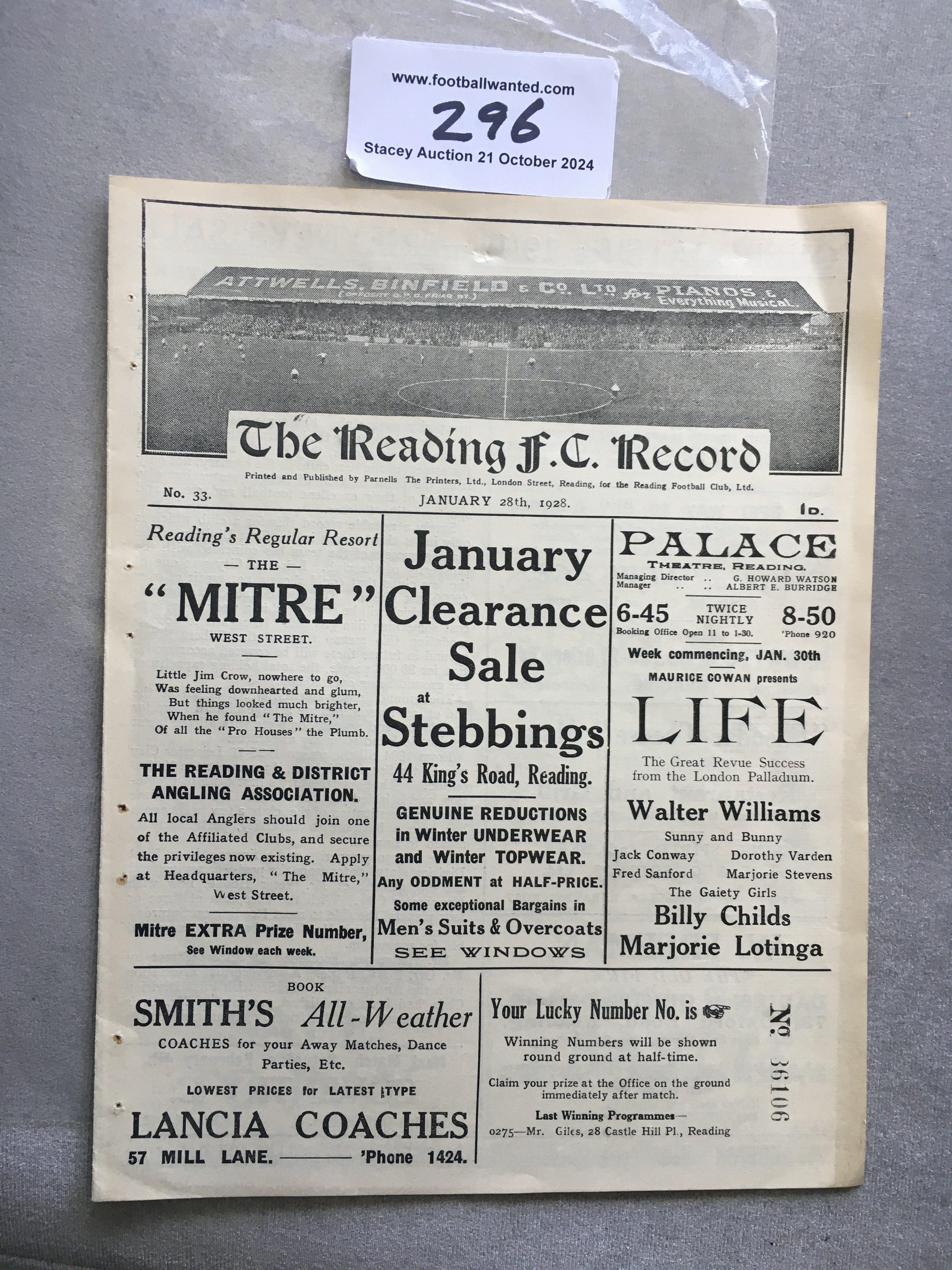 27/28 Reading v Leicester City FA Cup Football Programme: Excellent condition ex bound 4th round match with no team changes.