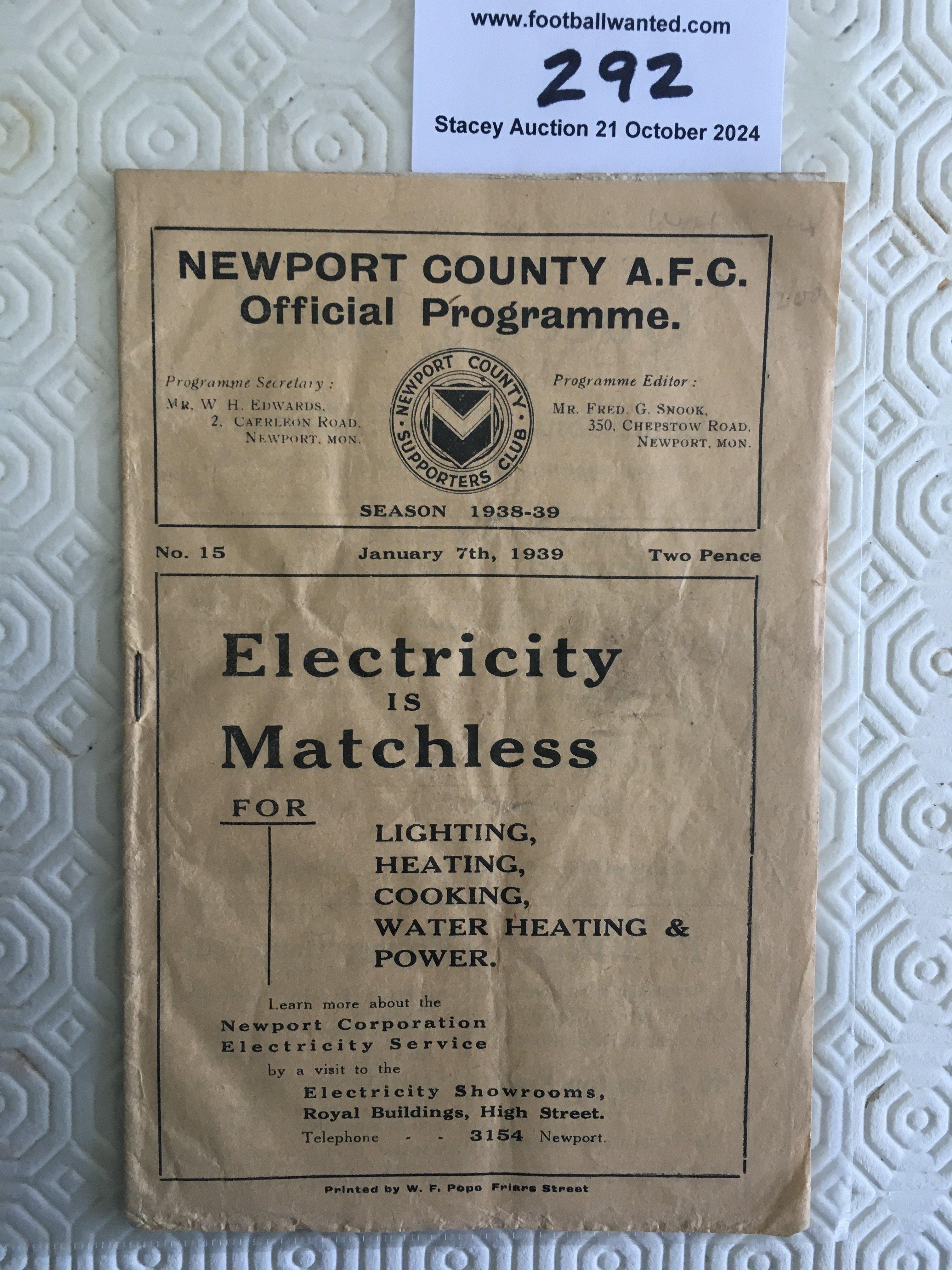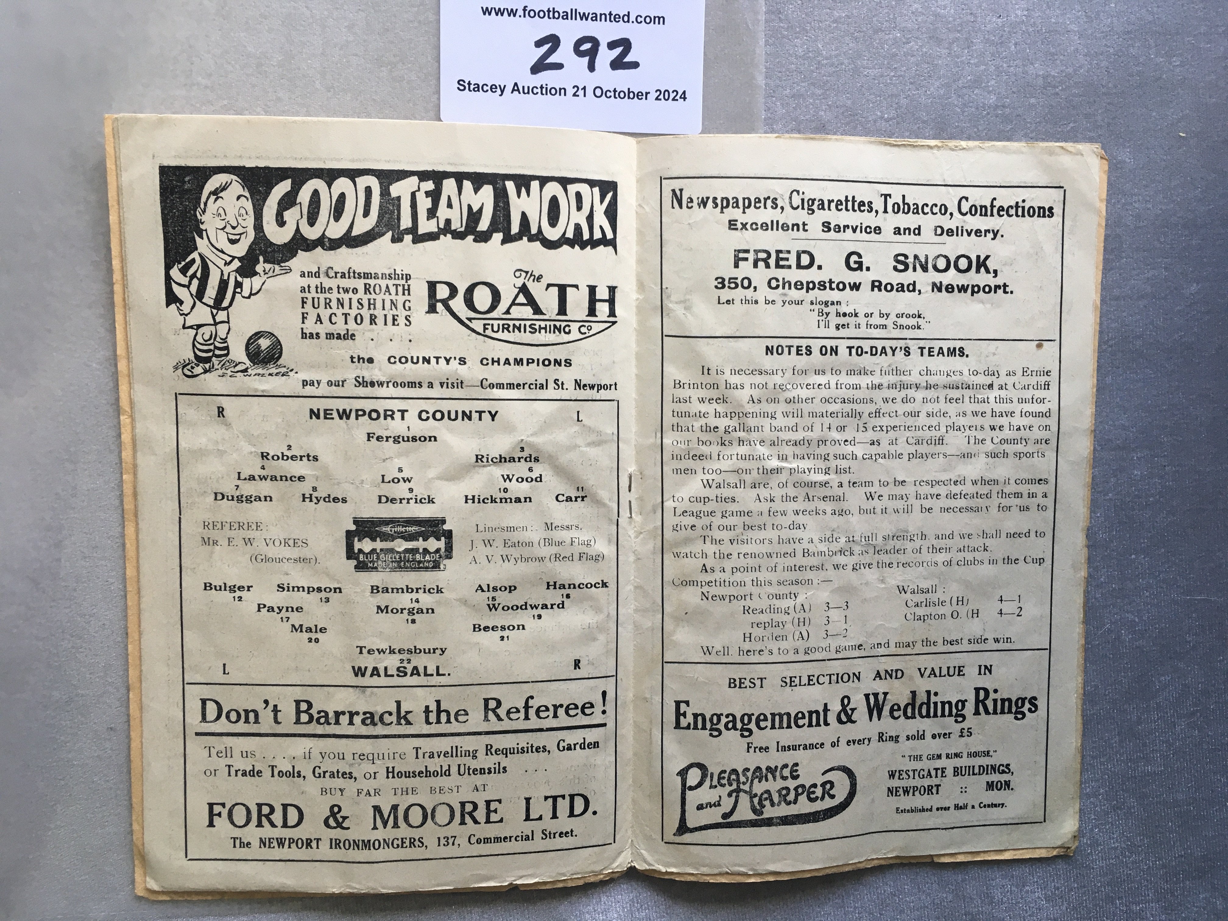 38/39 Newport County v Walsall Football Programme: Good condition with no team changes.