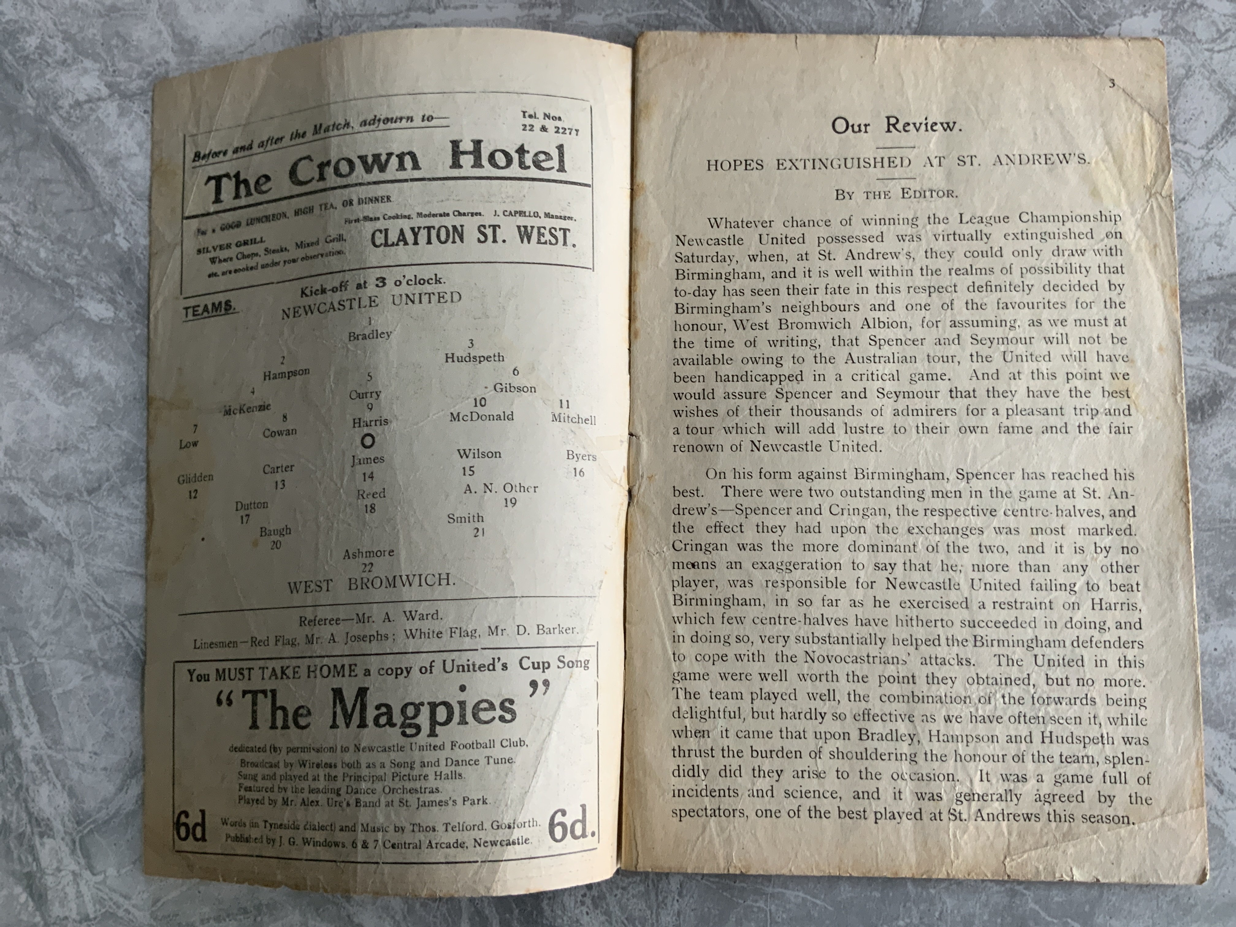 24/25 Newcastle v West Brom Football Programme: Fair/good condition division one match with no team changes.