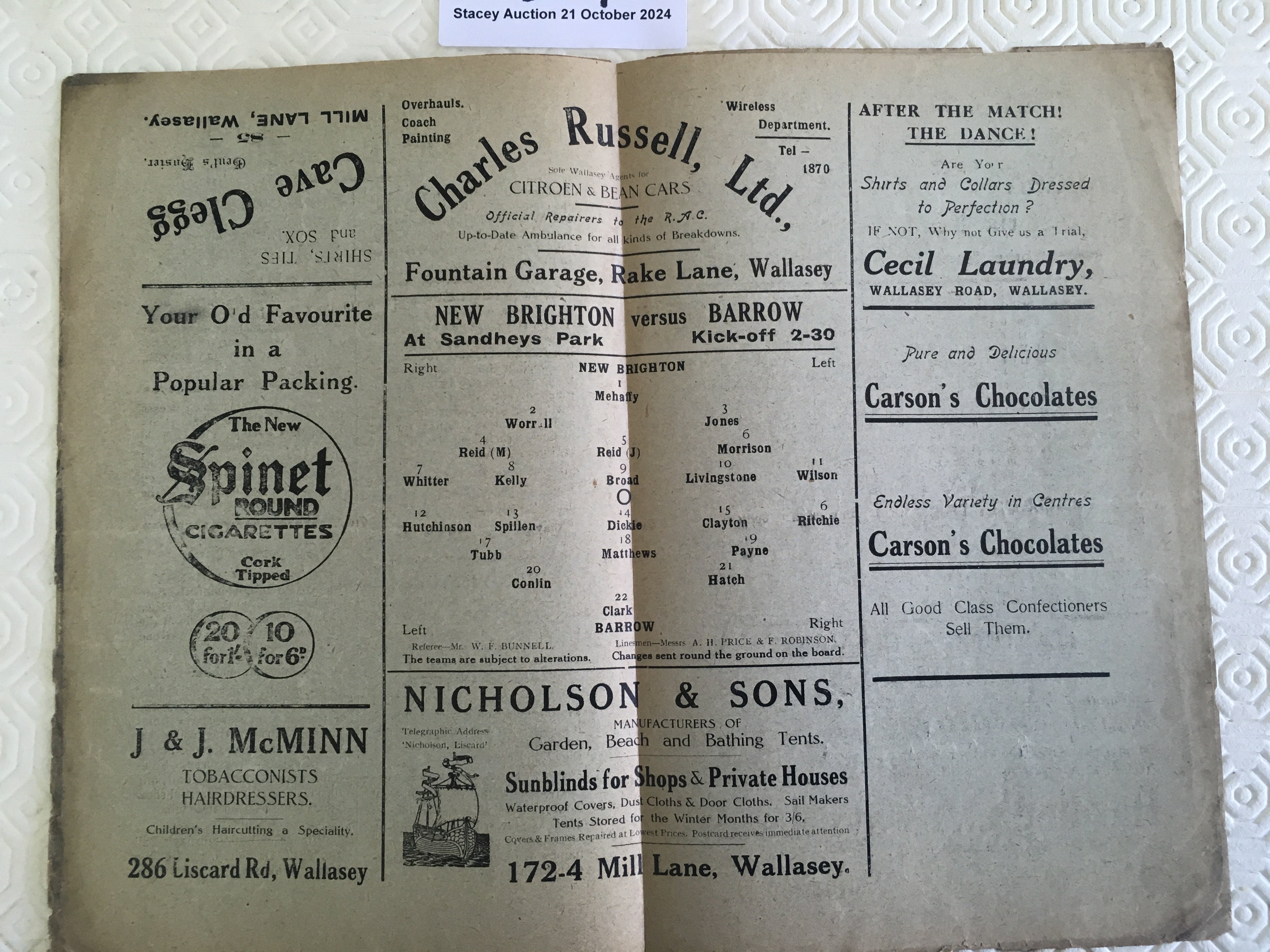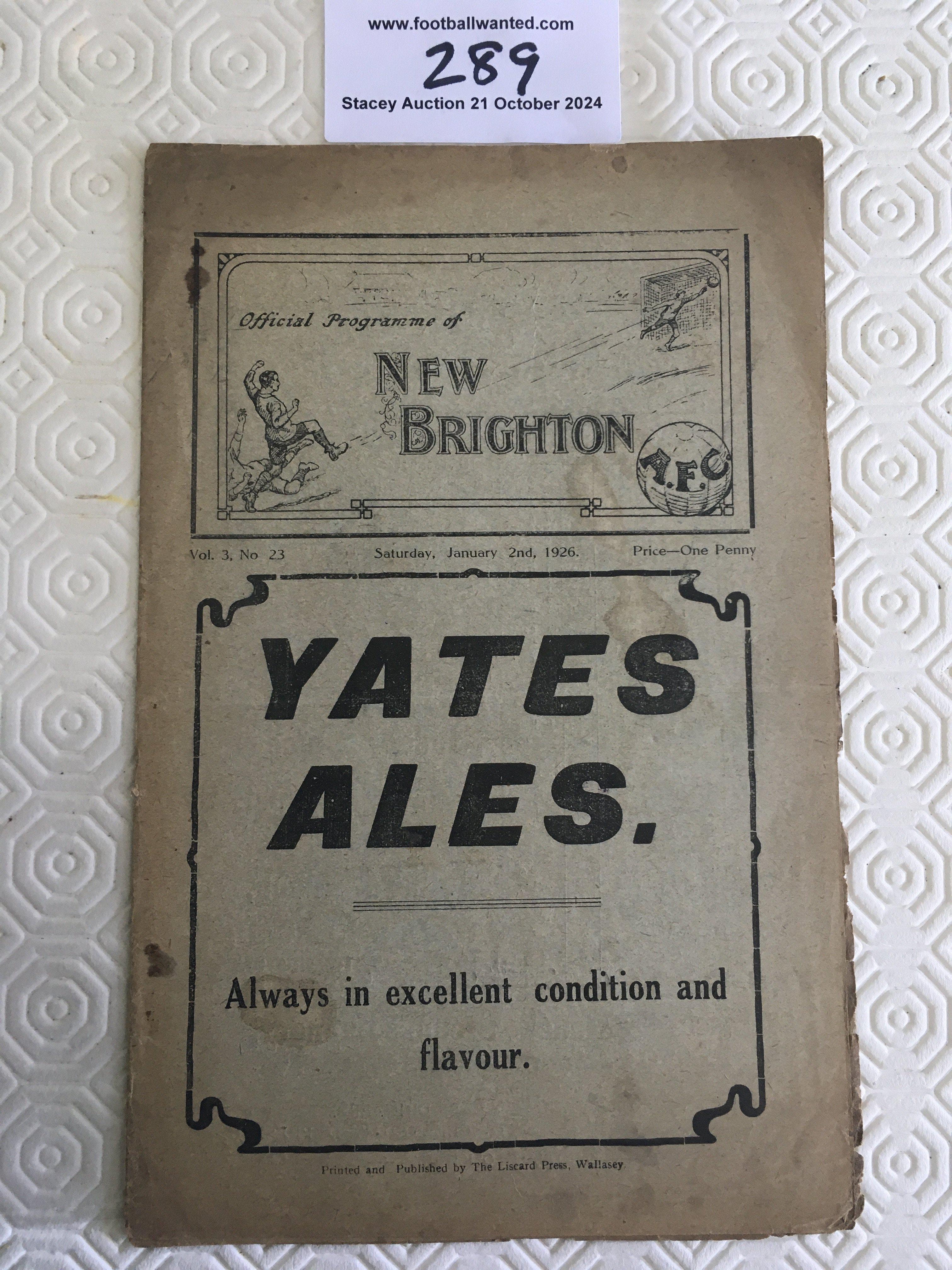 25/26 New Brighton v Barrow Football Programme: Good condition with no team changes. Slight staining more prevalent to back page.