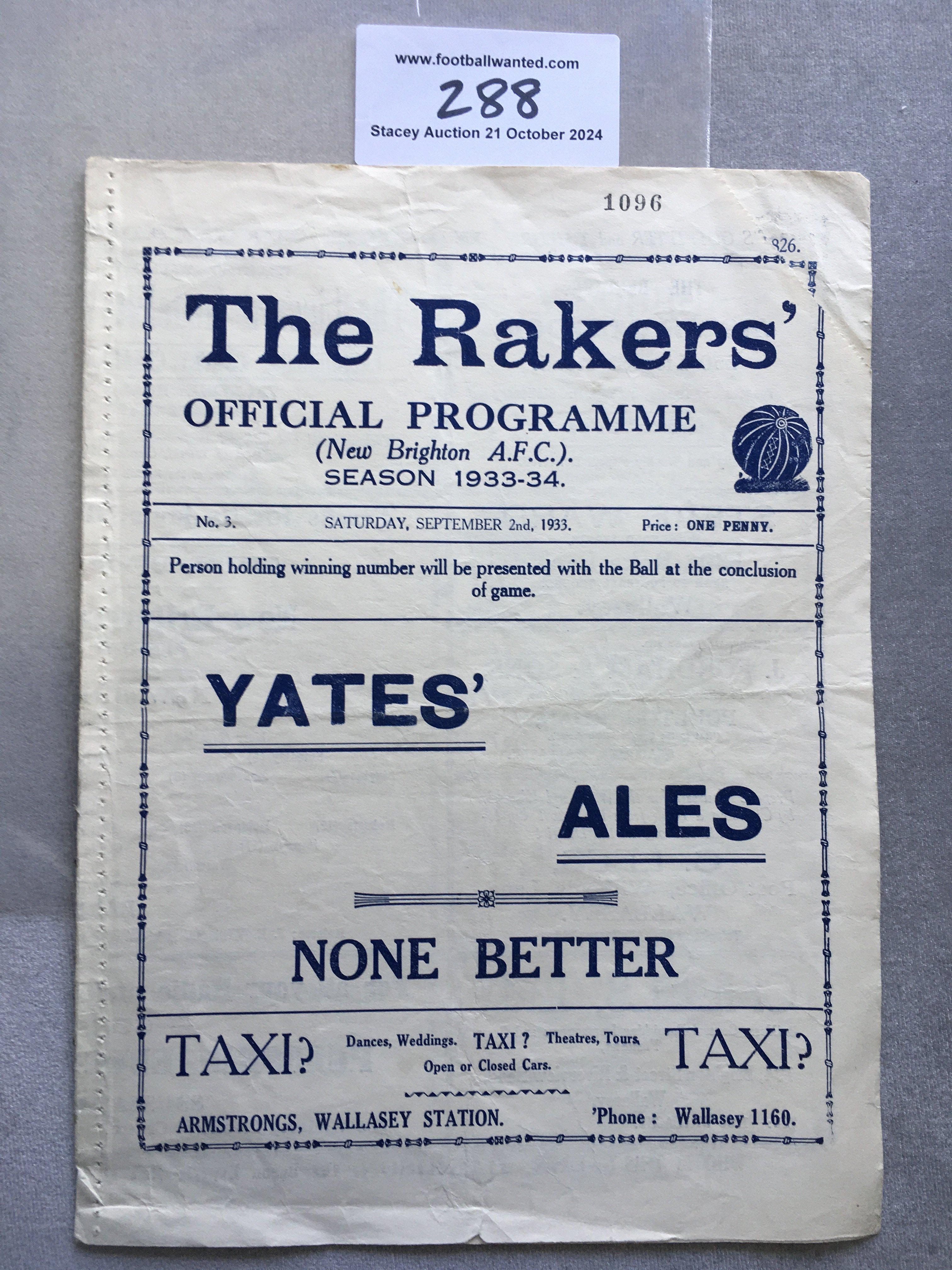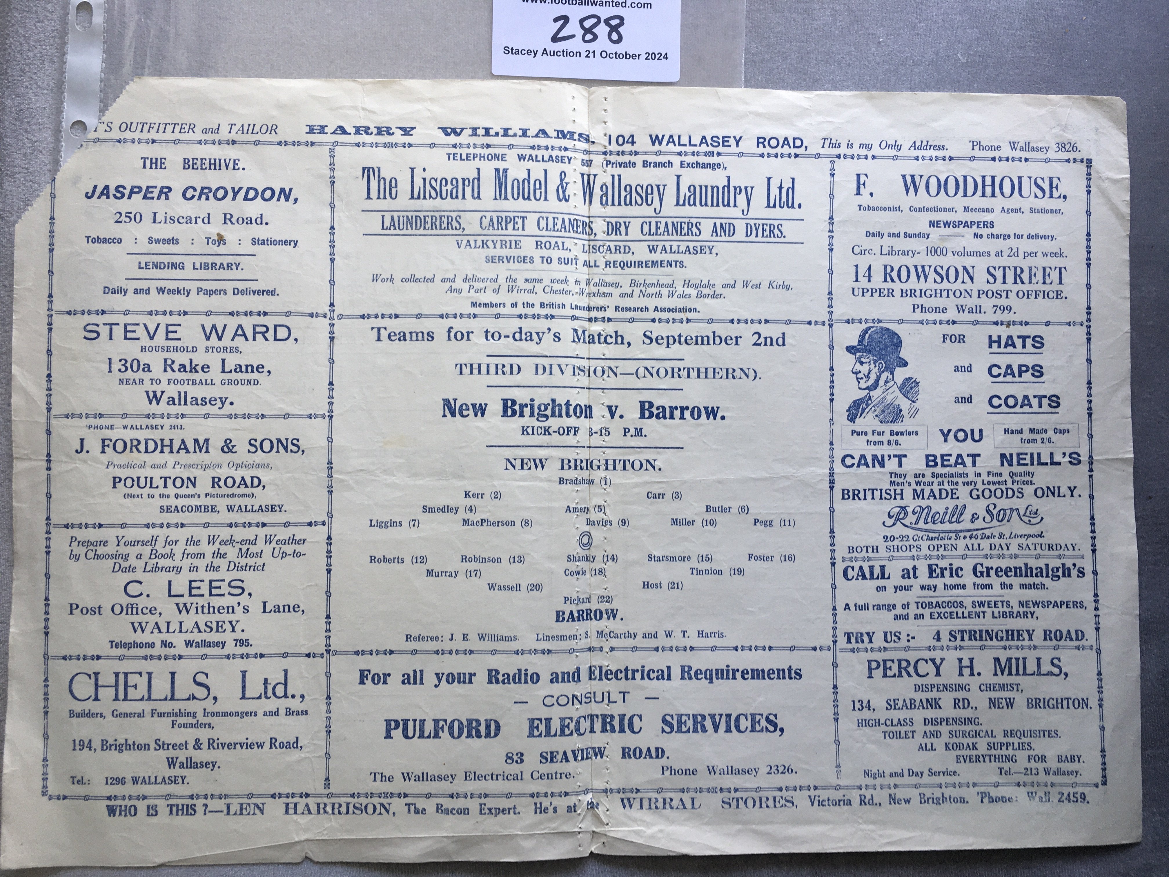 33/34 New Brighton v Barrow Football Programme: Good condition ex bound 4 pager with no team changes. Corner removed.