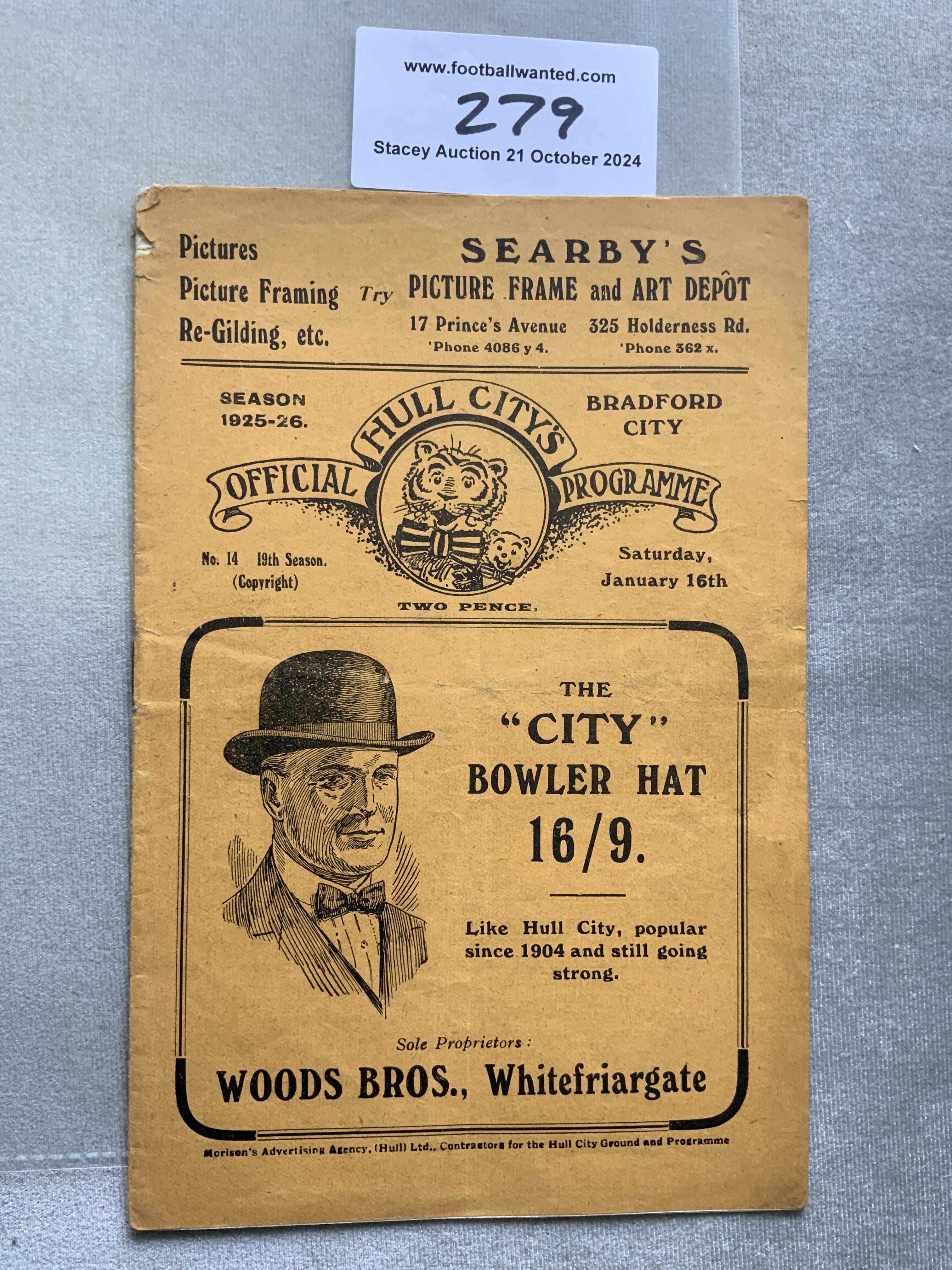 25/26 Hull City v Bradford City Football Programme: Good condition with no team changes.