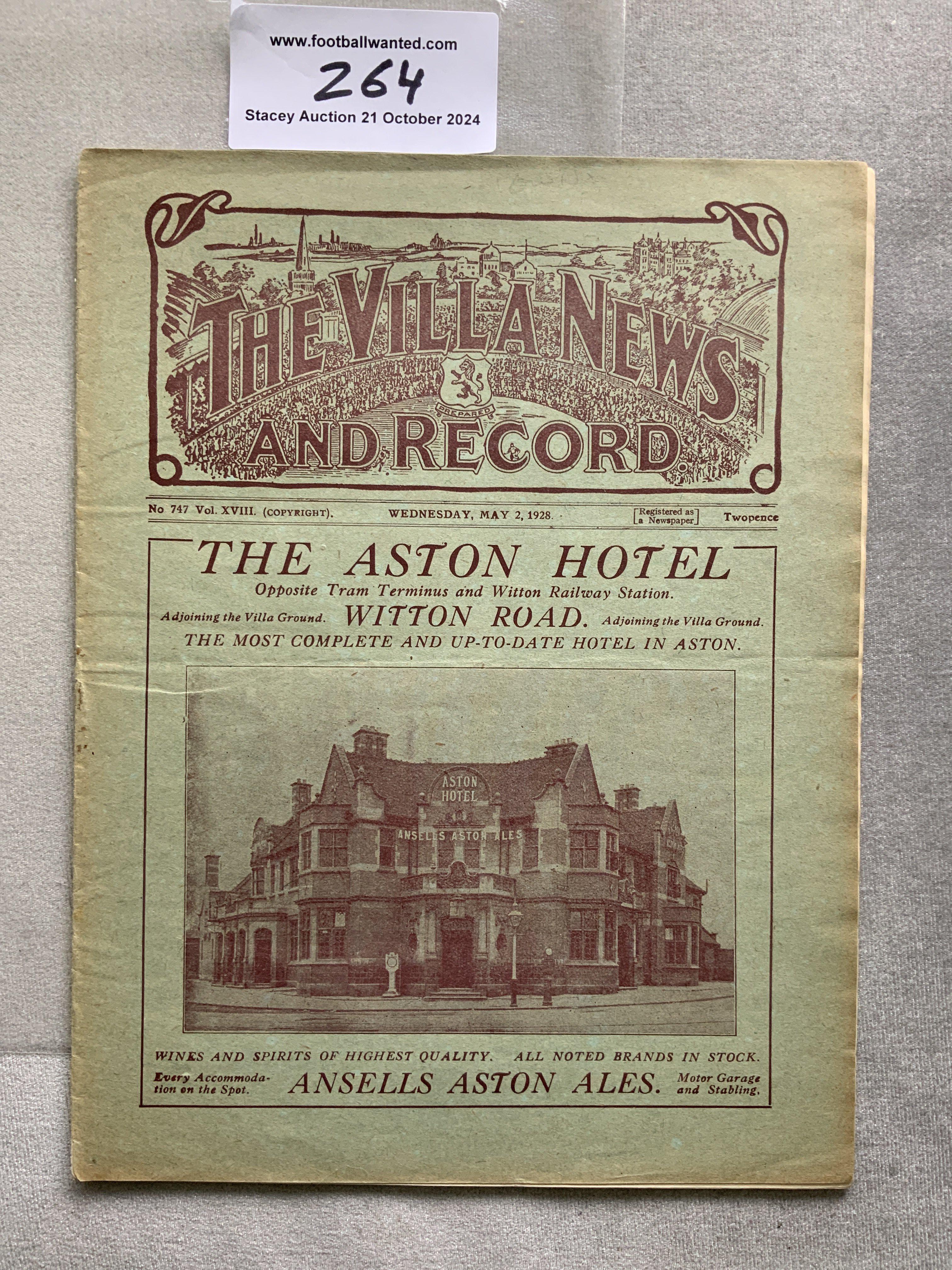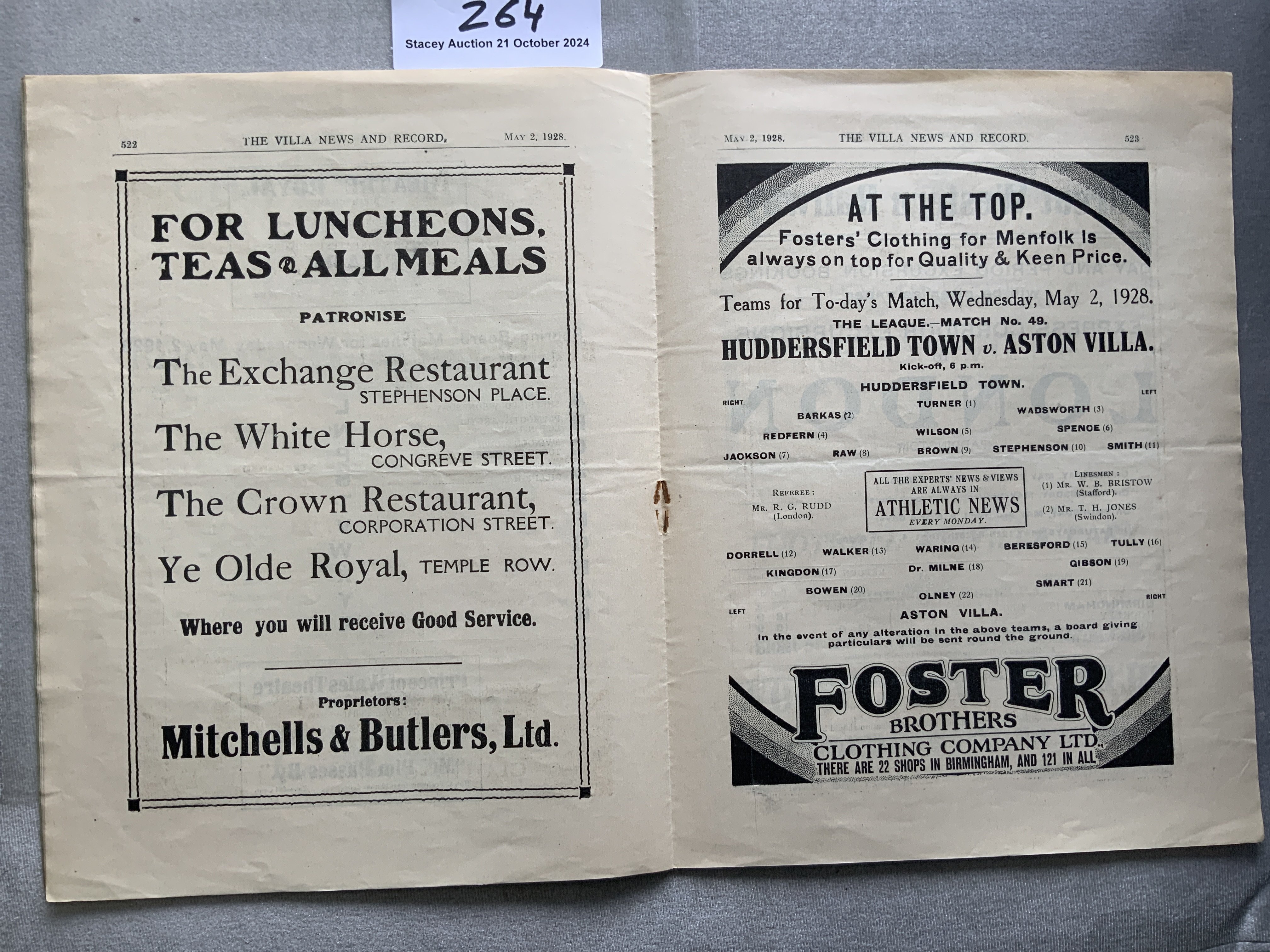 27/28 Aston Villa v Huddersfield Town Football Programme: Fair/good condition league match with no team changes. Picture of Huddersfields Cup Final team inside. Some small tears either end of spine.
