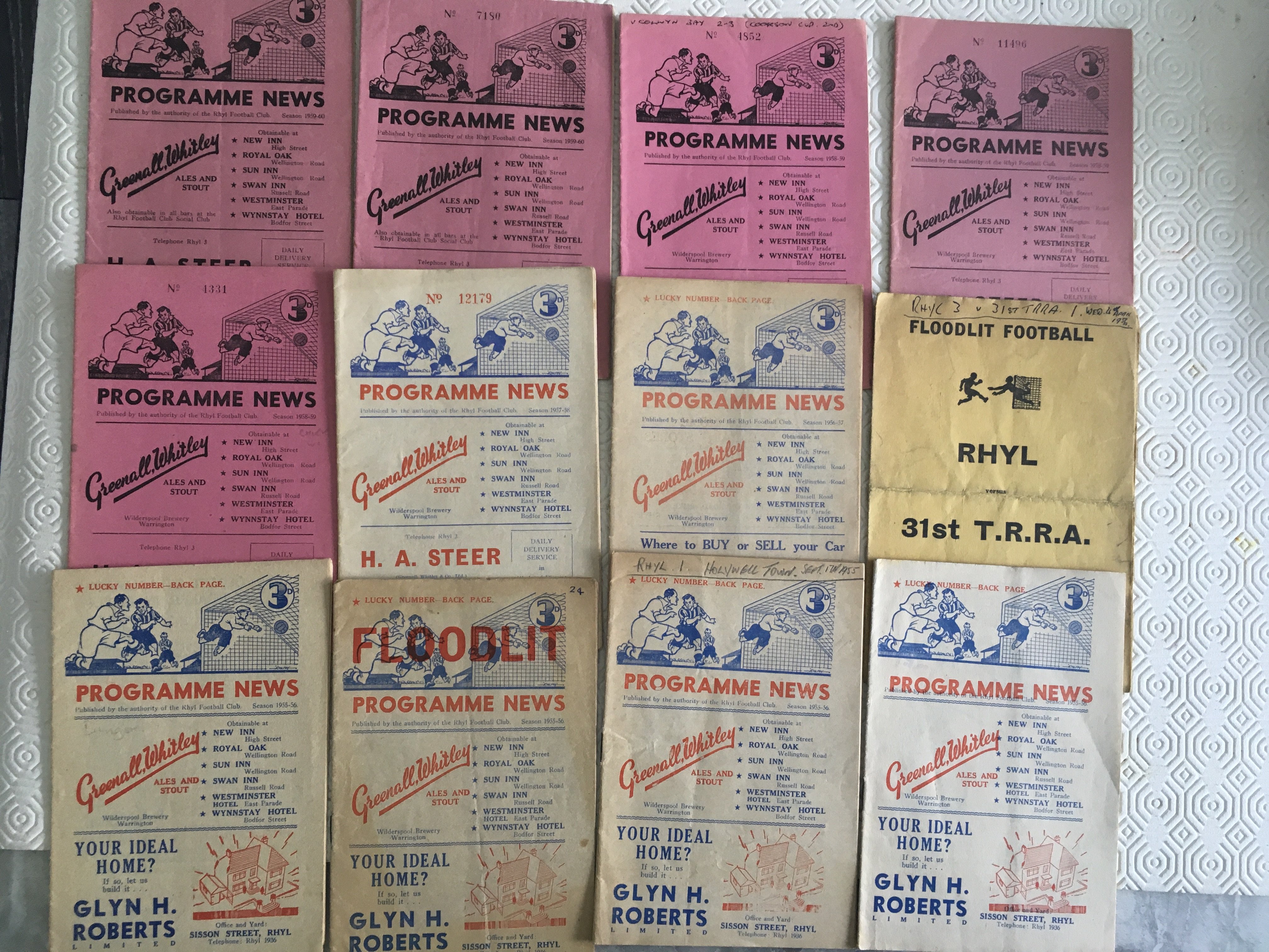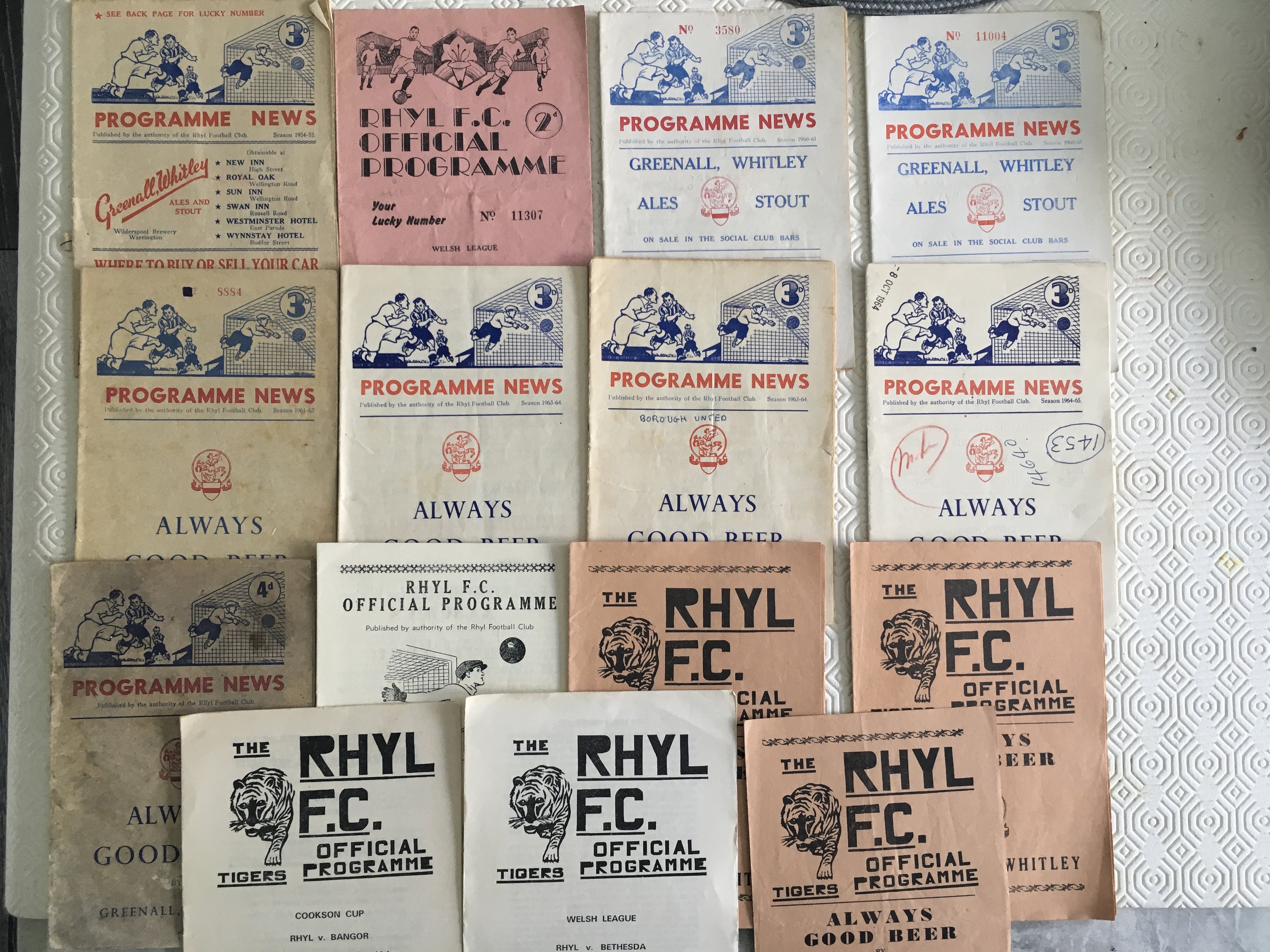 Rhyl Home Football Programmes: From 1954 to 1969 with over half from the 50s. Online photo shows vendors list. Mainly good with a few having team name to cover. (25)