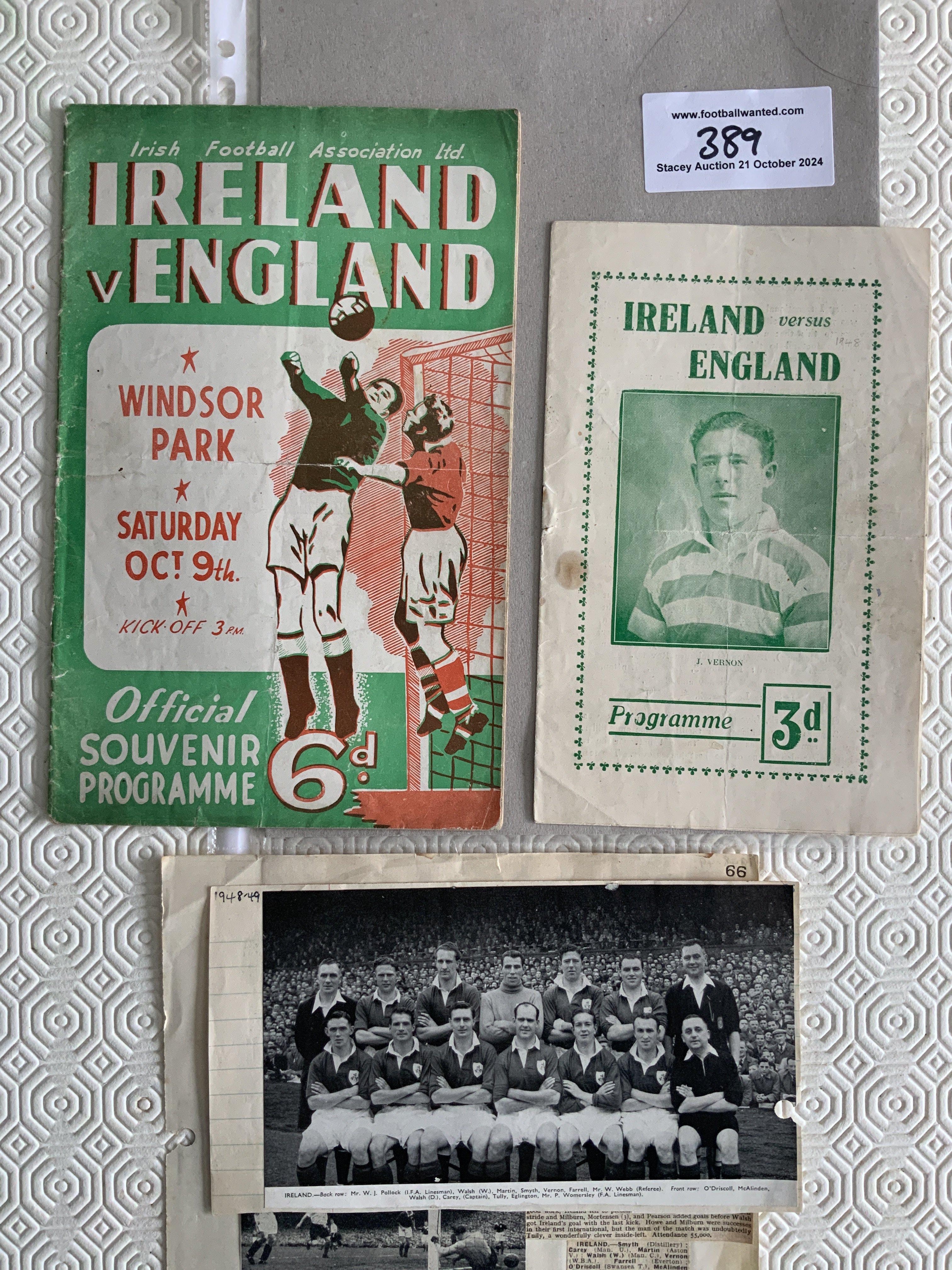 1948 Irish League v English League Football Programmes: Original programme played at Windsor Park with split spine plus a pirate type programme in fair condition. (2)