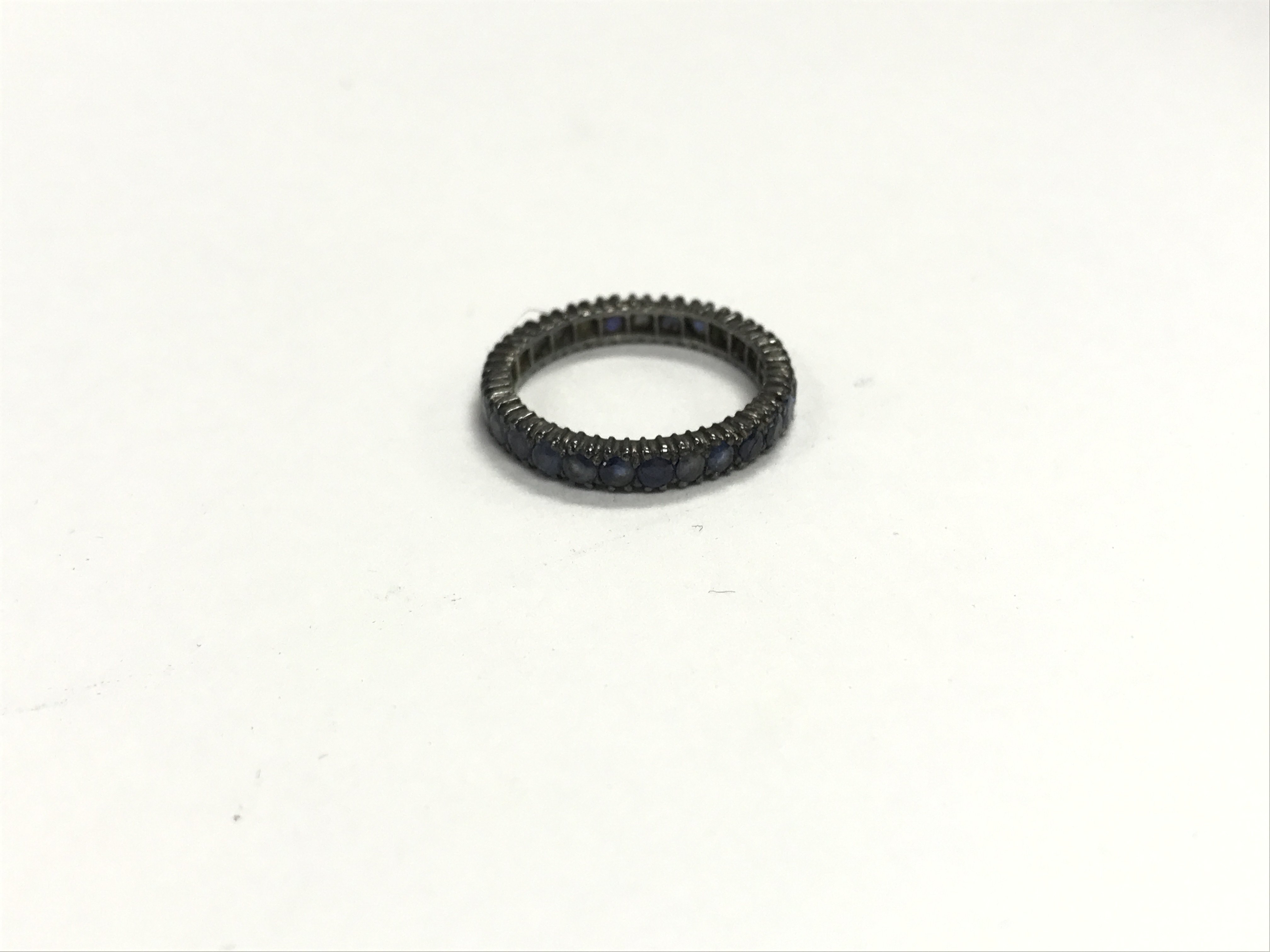 A silver and blue sapphire eternity ring. Approx weight 1.97 grams, approx size L.