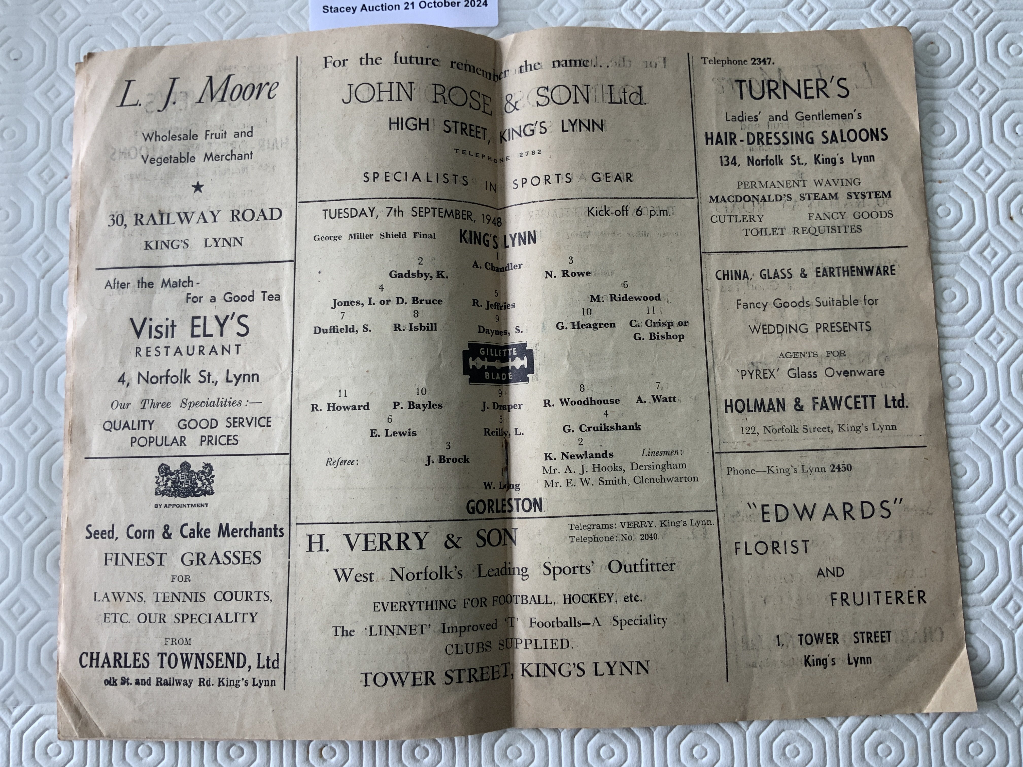 48/49 Kings Lynn v Gorleston Football Programme: George Miller Final dated 7 9 1948 in good condition with no team changes.