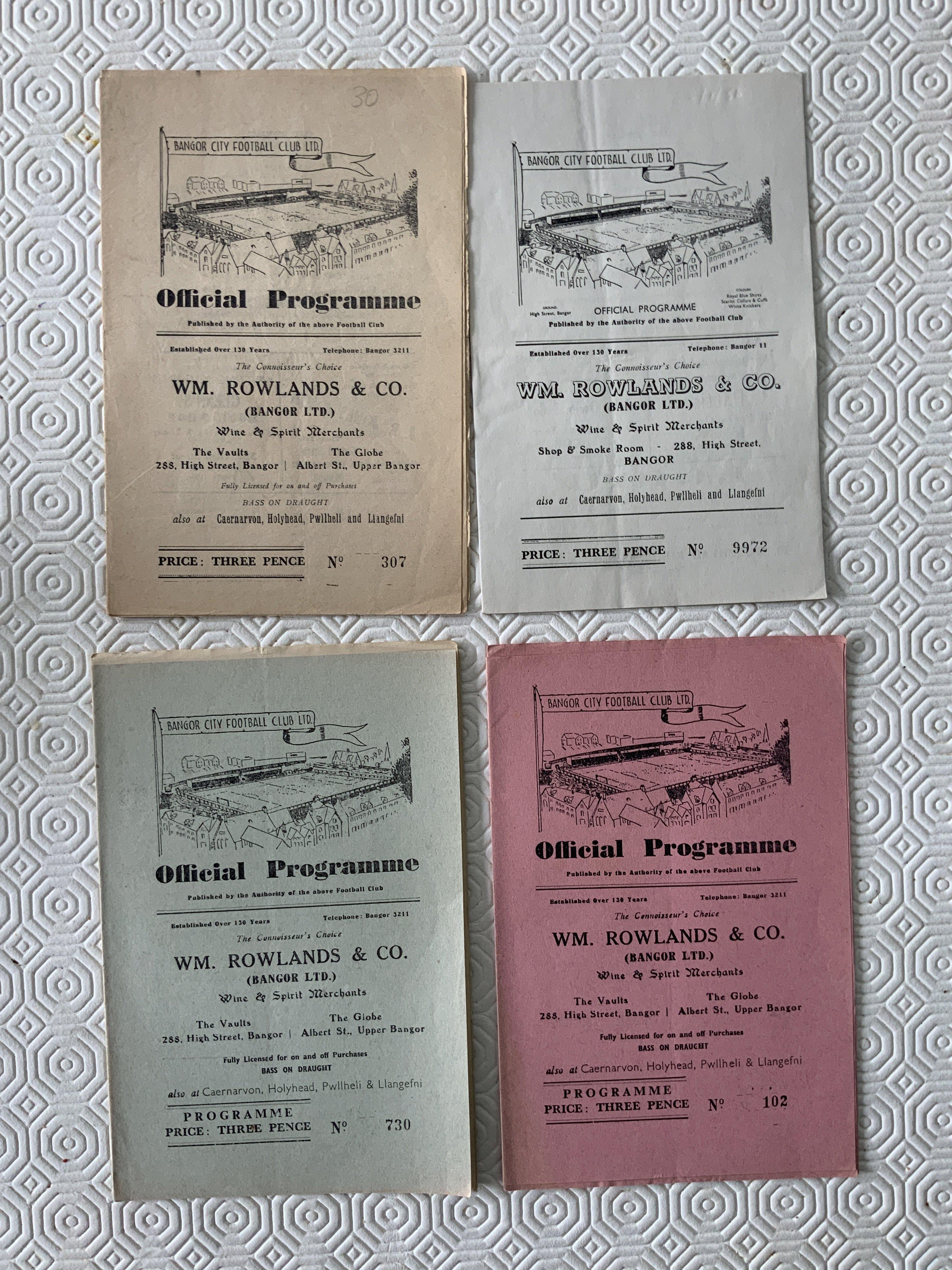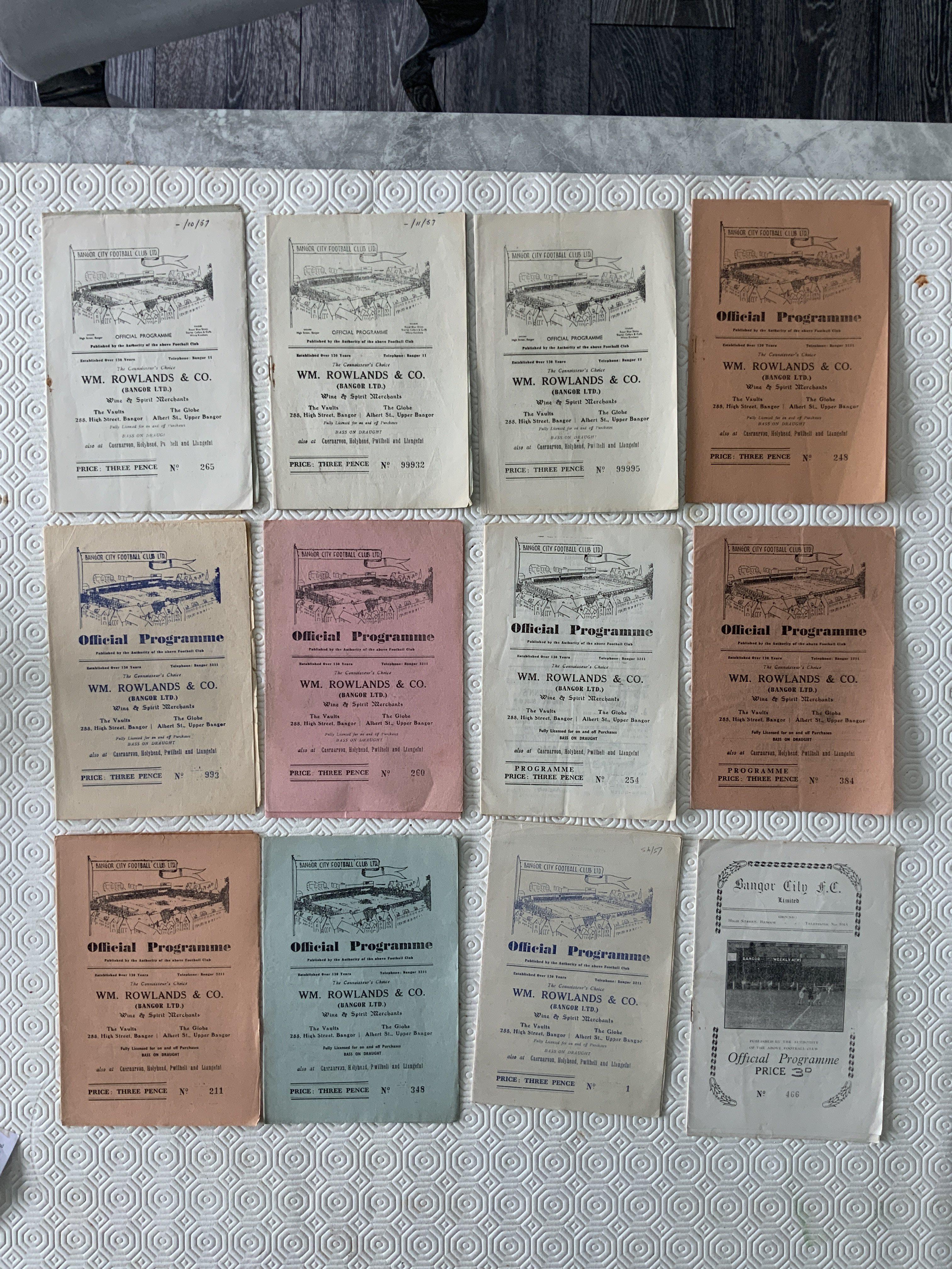 Bangor City Home Football Programmes: From the 50s and 60s in good condition with a few having date written to cover. (16)