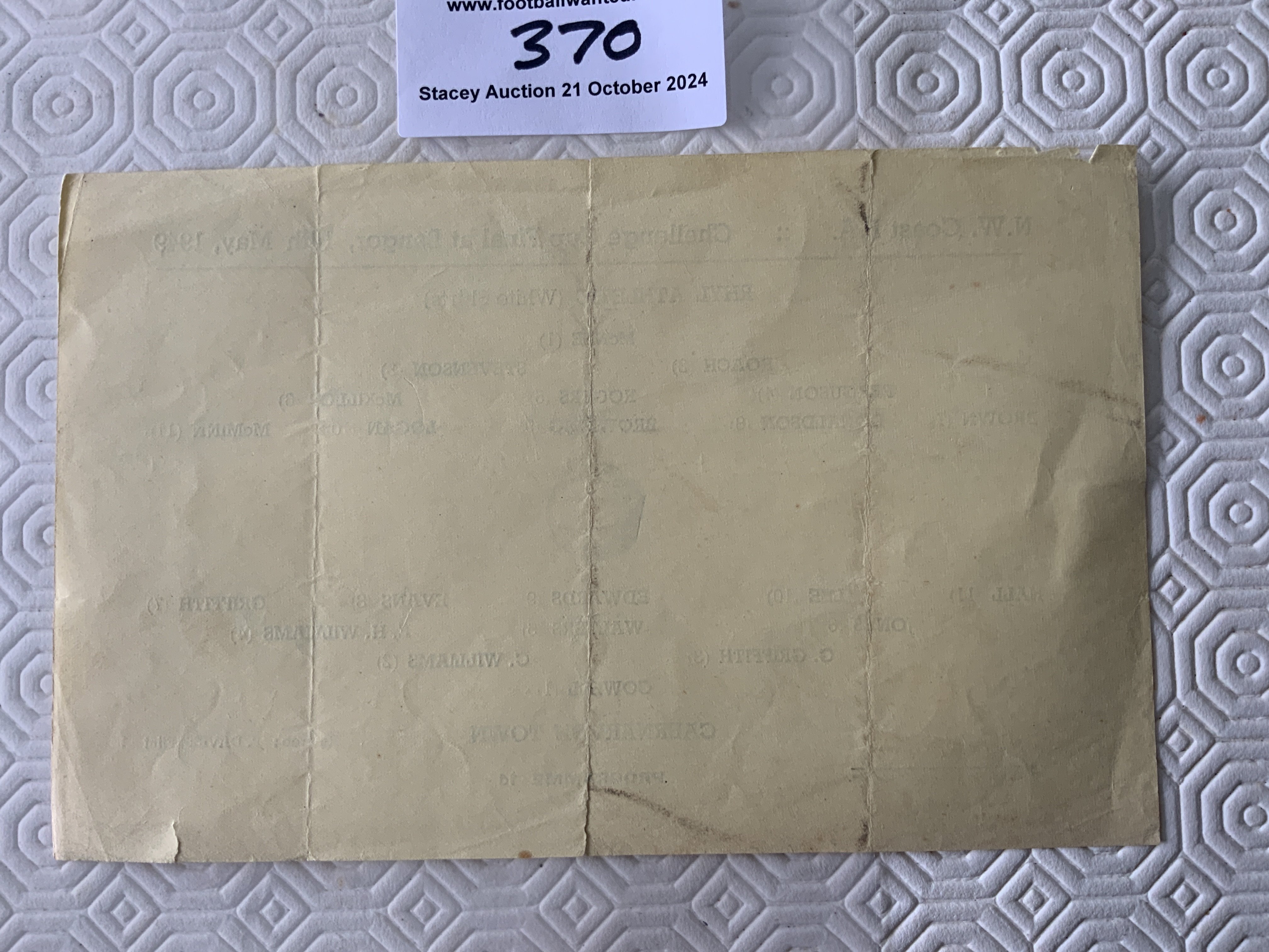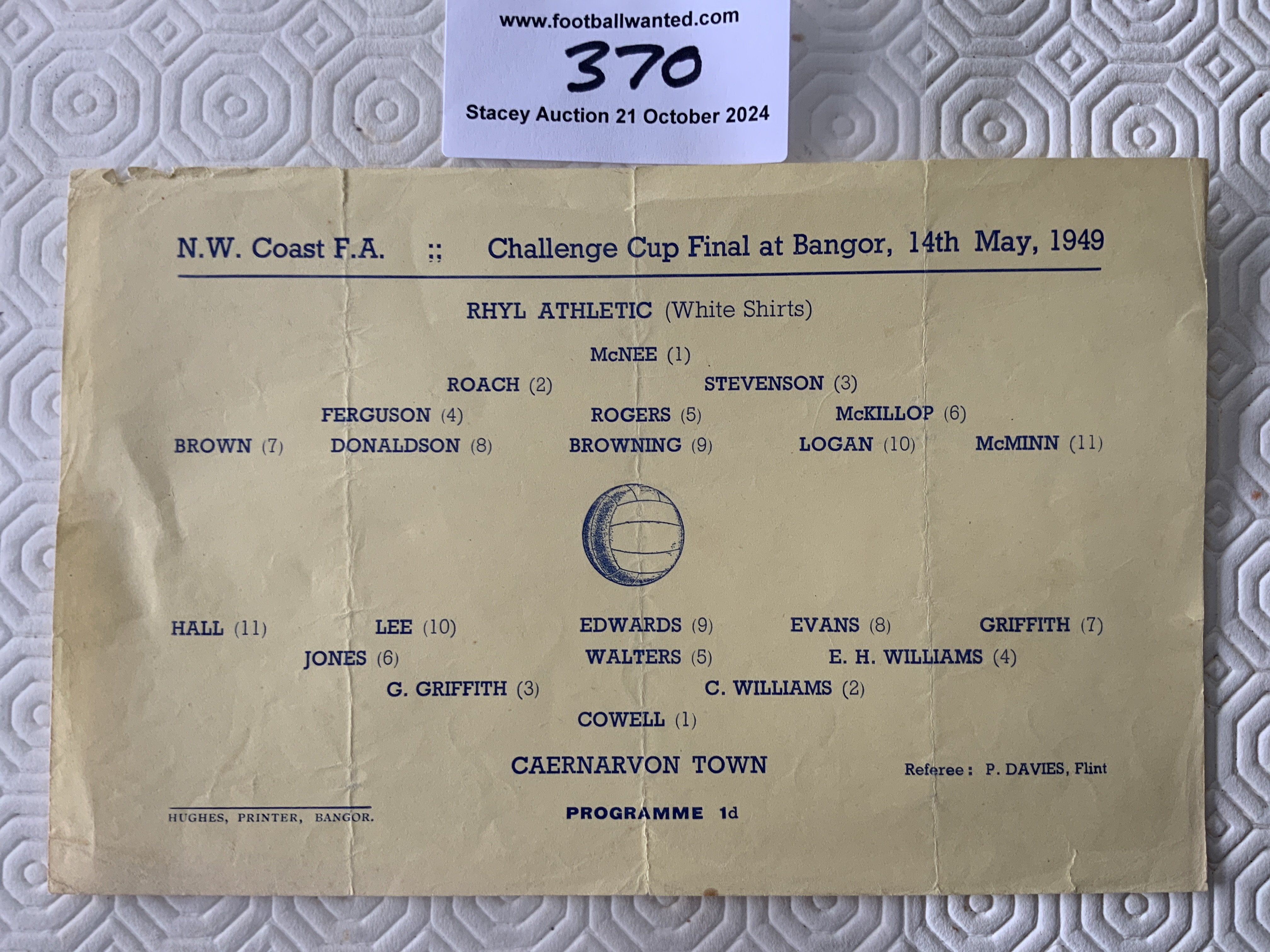48/49 Rhyl v Caernarvon Town Football Programme: Single sheet played at Bangor for the North West Coast final. Fair condition with tiny tears on the 3 folds.
