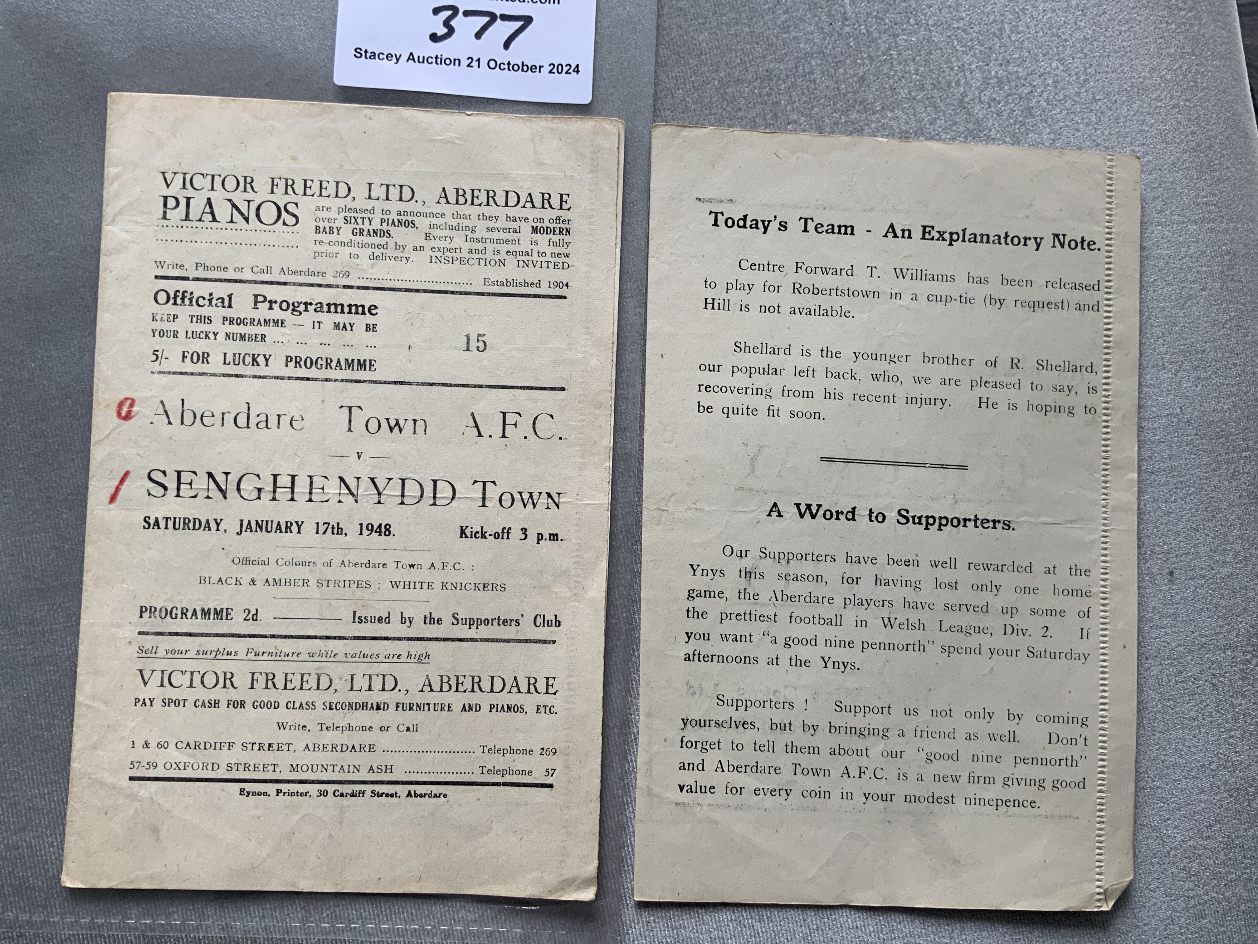 47/48 Aberdare Town v Senghenydd Town Football Programme: 4 pager with single page insert. Good with score to team page and cover.