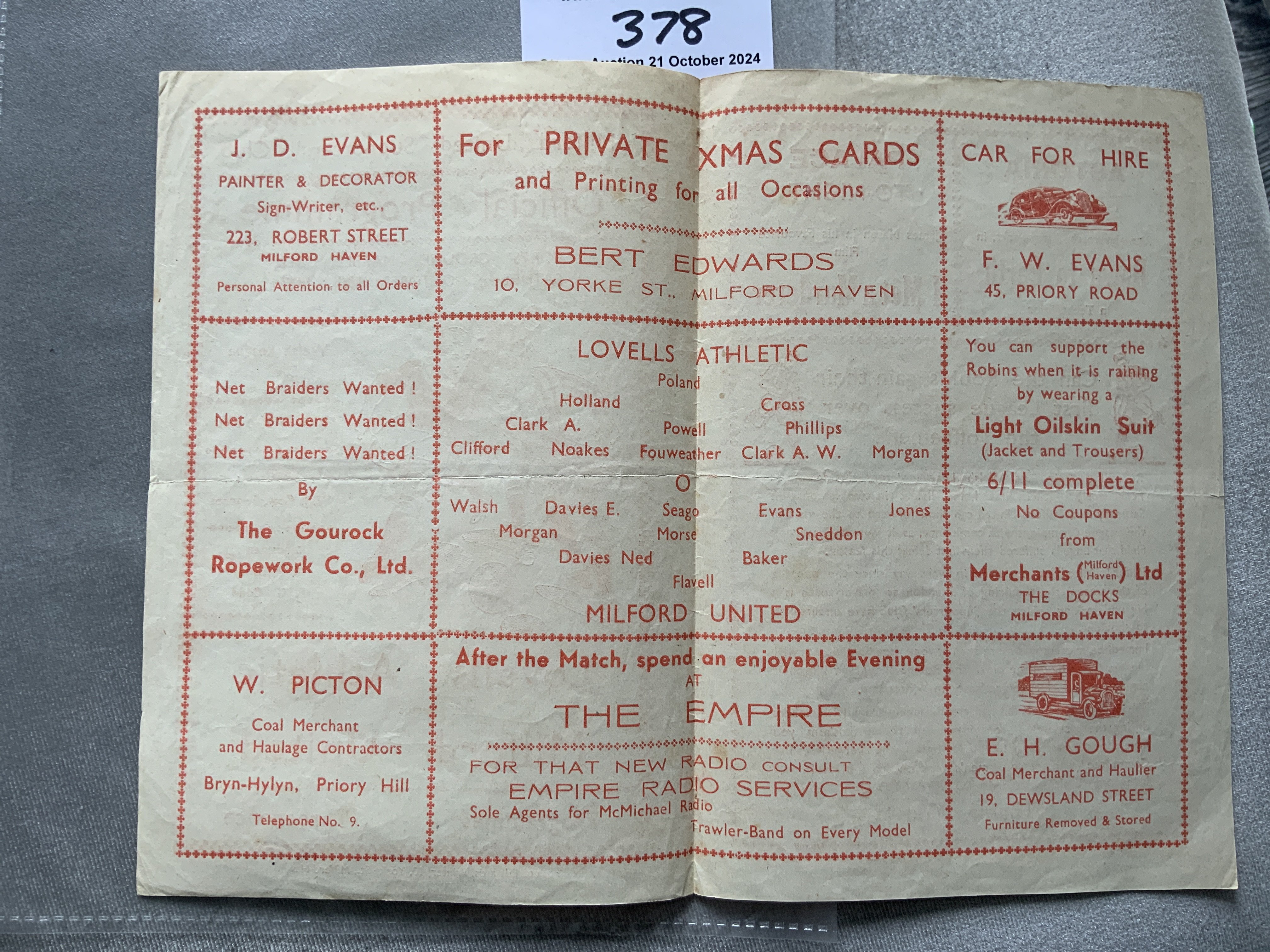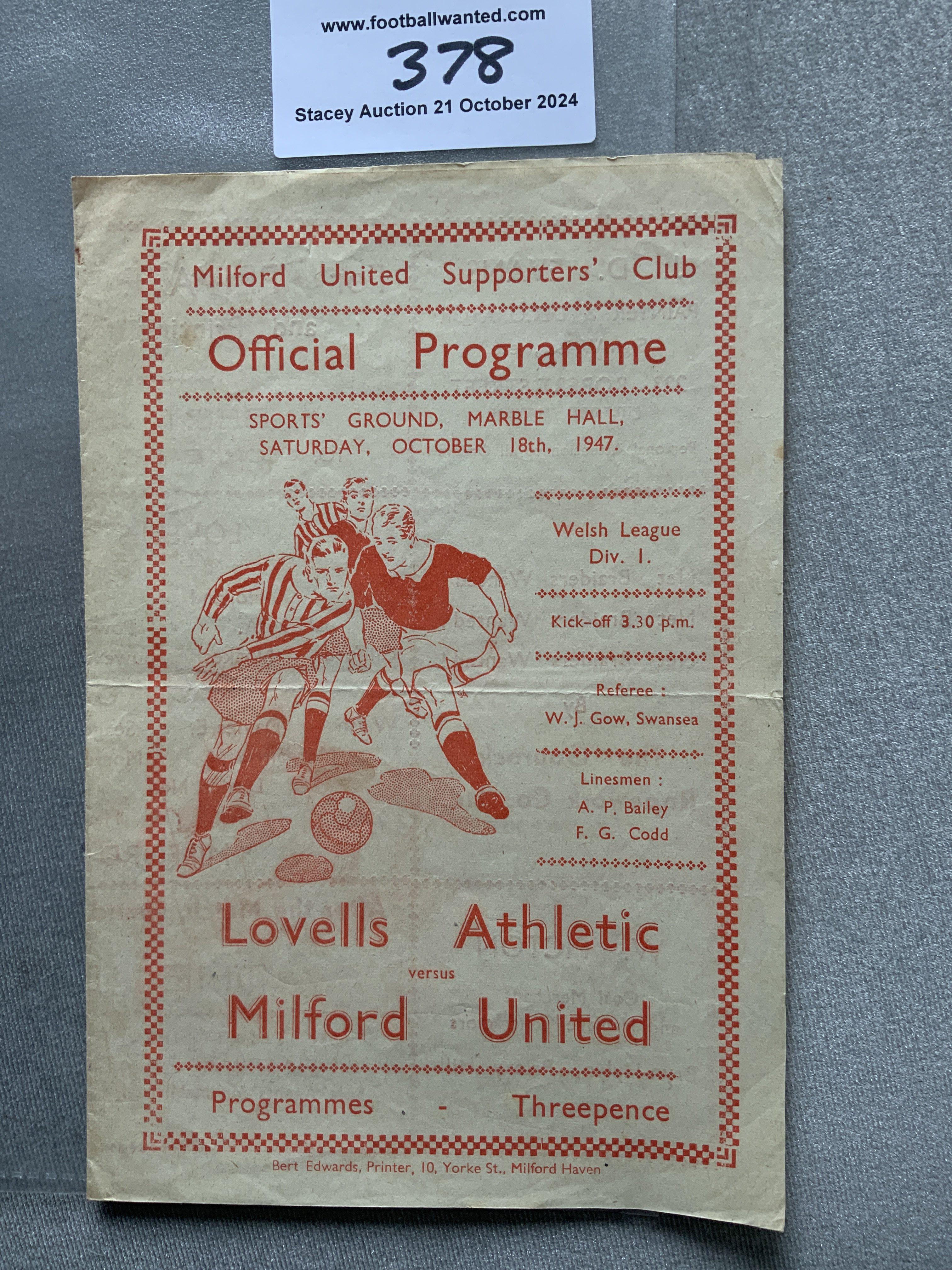 47/48 Milford United v Lovells Football Programme: Good with no team changes. Fold.