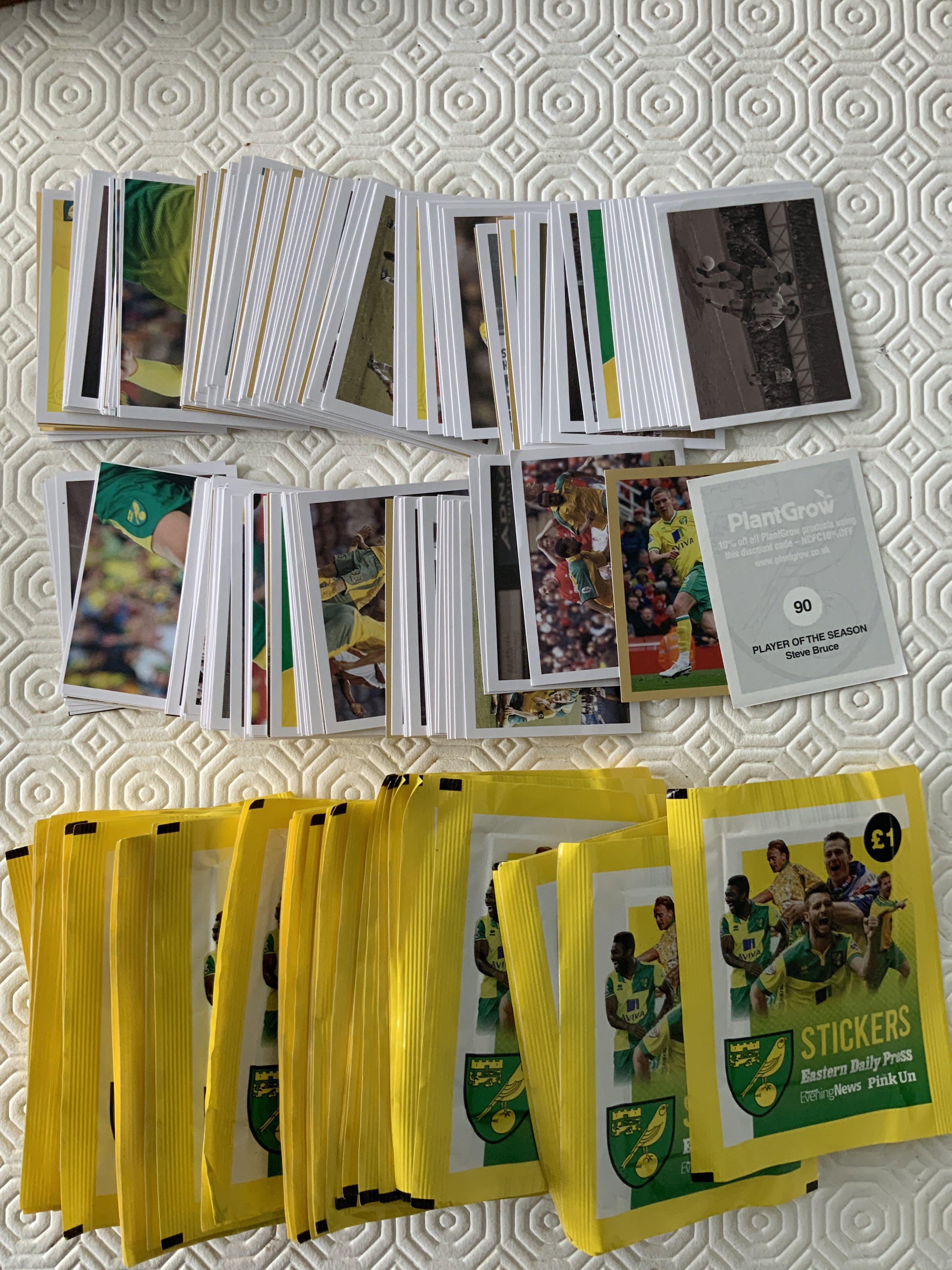 Norwich City Football Cards: 50 unopened packs of 5 cards from a few seasons back. C/W 219 loose cards. Instructions to sell. (469)