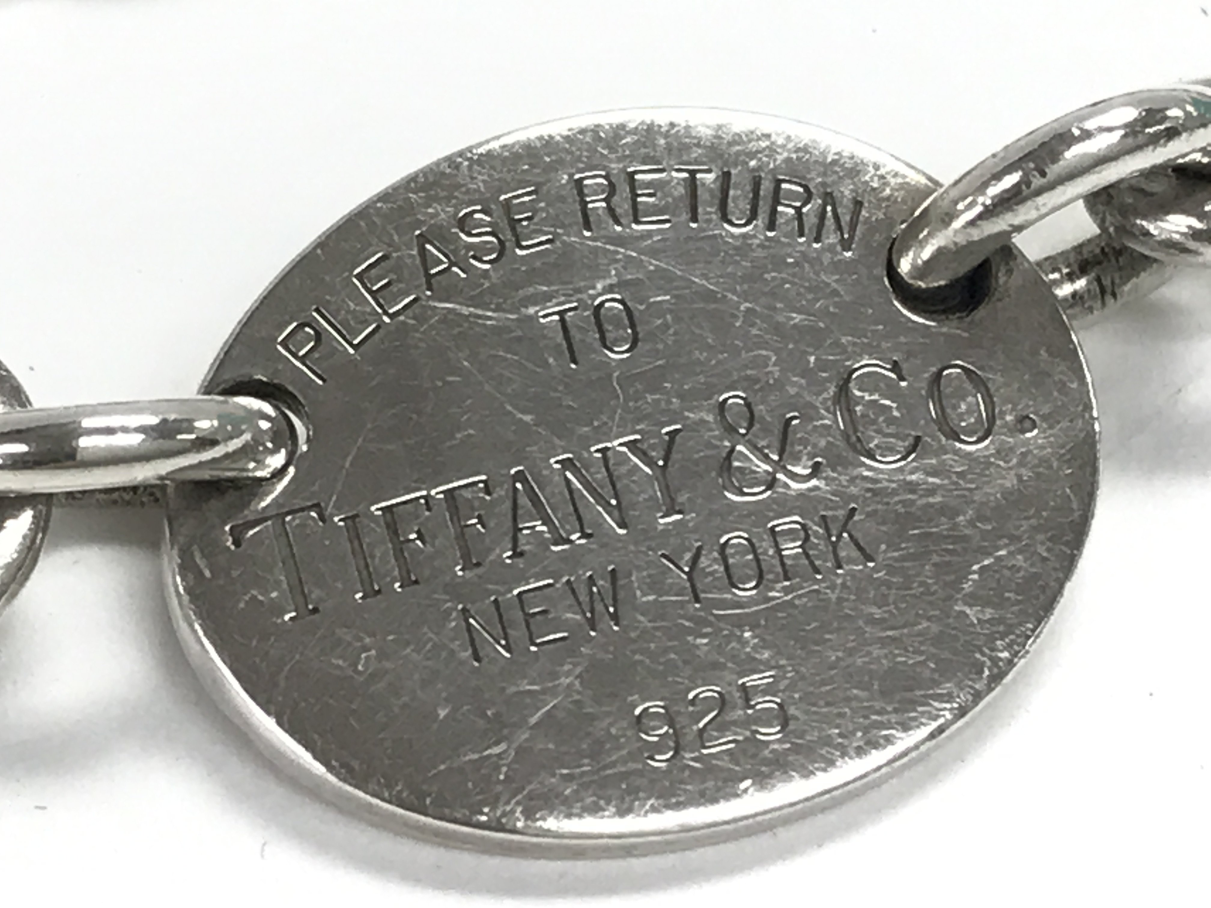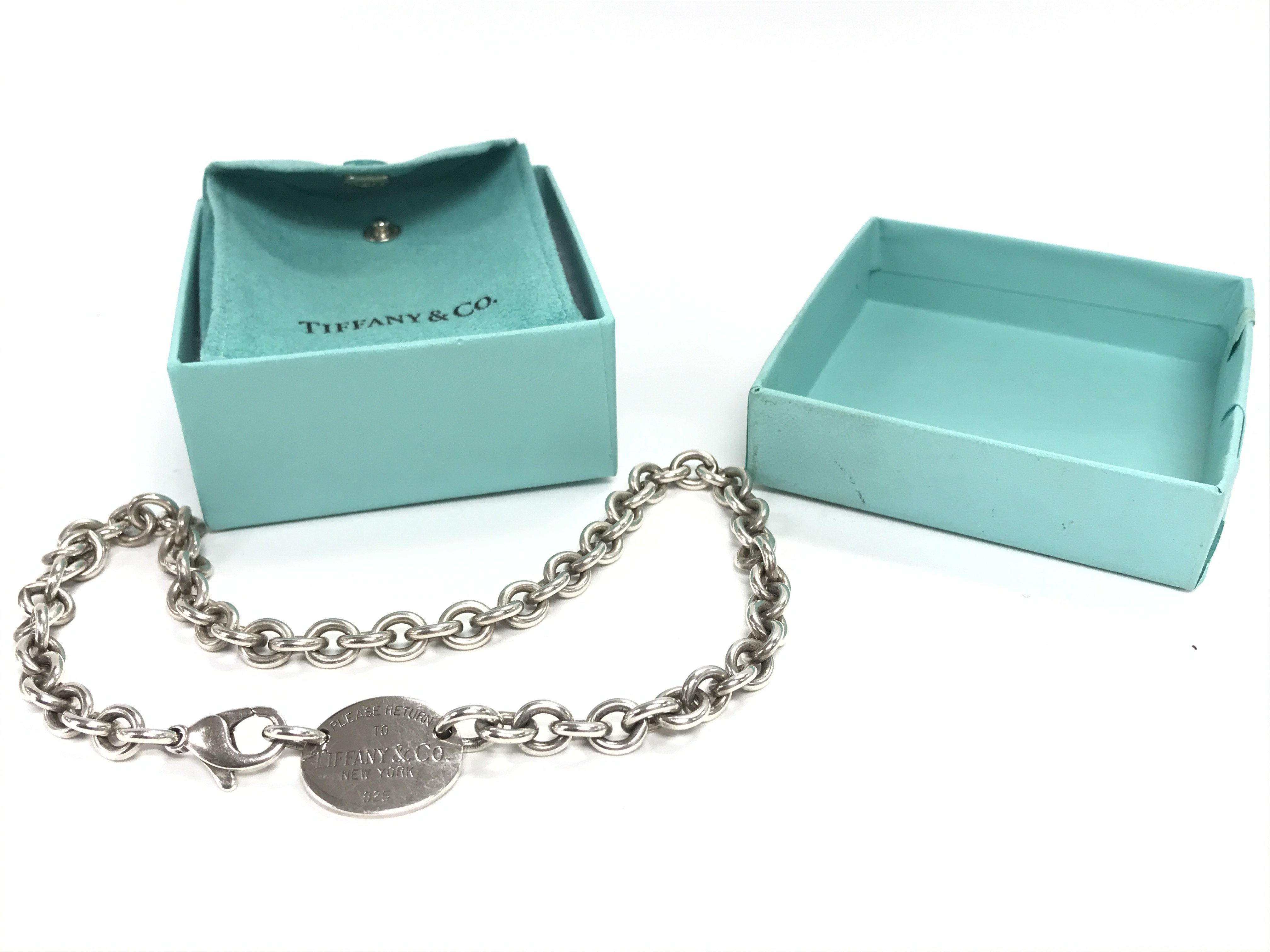 A boxed silver Tiffany and Co necklace. Postage category A