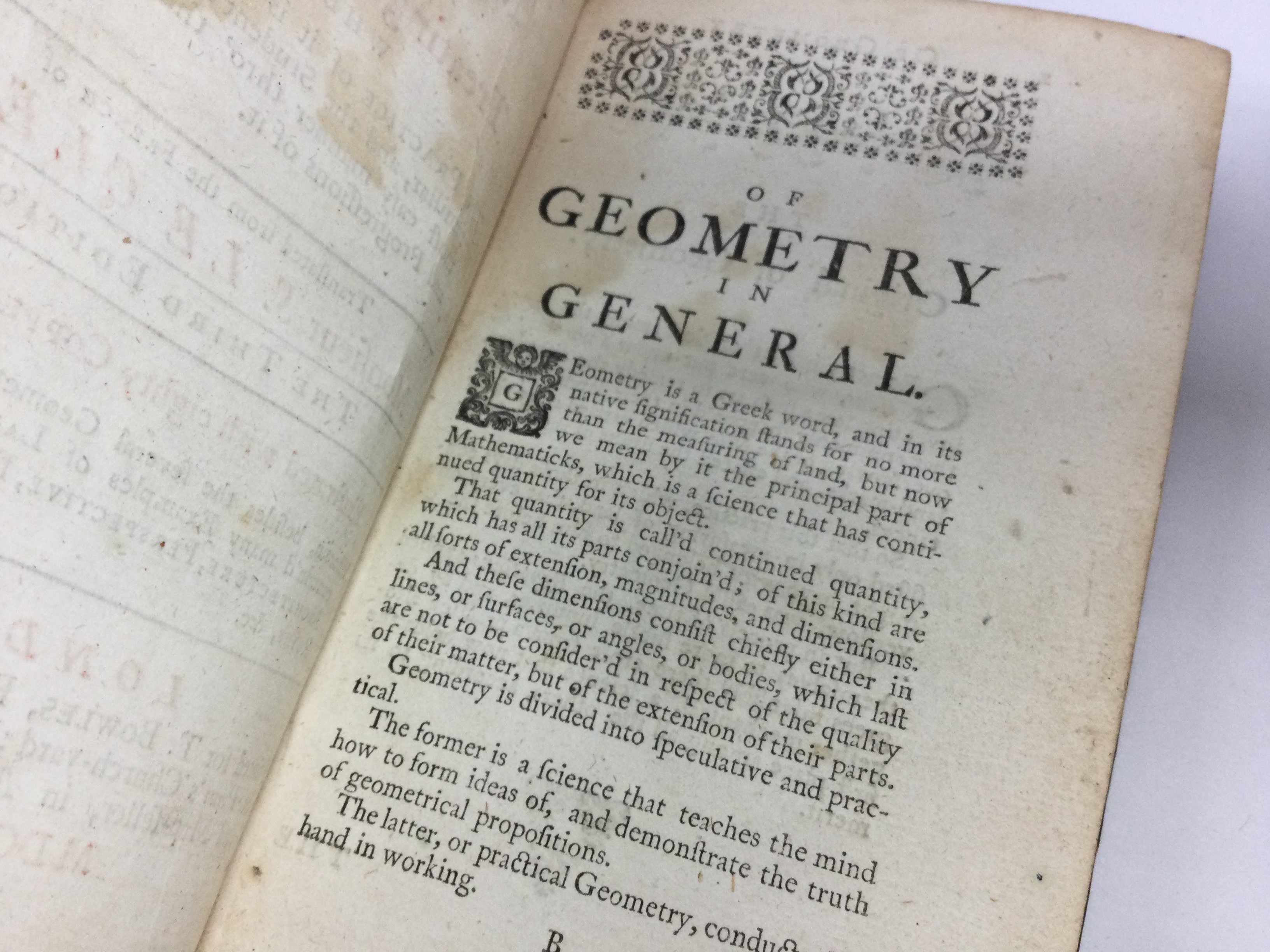 An 18th century book Practical geometry: or, a new and easy method of treating that art. Translated from the French of Monsieur S. Le Clerc. The third edition. Illustrated with eighty-copper plates. Postage category A