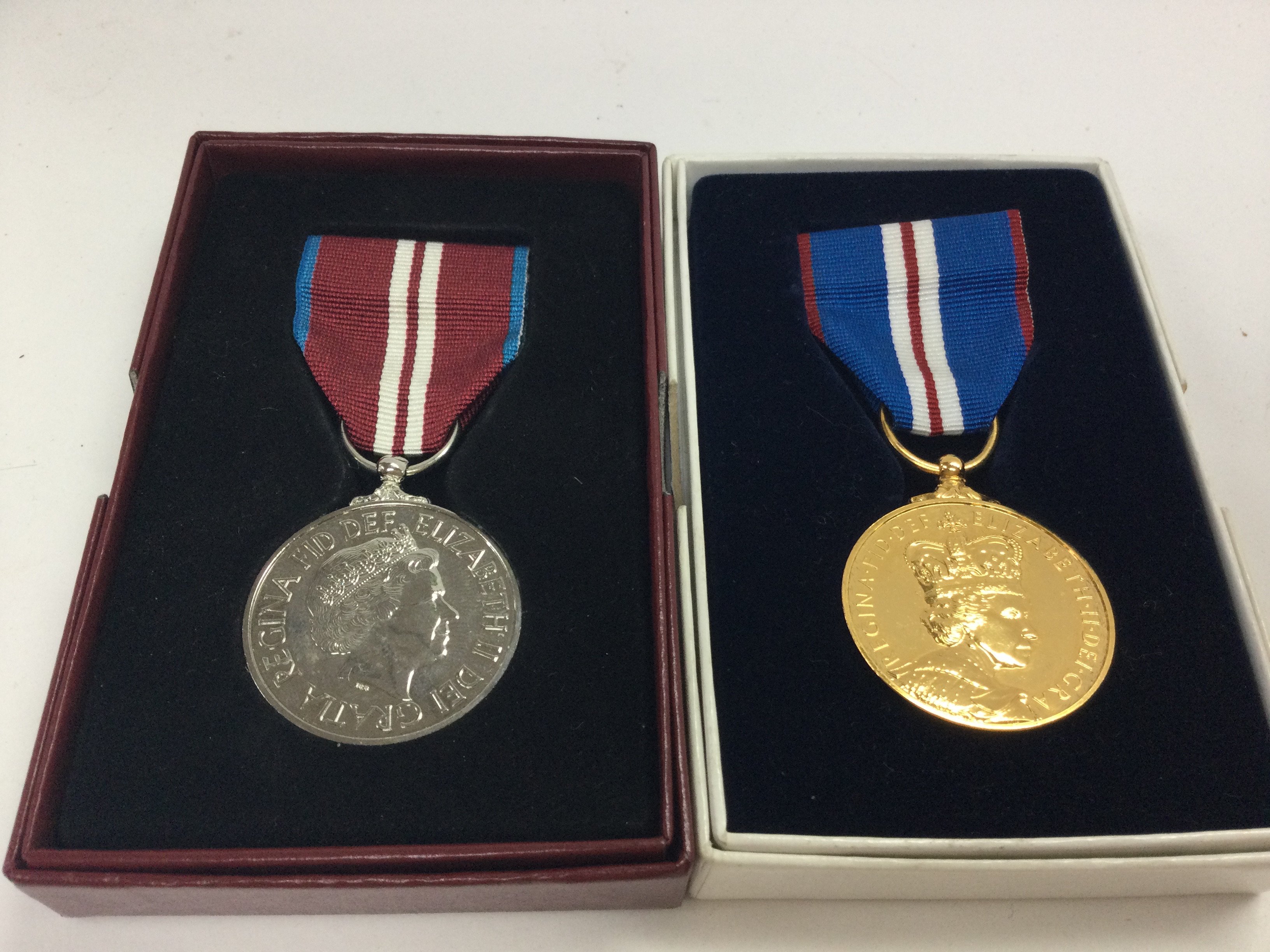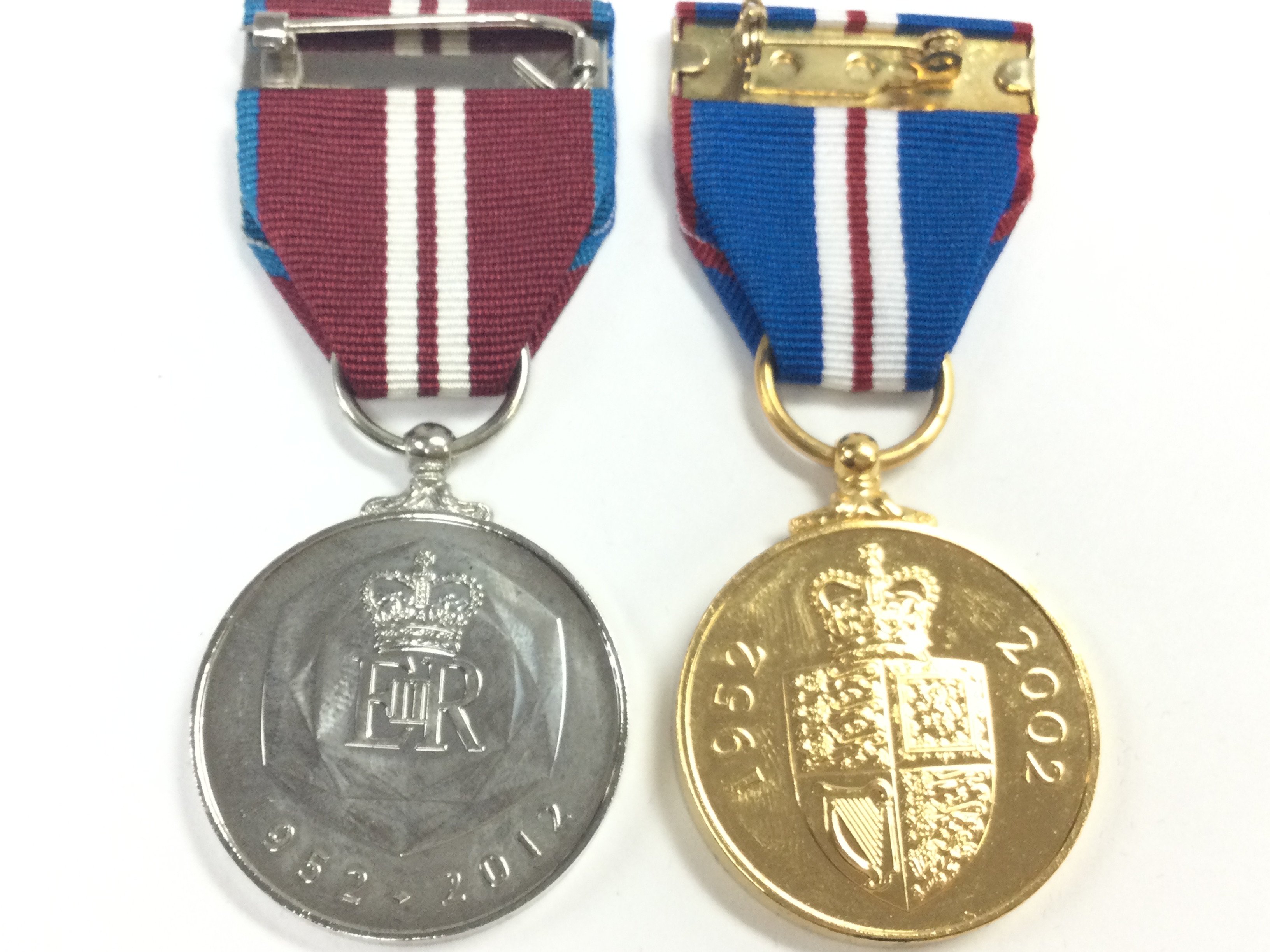 A pair of boxed Elizabeth II jubilee medals. Postage category A