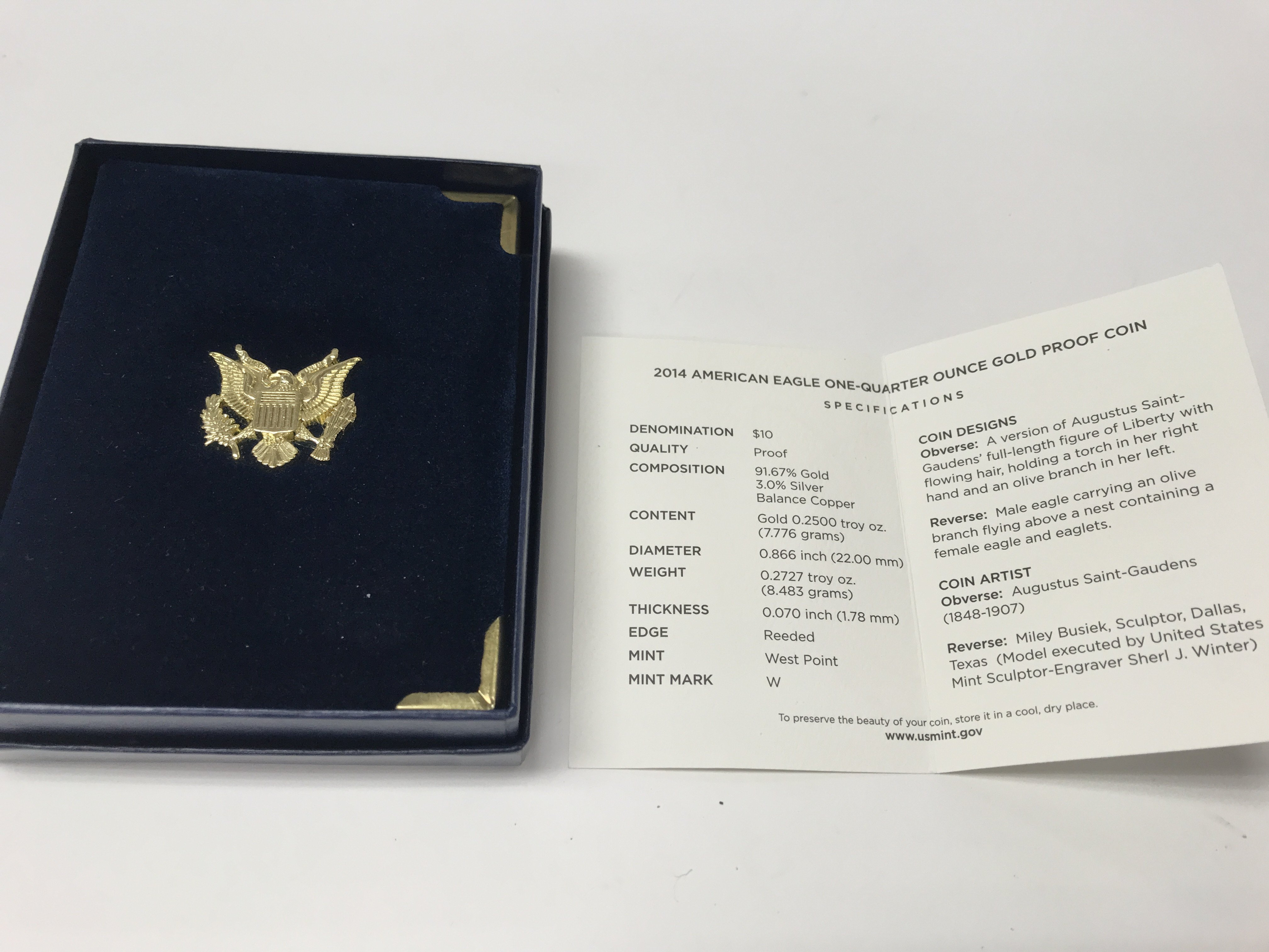 A 1/4oz proof quarter dollar West Point mint with COA