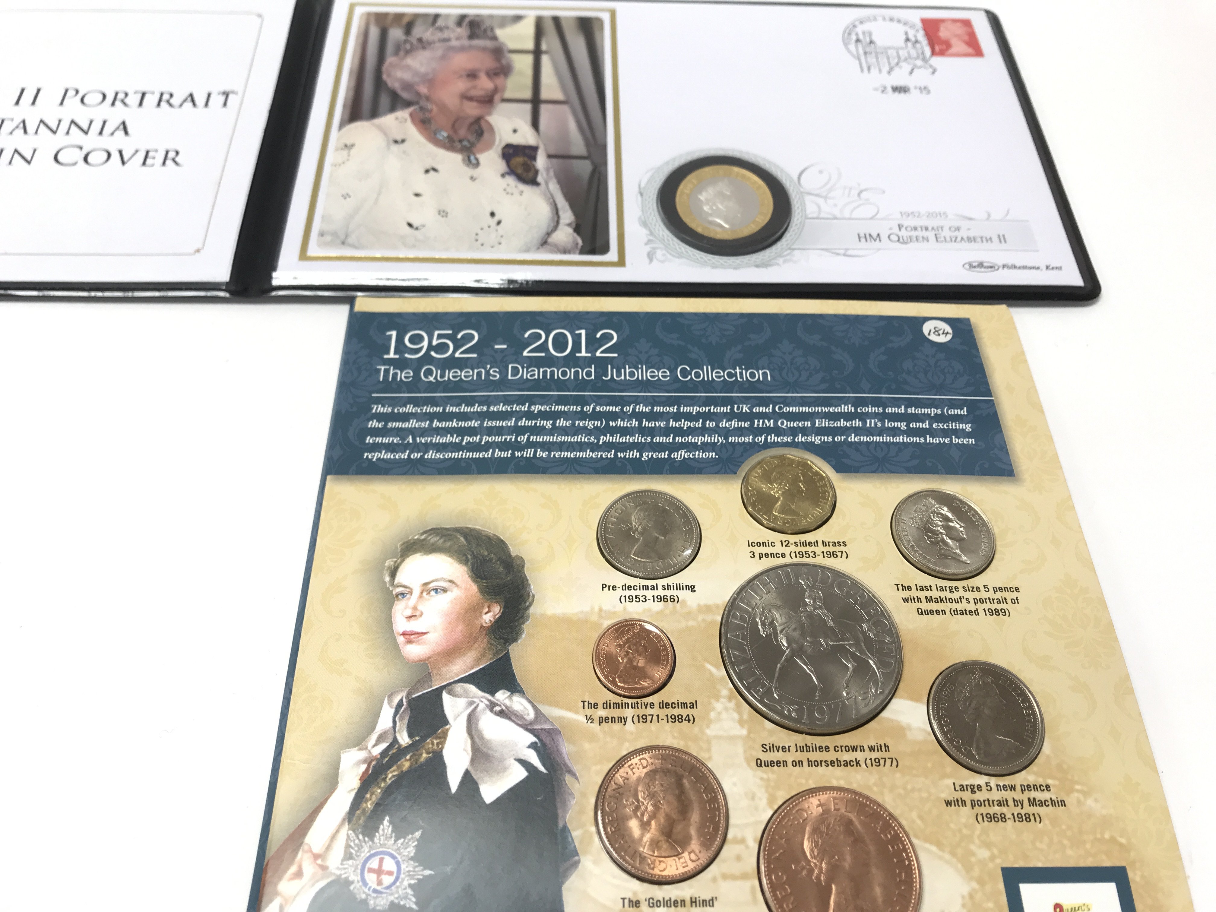 Jubilee mint £2 silver proof coin and first day cover along with a diamond jubilee coin set. Postage B