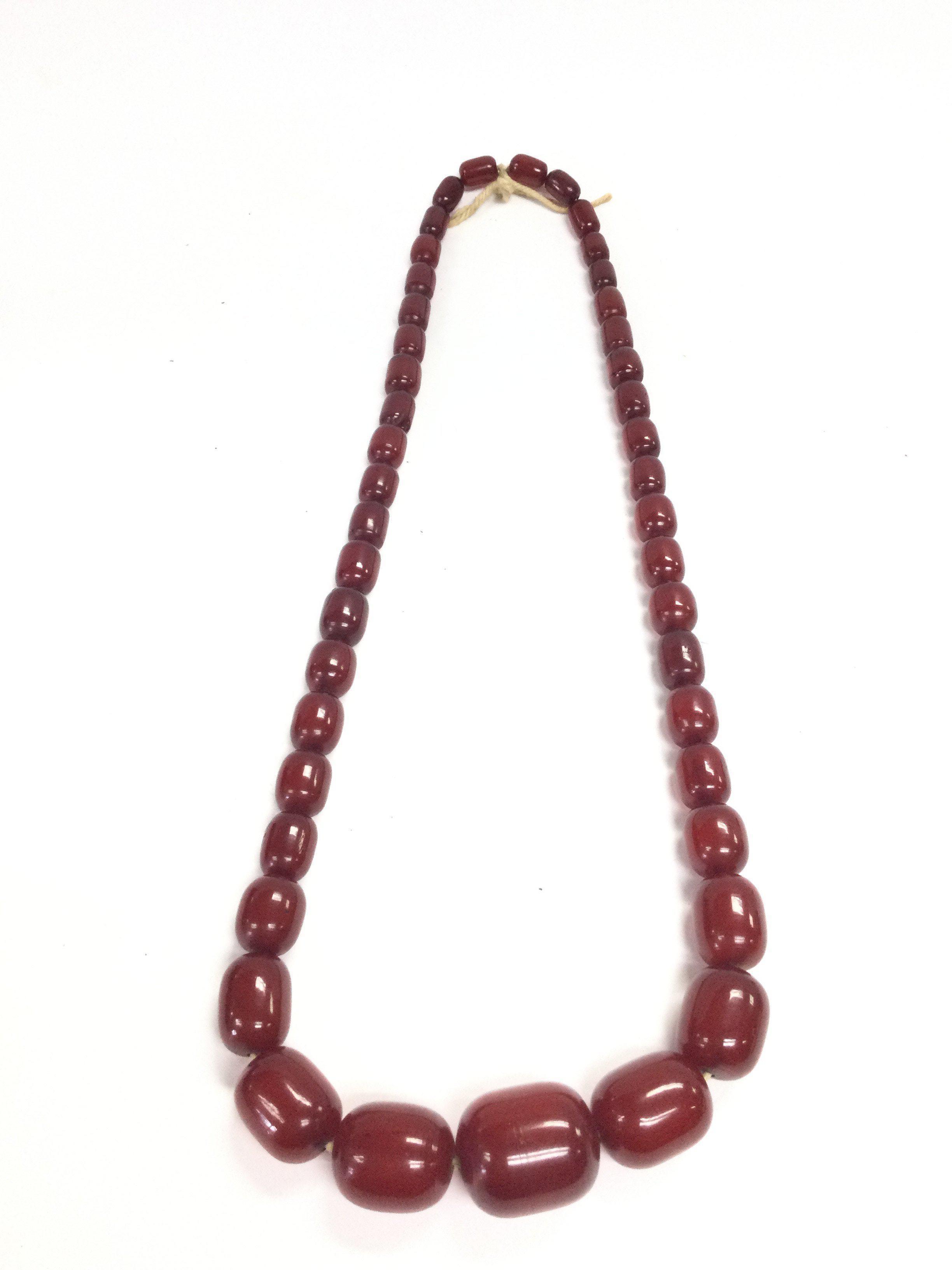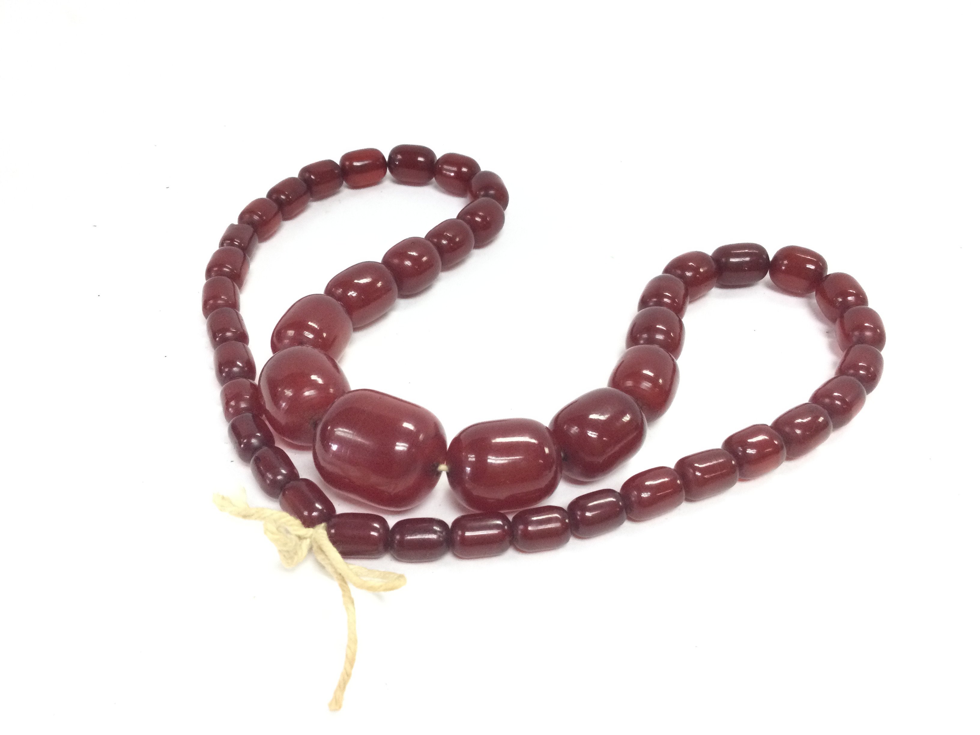 A red amber/ bakerlite bead necklace , 32cm long. Postage category A