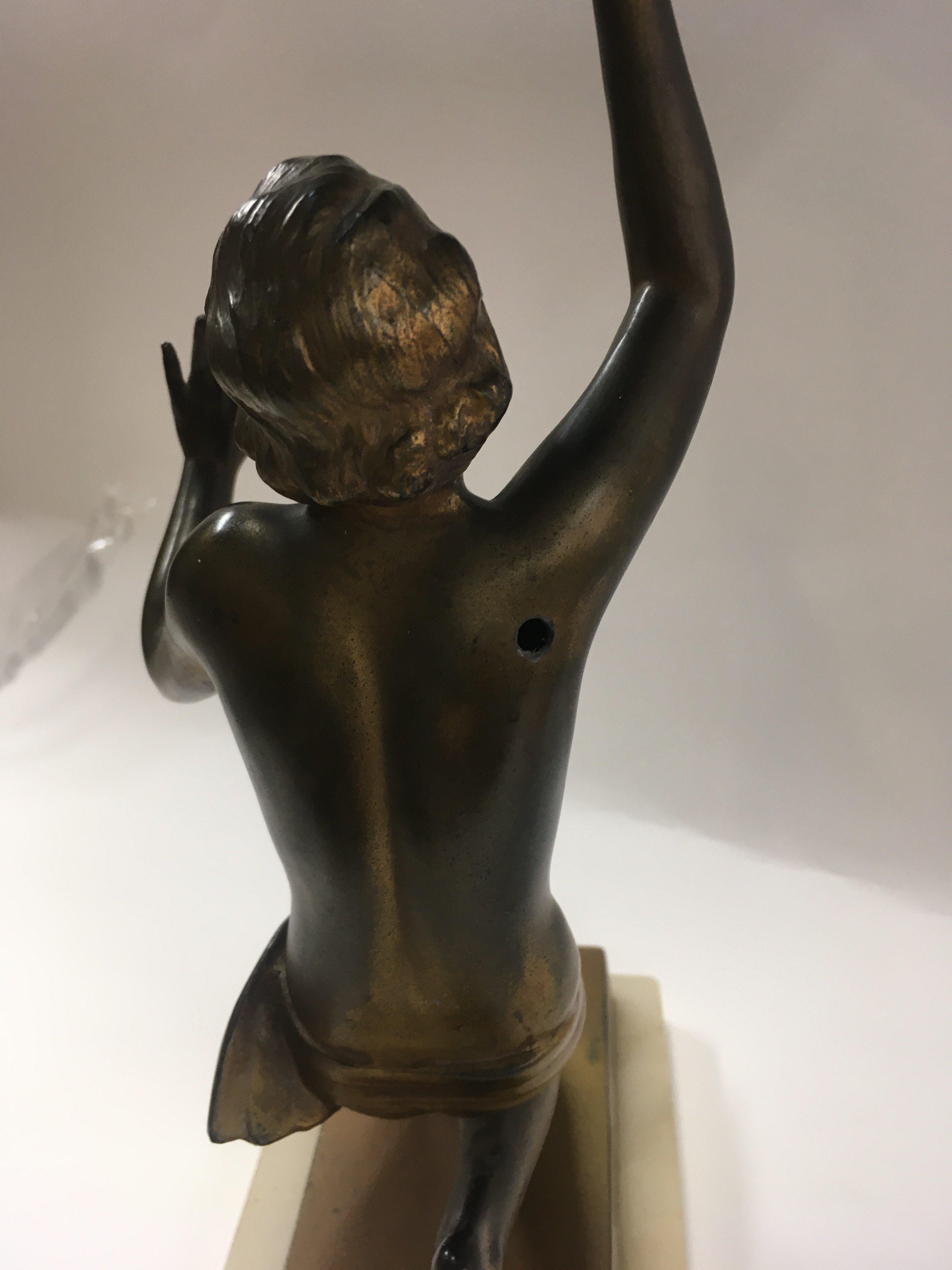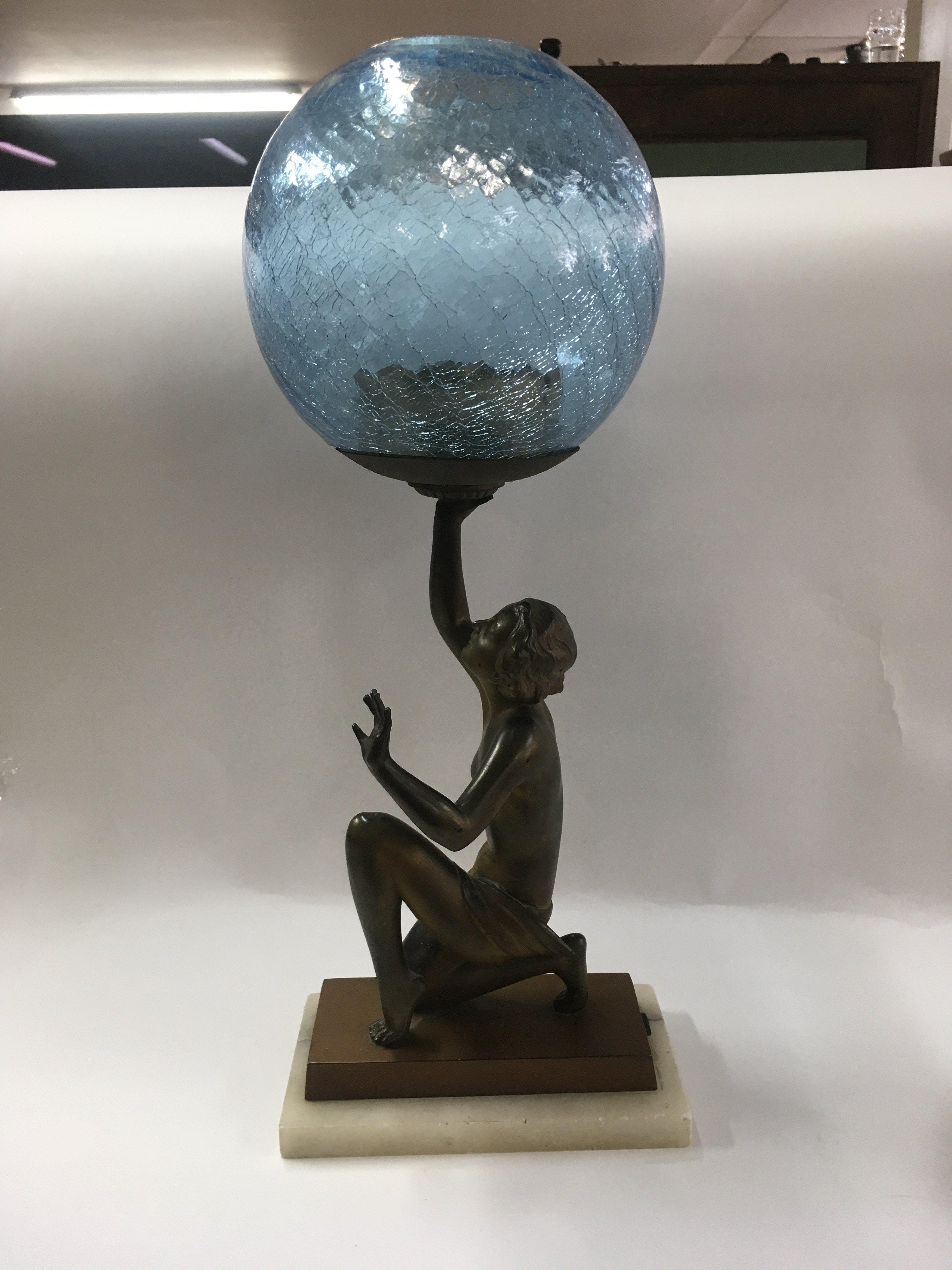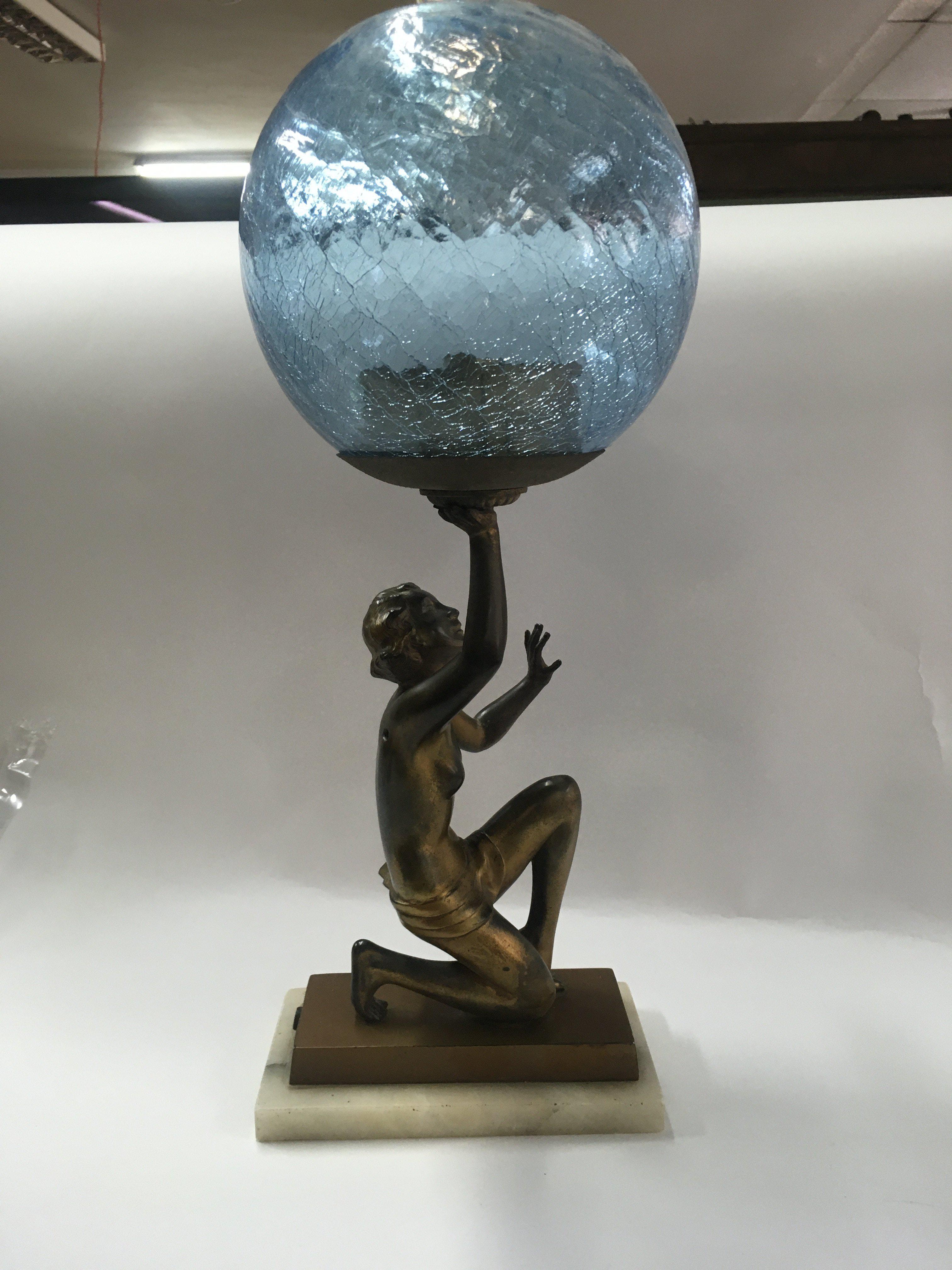 An Art Deco light in the form of lady with a glass shade.