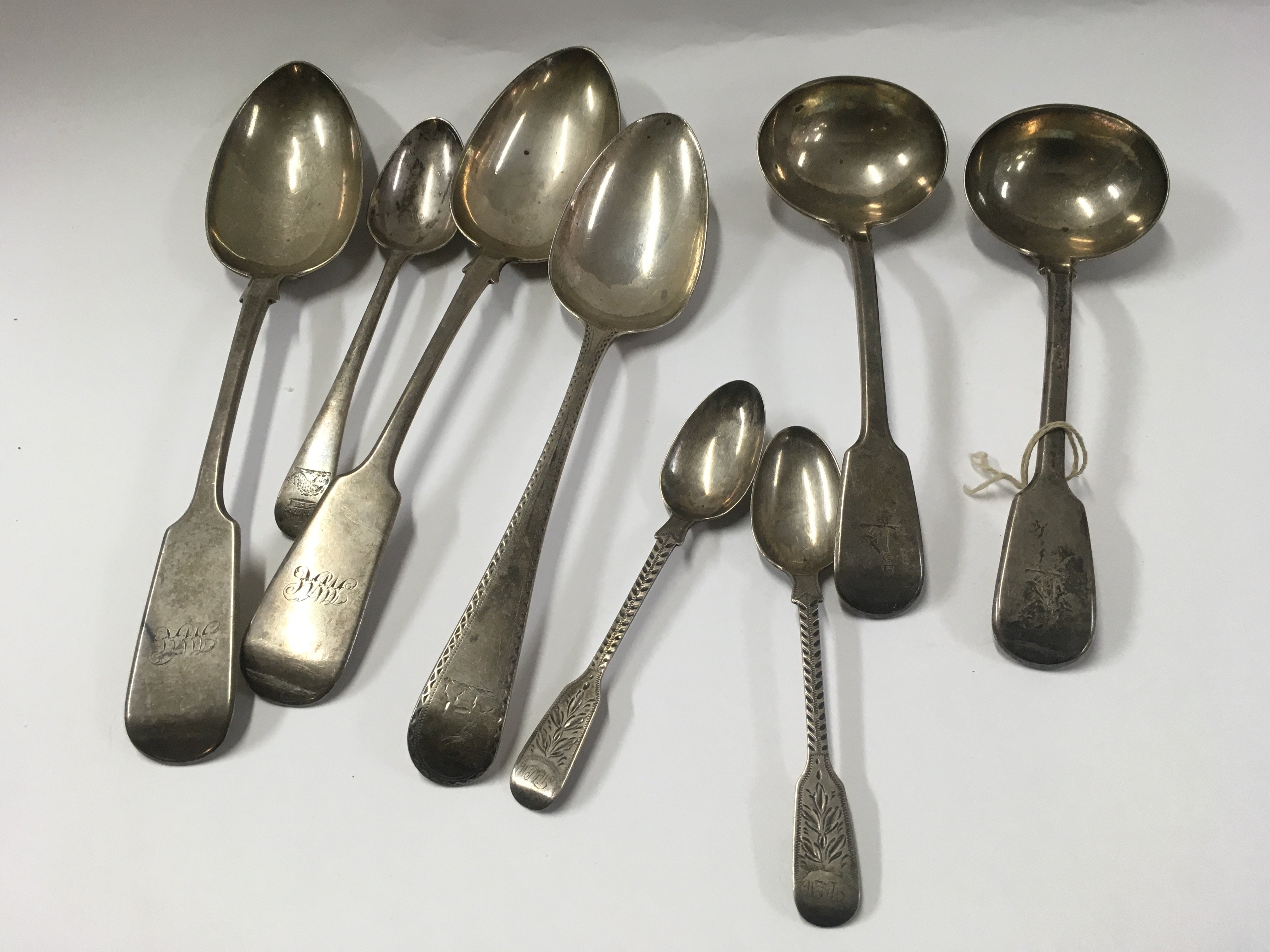 A collection of George III and later silver cutlery.