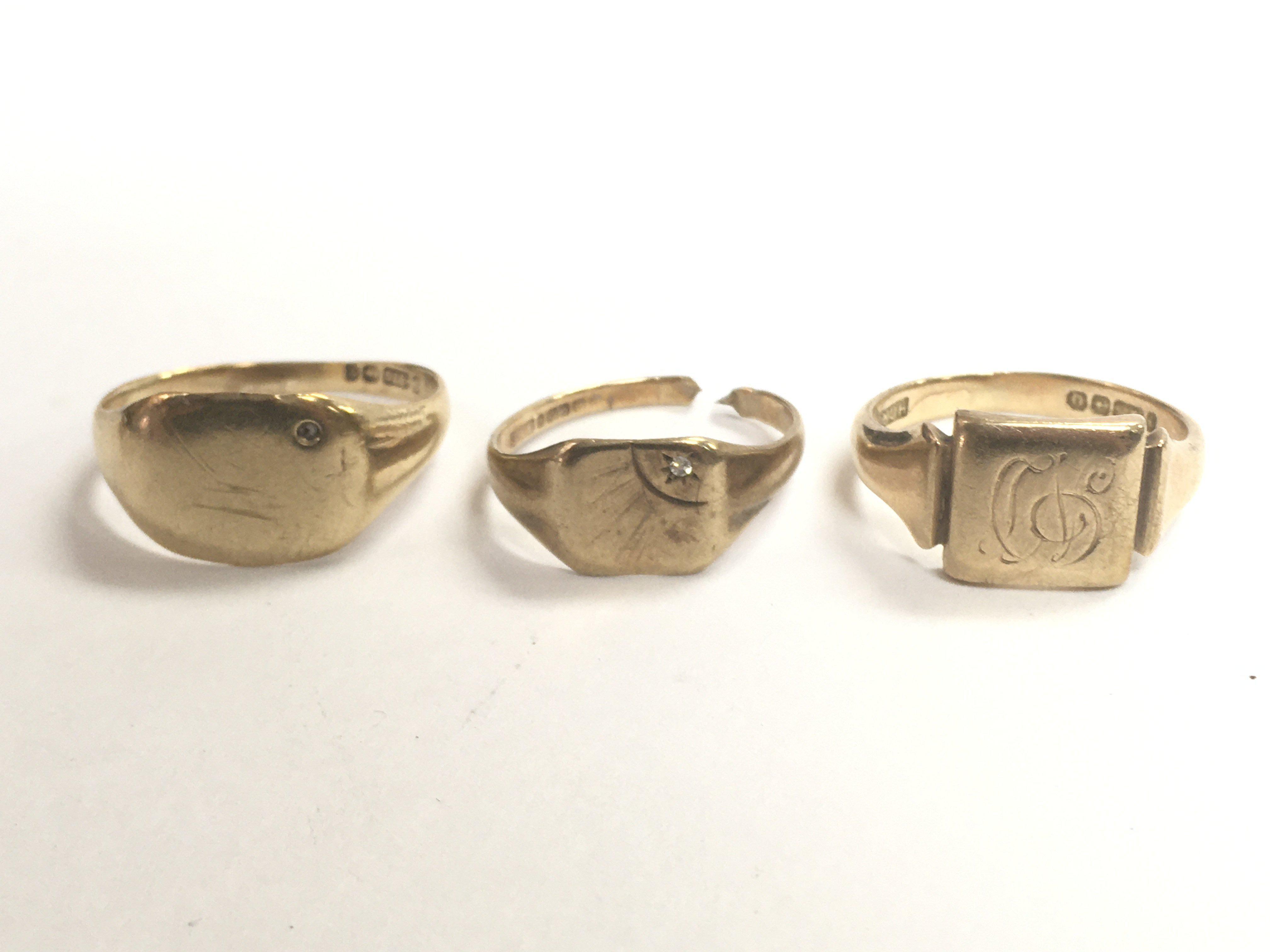 9ct signet rings, total weight 9.9g. Sizes R,N/O, Q. postage category A