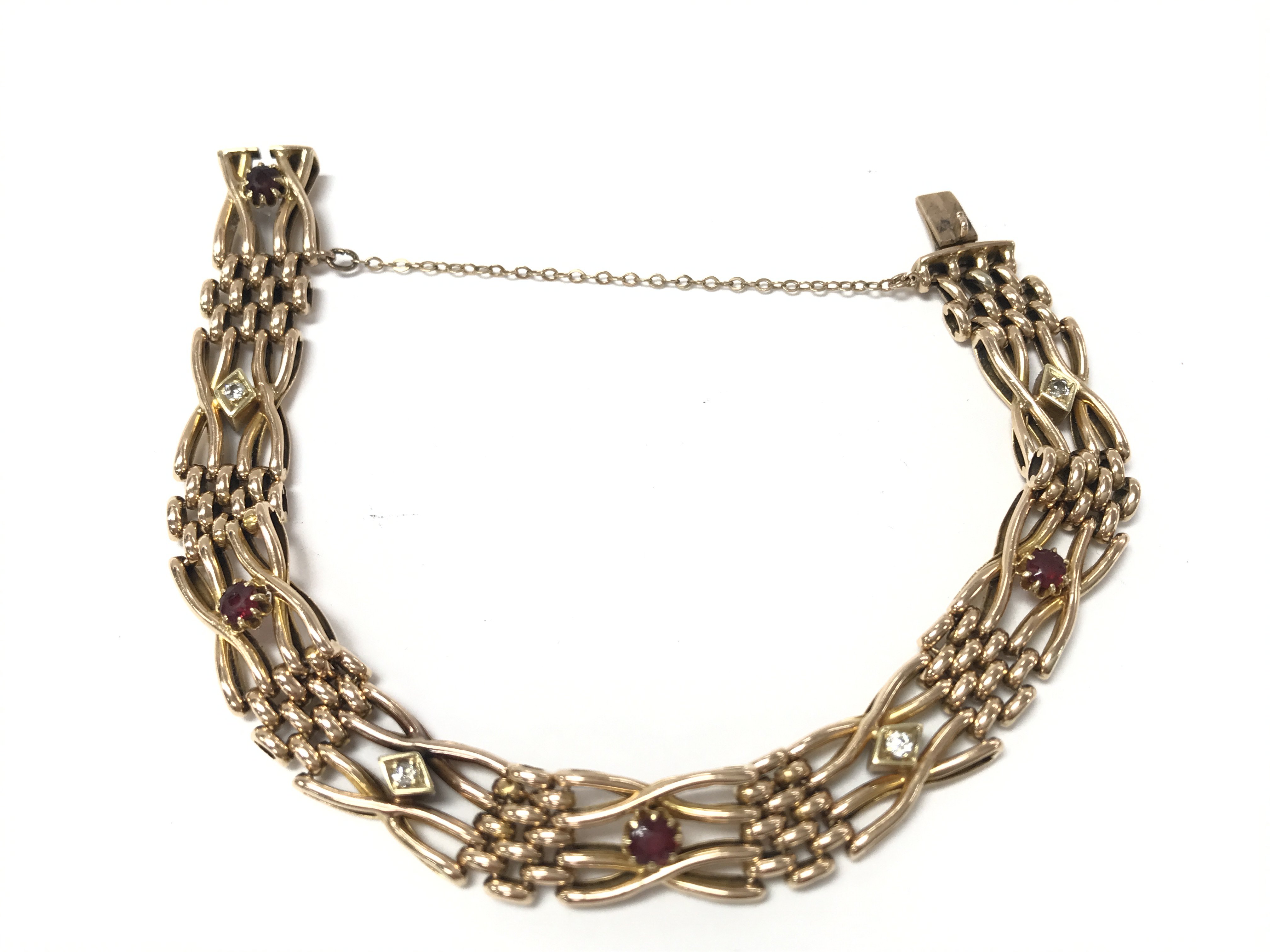A 15ct gold bracelet set with diamonds and Ruby's. 17.96g