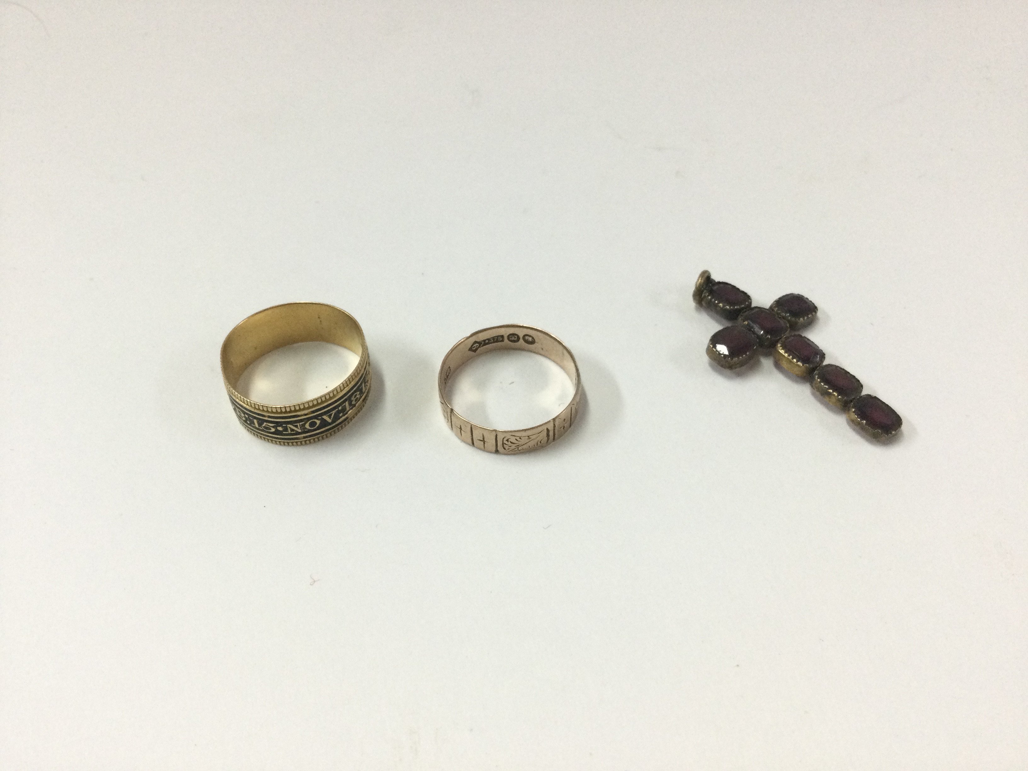 An 18ct and 9ct gold ring with and amethyst set cross. Approx 6.7 grams.