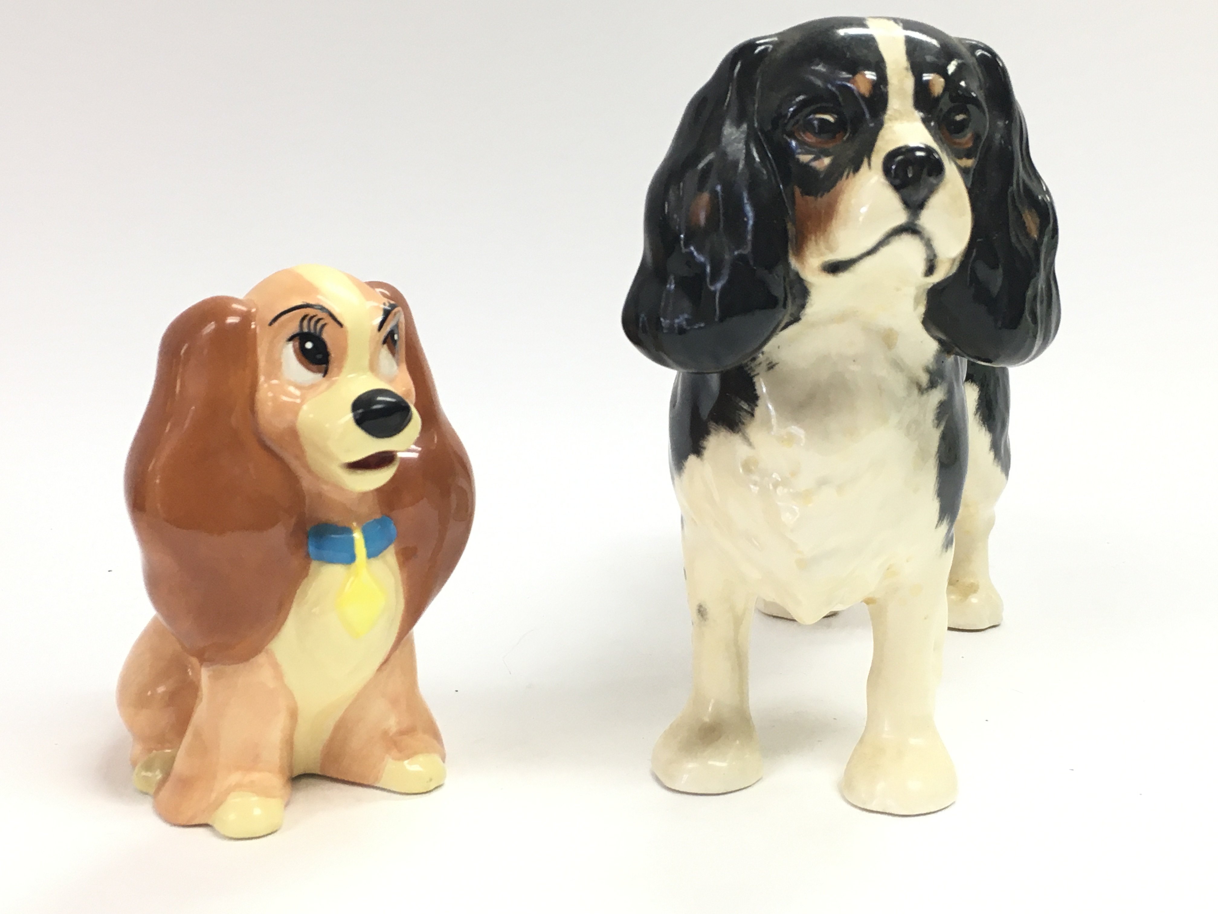 Porcelain figures, a beswick dog and a Disney china lady figure. 13 & 9cm tall. No obvious damage or restoration. This lot cannot be posted