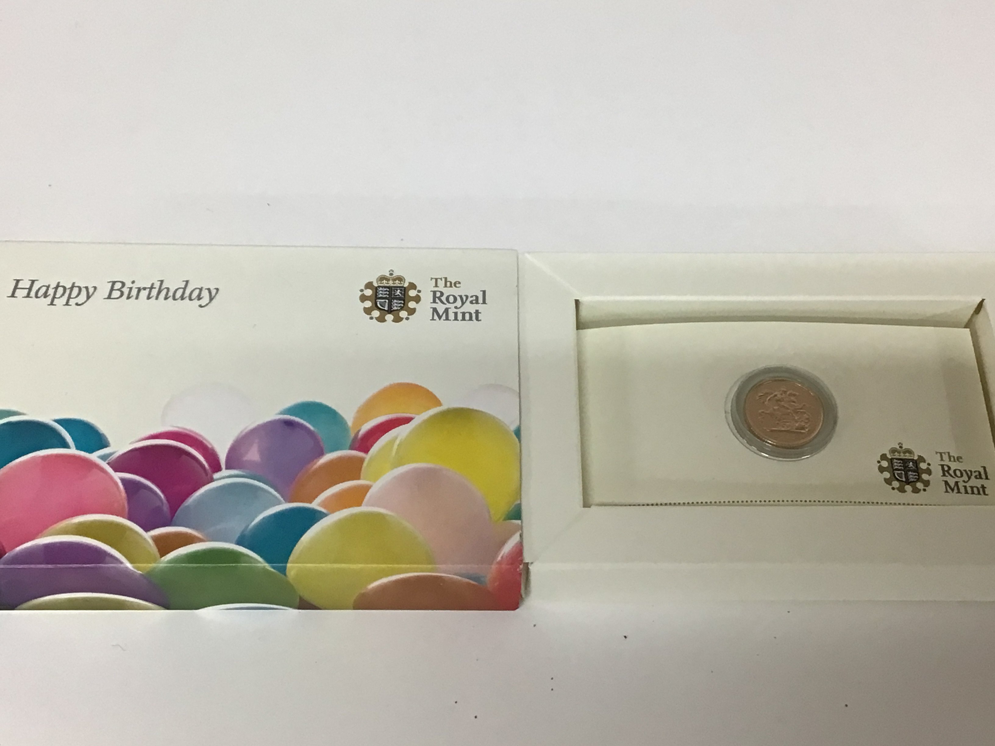 A 2010 gold half sovereign from the Royal Mint in Happy Birthday presentation box.